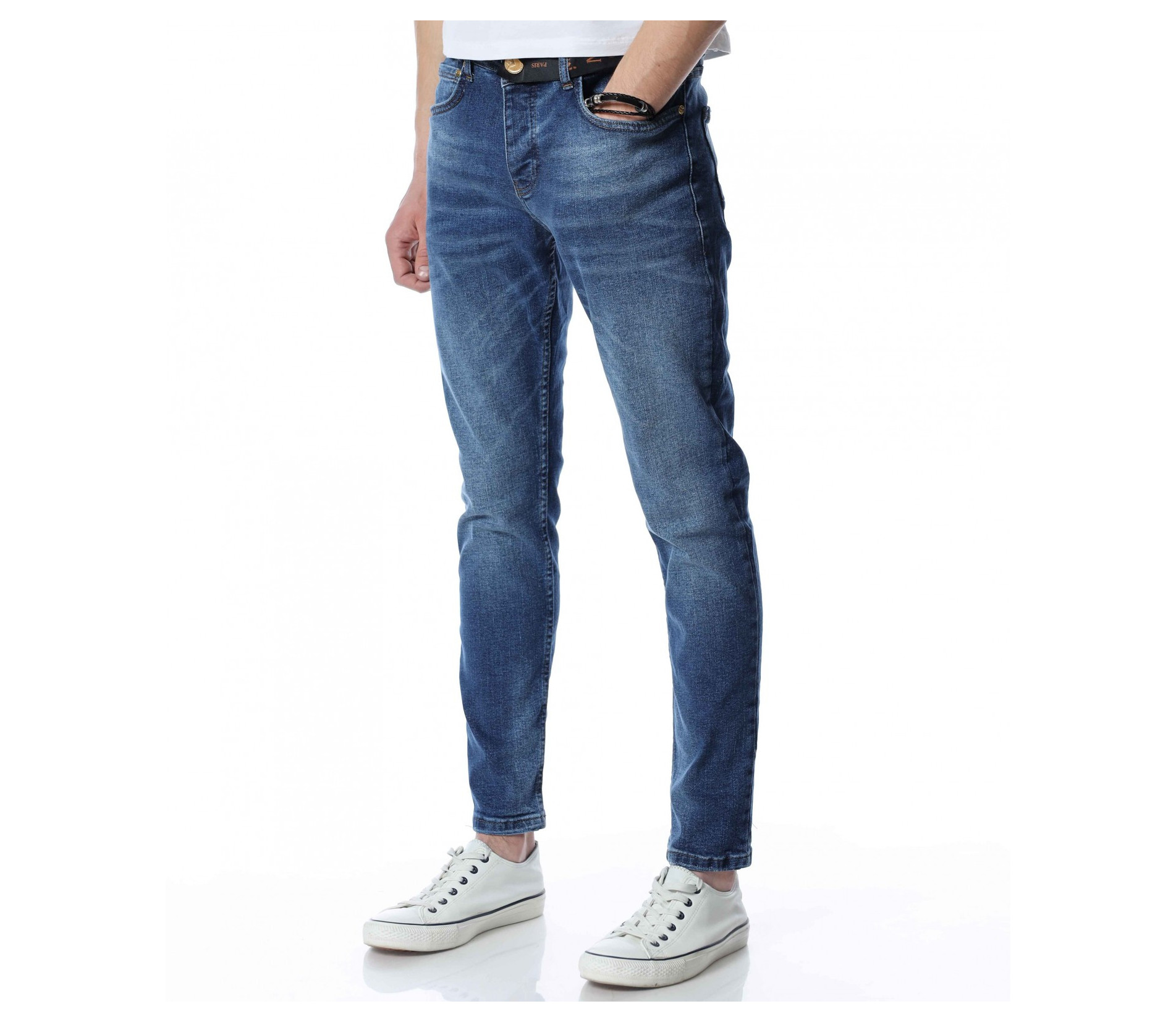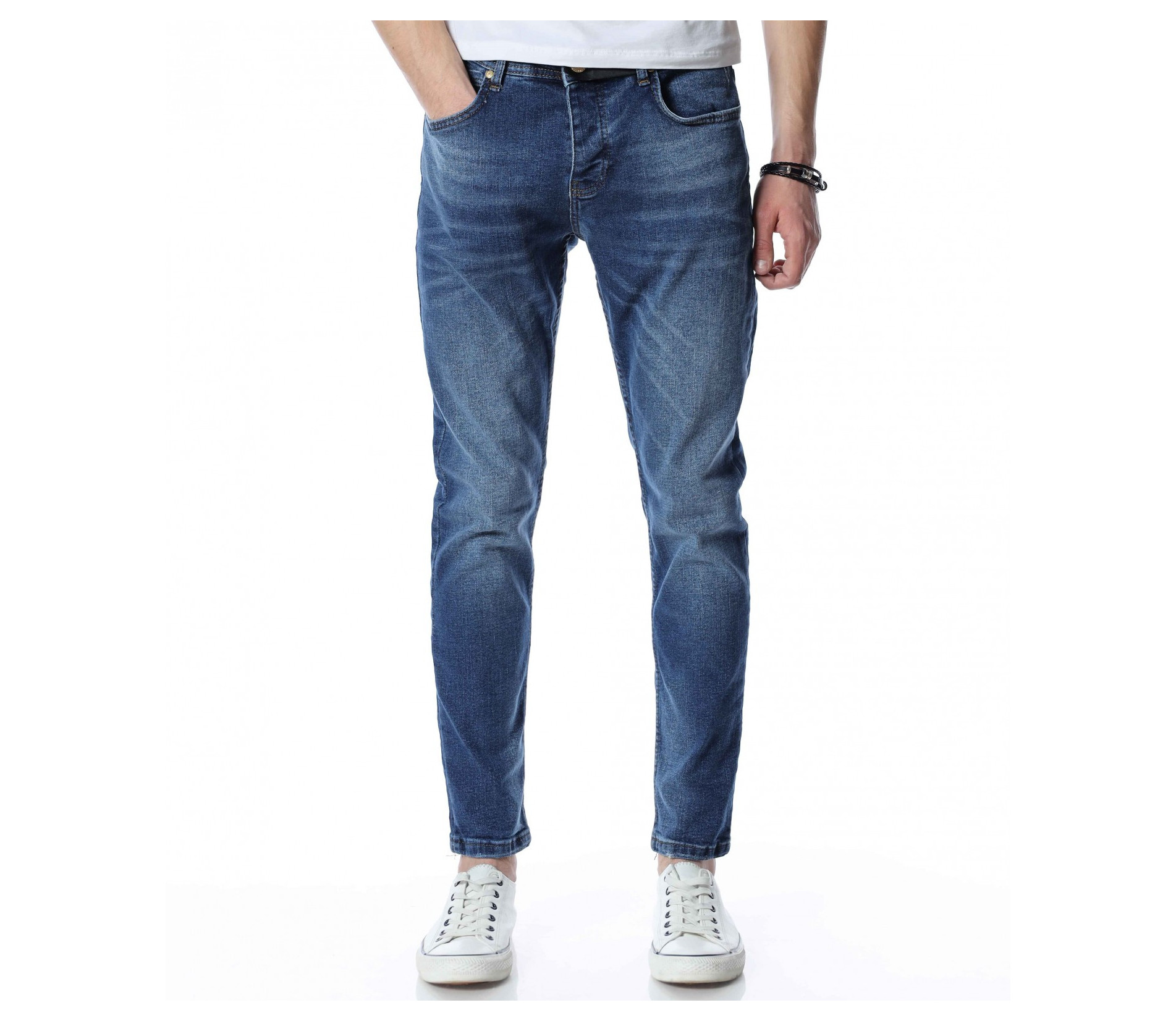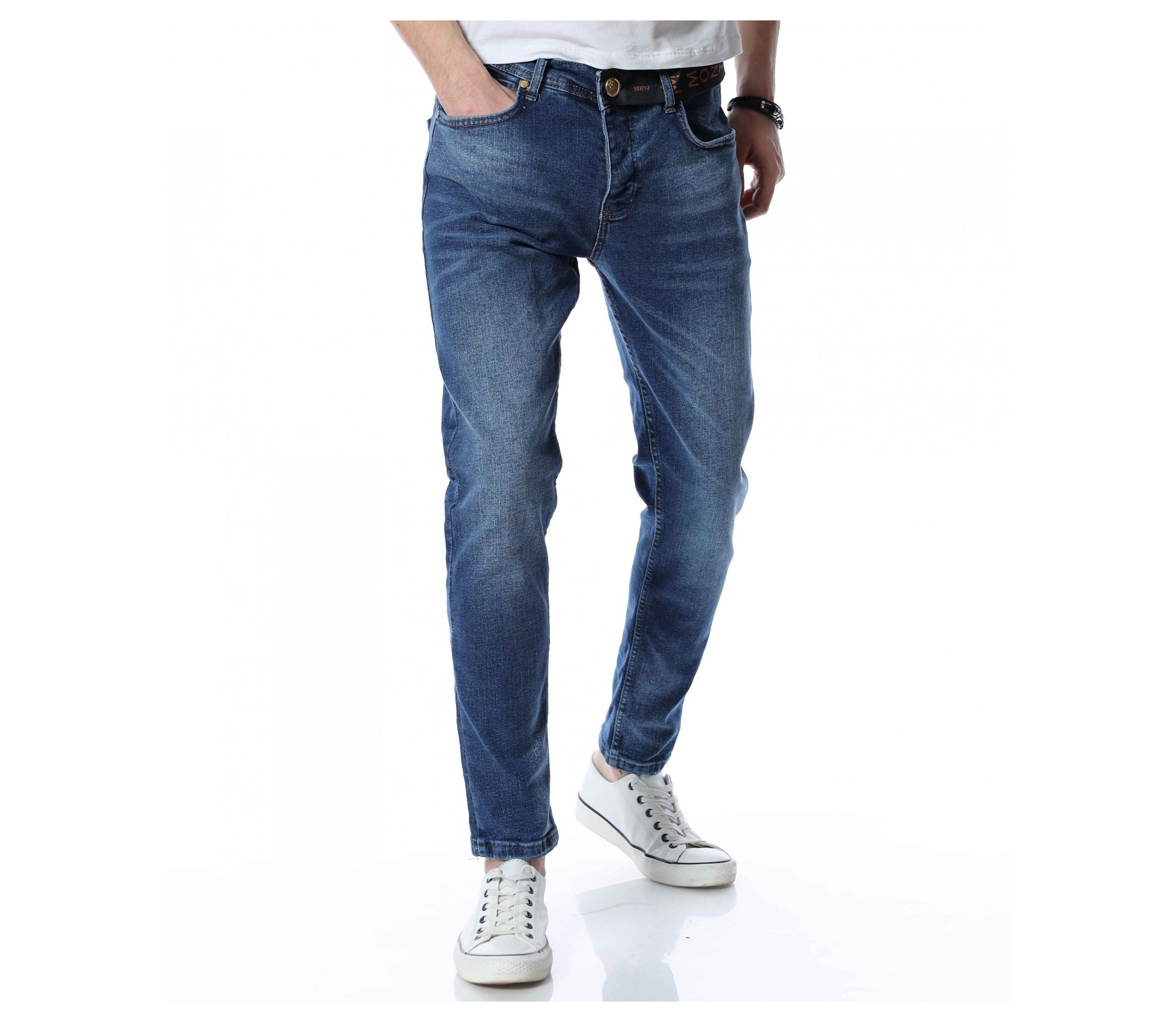 Цветът на дънките, който винаги ни идва на ум, когато чуем за тях, това е синият. Независимо в кой нюанс, с какви декорации и отенъци, тази палитра е запазена марка за този вид дреха. За да се придържаме към модните тенденции и своеобразни \"закони\" Ви представяме един модел мъжи светло сини дънки, чиято основа е напълно изчистена с леко изсветлени ефекти, които придават една по-небережна srteet визия на дрехата. Като линия, мъжките дънки са поверени на лекото вталяване, но дискретно е оставена свобода на движение, което знаем че е важно за Вас. Заложете на класическия деним този сезон, за да изглеждате зашеметяващо и в ежедневието си.