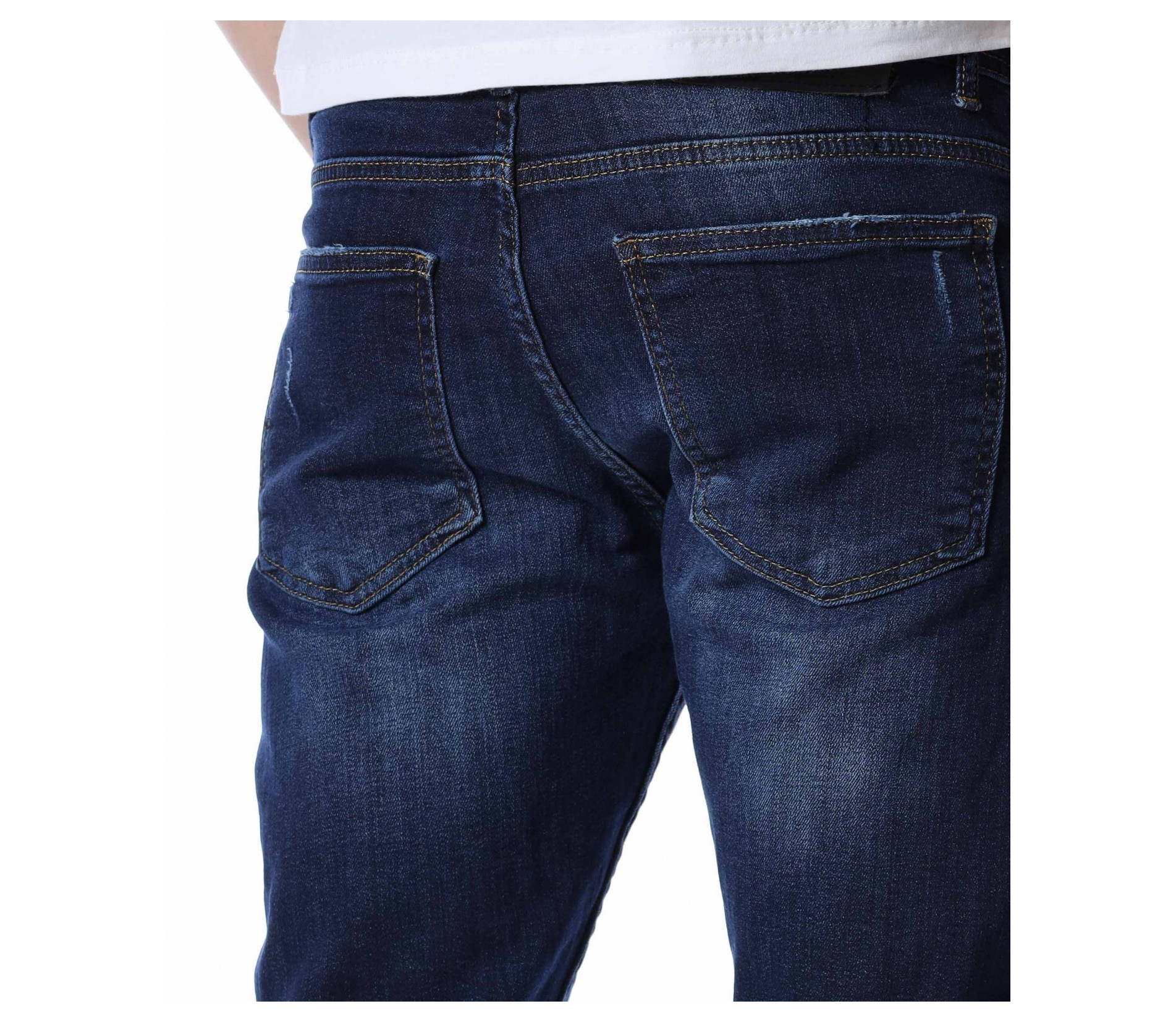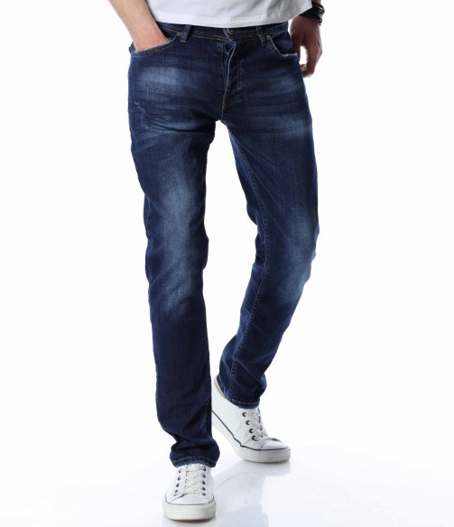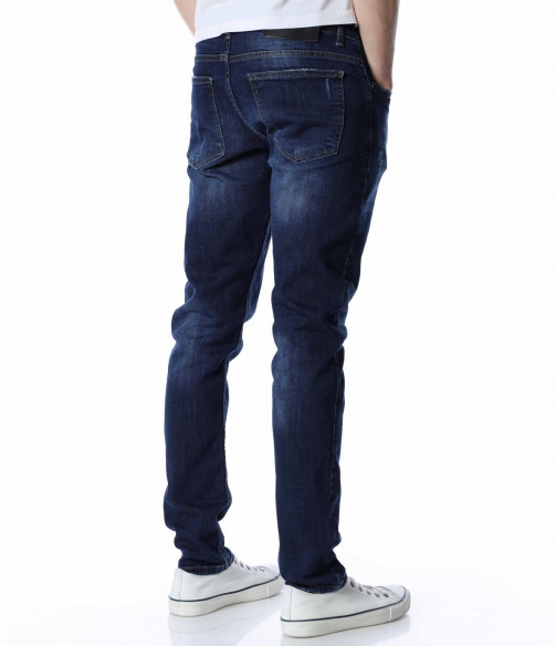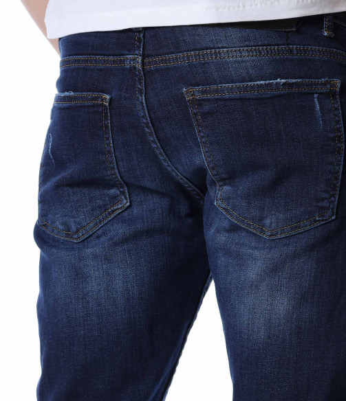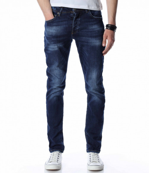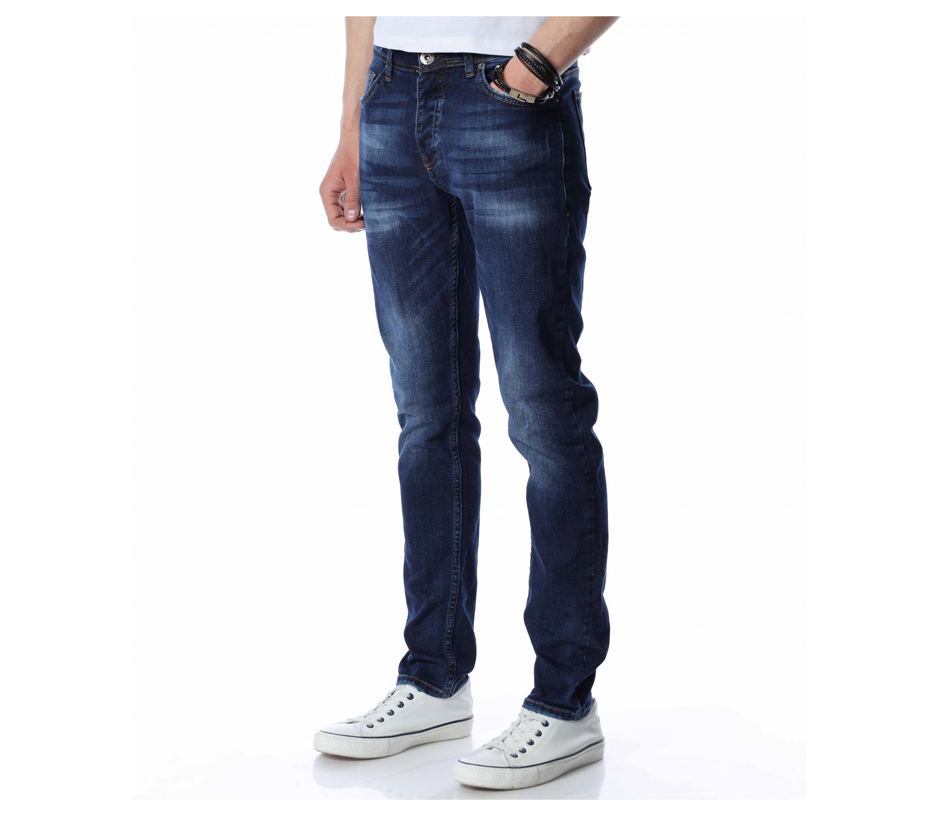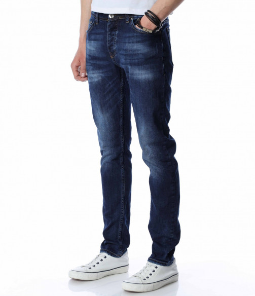 ОПИСАНИЕ НА ПРОДУКТА: Ето едно класическо предложение за всички, които са привърженици на семплия и изчистен стайлинг. Модерни мъжки дънки в тъмносин цвят. Като ефект по цялата дължина на крачолите има леко избелели участъци, а кройката е вталена. Има удобно разположени два предни и два задни джоба. Закопчаването е с помощта на няколко скрити под кант копчета. Този деним ви позволява всеобхватна комбинация от различни по своя вид блузи и тениски, необходими за вашето ежедневие, а съчетани със спортно-елегантна риза и подходящ аксесоар, получавате идеален сет за вечерно парти. Заложи на практичното и стилното.