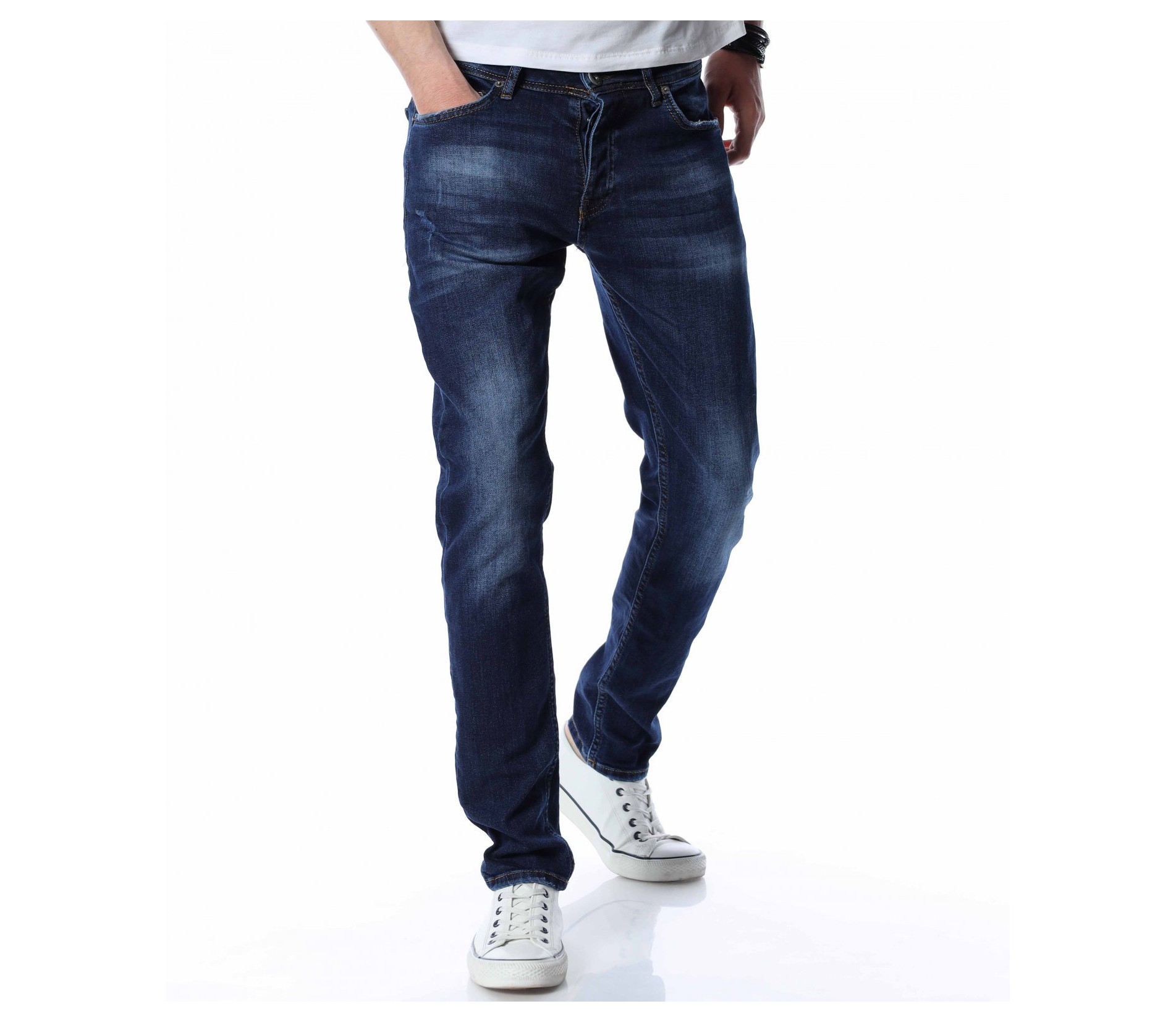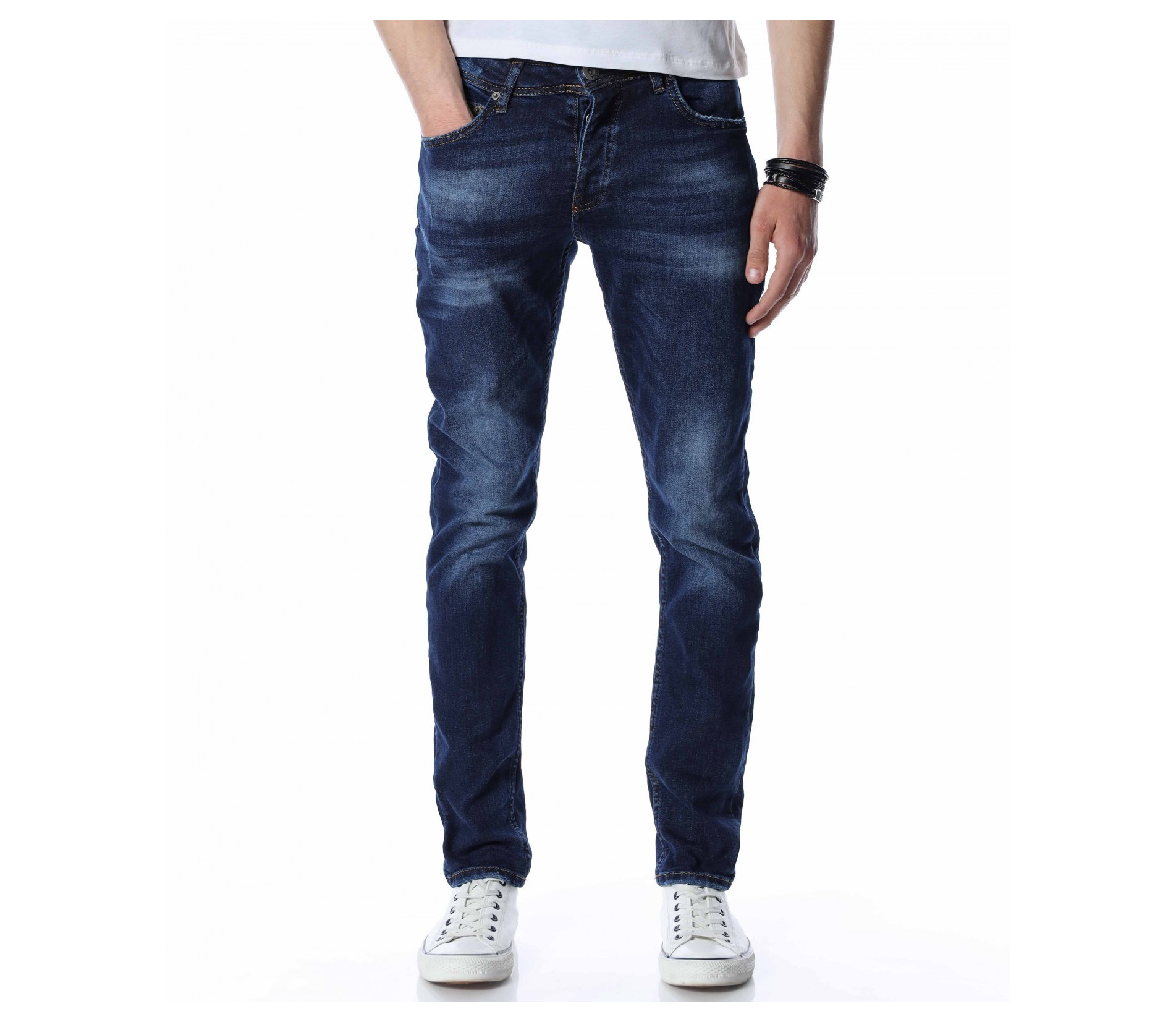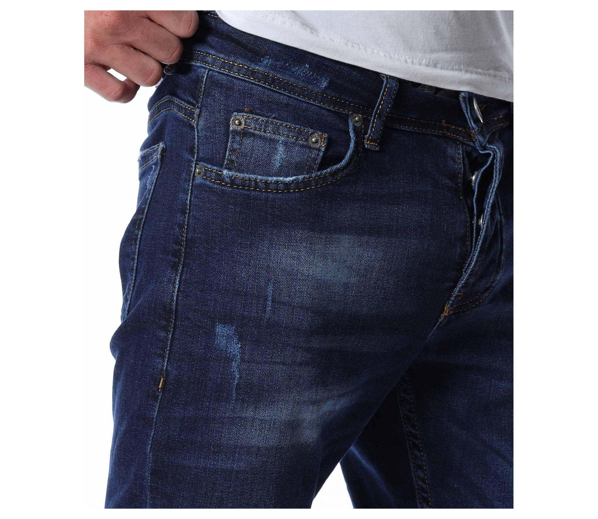 ОПИСАНИЕ НА ПРОДУКТА: Ето едно класическо предложение за всички, които са привърженици на семплия и изчистен стайлинг. Модерни мъжки дънки в тъмносин цвят. Като ефект по цялата дължина на крачолите има леко избелели участъци, а кройката е вталена. Има удобно разположени два предни и два задни джоба. Закопчаването е с помощта на няколко скрити под кант копчета. Този деним ви позволява всеобхватна комбинация от различни по своя вид блузи и тениски, необходими за вашето ежедневие, а съчетани със спортно-елегантна риза и подходящ аксесоар, получавате идеален сет за вечерно парти. Заложи на практичното и стилното.