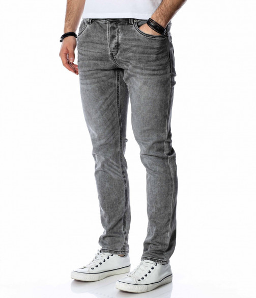 ОПИСАНИЕ НА ПРОДУКТА: Мъжки стилни дълги дънки в актуален сив цвят. Основата на денима е напълно изчистен от орнаменти, само на места се забелязва лек протрит ефект. Този вид дънков панталон е един от най-търсените и предпочитаните при мъжете. Изключително стилен и в същото време Ви позволява чрез съчетания да го превърнете в дънките \"направени точно за Вас\". В предната и задната част са поставени по два дълбоки джоба, симетрично разположени за идеален силует на модерният Ви сет. Кройката на джинсите е слим фит и е идеална за пролетно-летния сезон. Удобни и лесни за комбиниране тези дънки със сигурност ще се превърнат във ваши любимци този сезон.