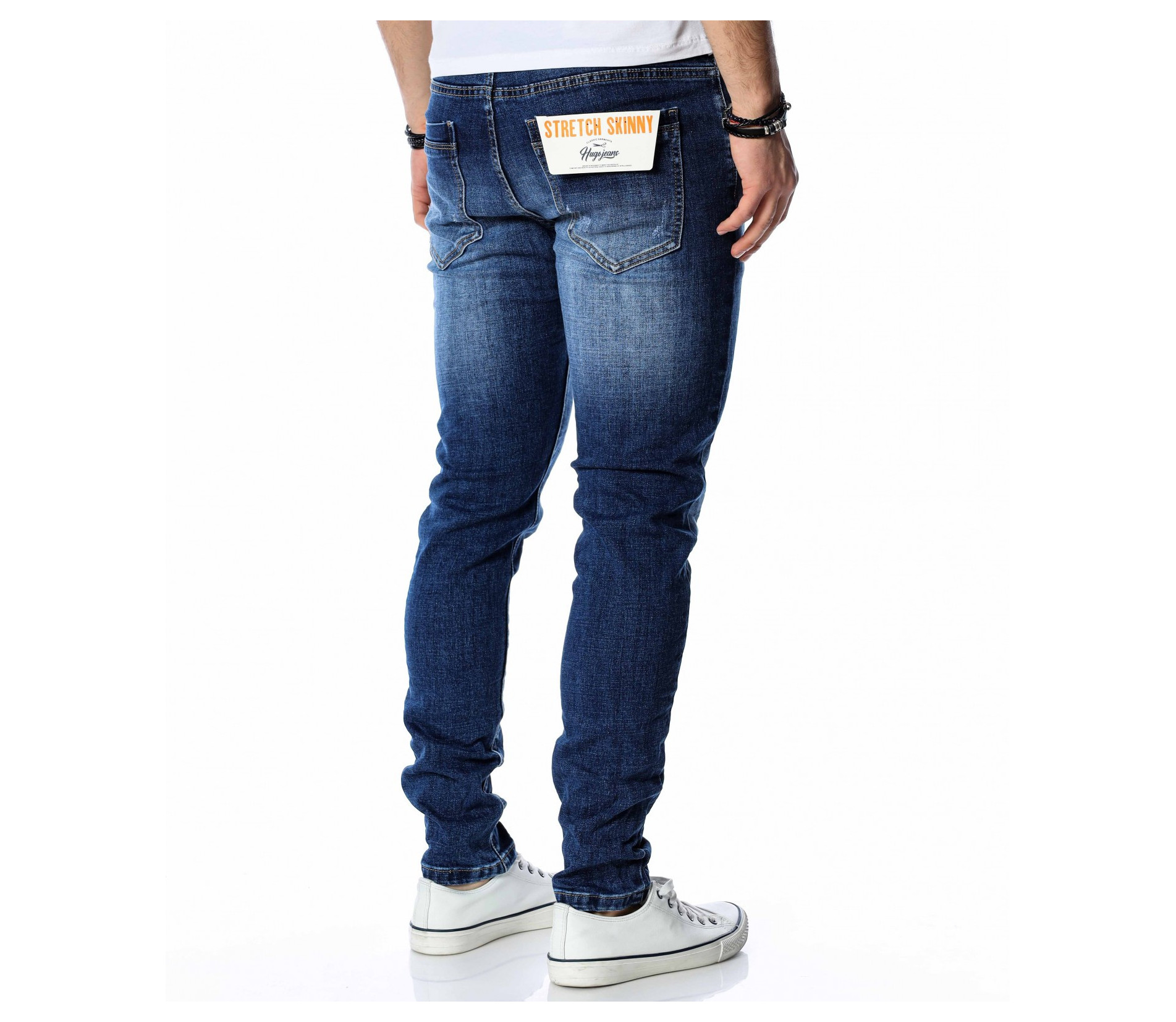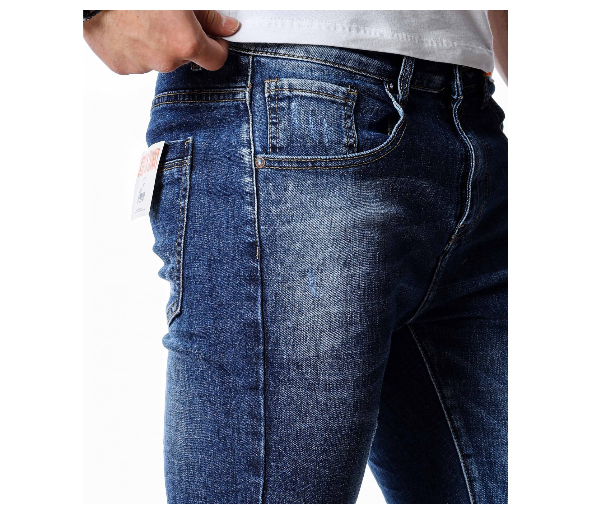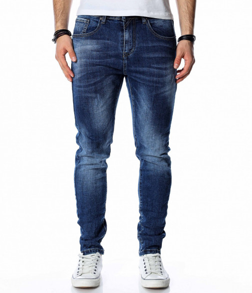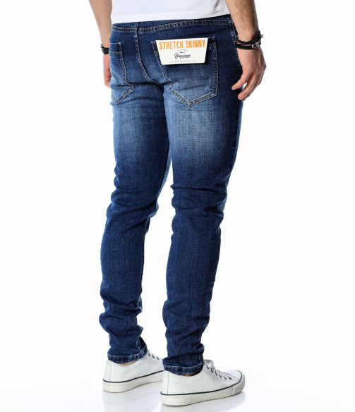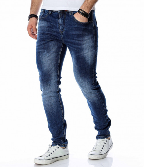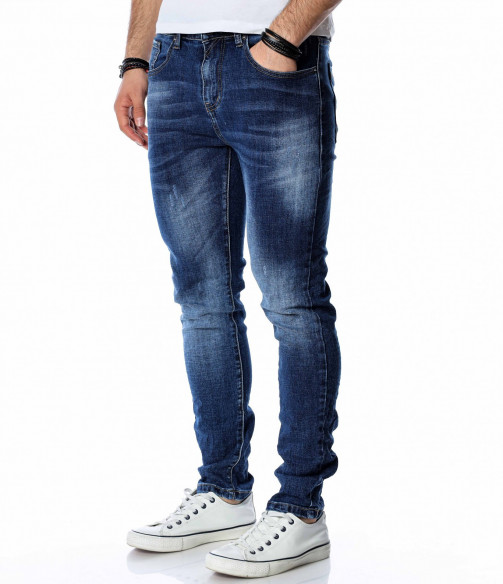 ОПИСАНИЕ НА ПРОДУКТА: Супер актуален модел мъжки дънки в класически тъмно син цвят. Както в предната, така и в задната част цветът на джинсите е атрактивно изсветлен, като се създава една модерна визия, наситена с фешън излъчване. В предната и задната част на дънките са поставени по два дълбоки джоба, като са акцентирани с хоризонтални линии в същия цвят. Като ценители на перфектния външен вид, смело Ви препоръчване този уникален дънков панталон, съчетаващ в себе си актуална slim fit кройка, наситен цвят и 100% гарантиран комфорт. За създаването на идеалният аутфит, заложете на този деним в комбинация със свежа клубна тениска, спортно-елегантни кецове и удобна връхна дреха.