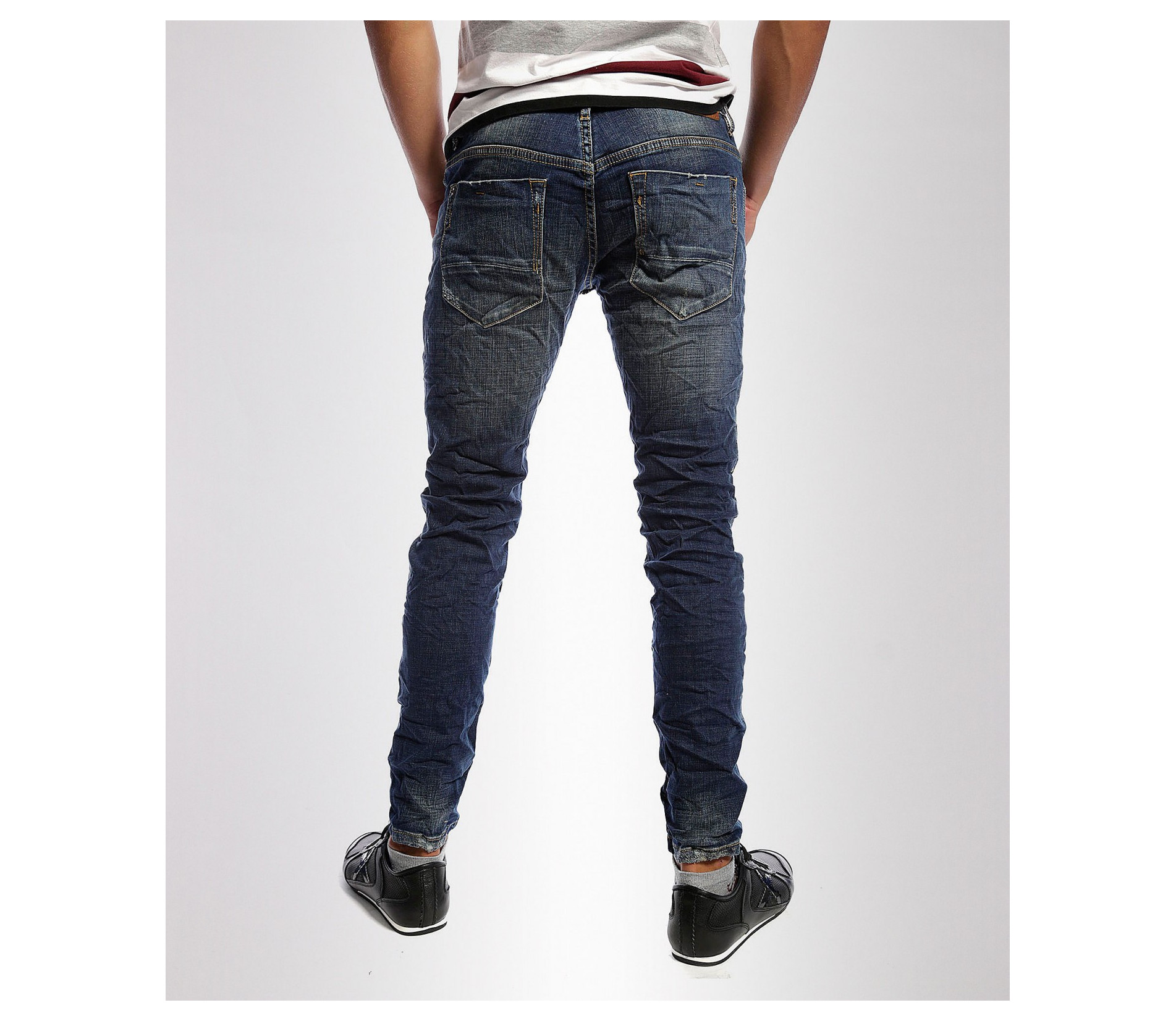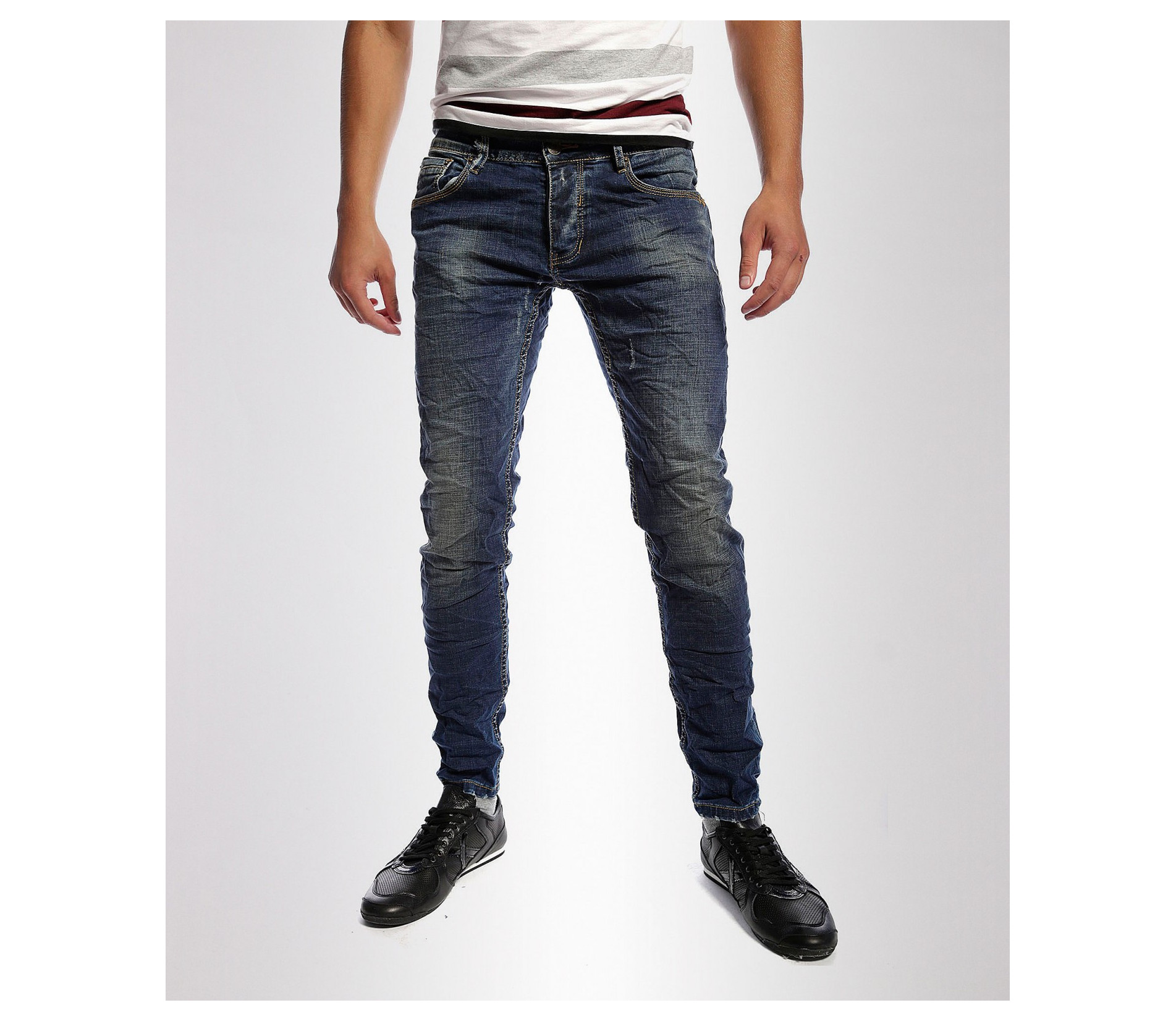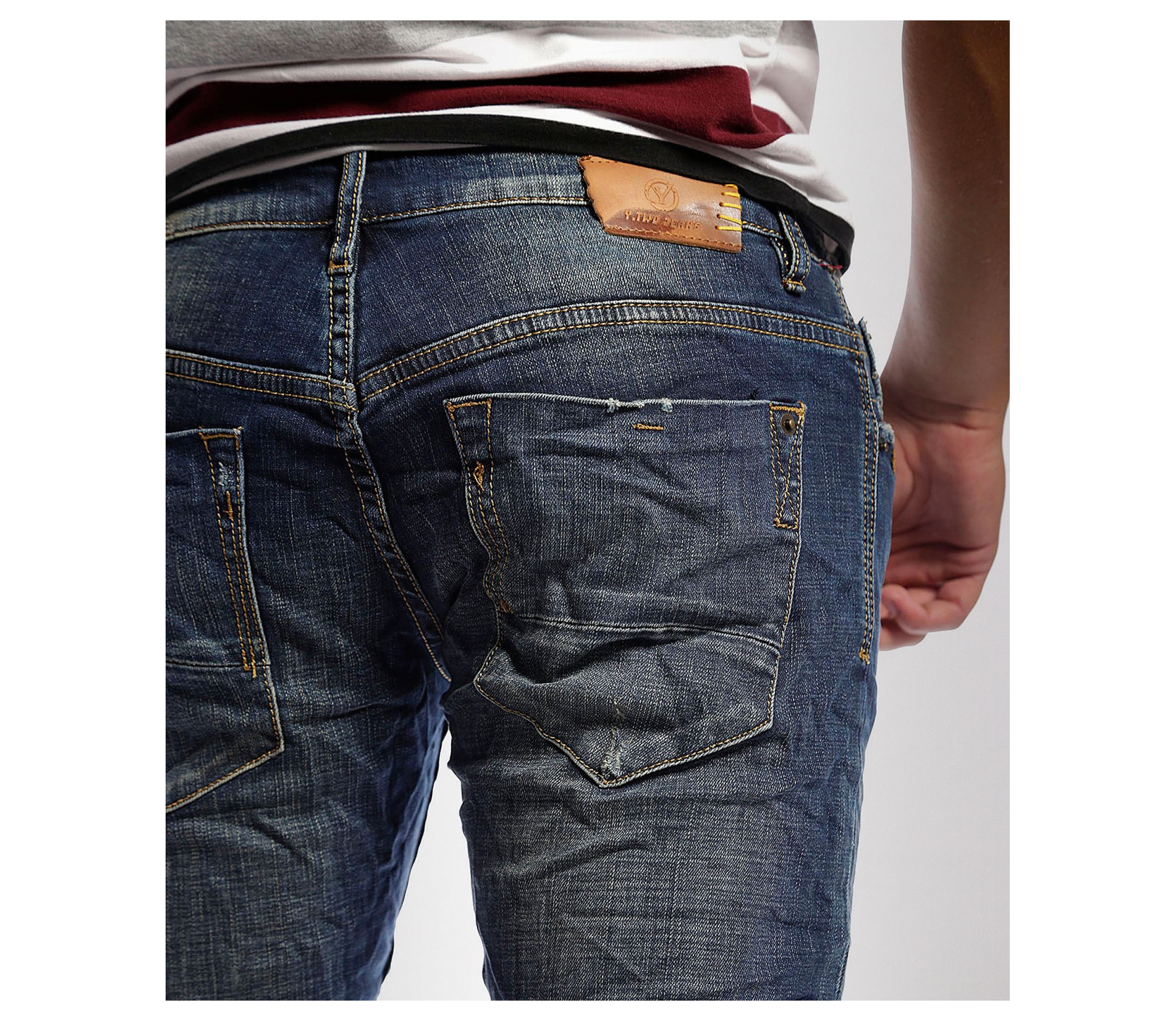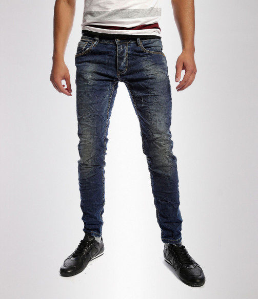 Описание на продукта: Мъжки вталени дънки с избелял ефект. В предната част дънките имат два предни джоба. Закопчаването е с цип и копчета. Дънките са силно вталени с еластант за да може да има свобода на движението. В задната част имат два дълбоки джоба, очертани с жълти шевове. Изработени са от комбианция от материи-97%памук и 3%еластант за максимално удобство. Съчетайте с кецове , тениска,яке,колан или блуза за свежа визия, тези дънки се превръщат в перфектния избор за всеки повод.