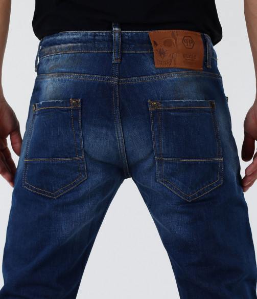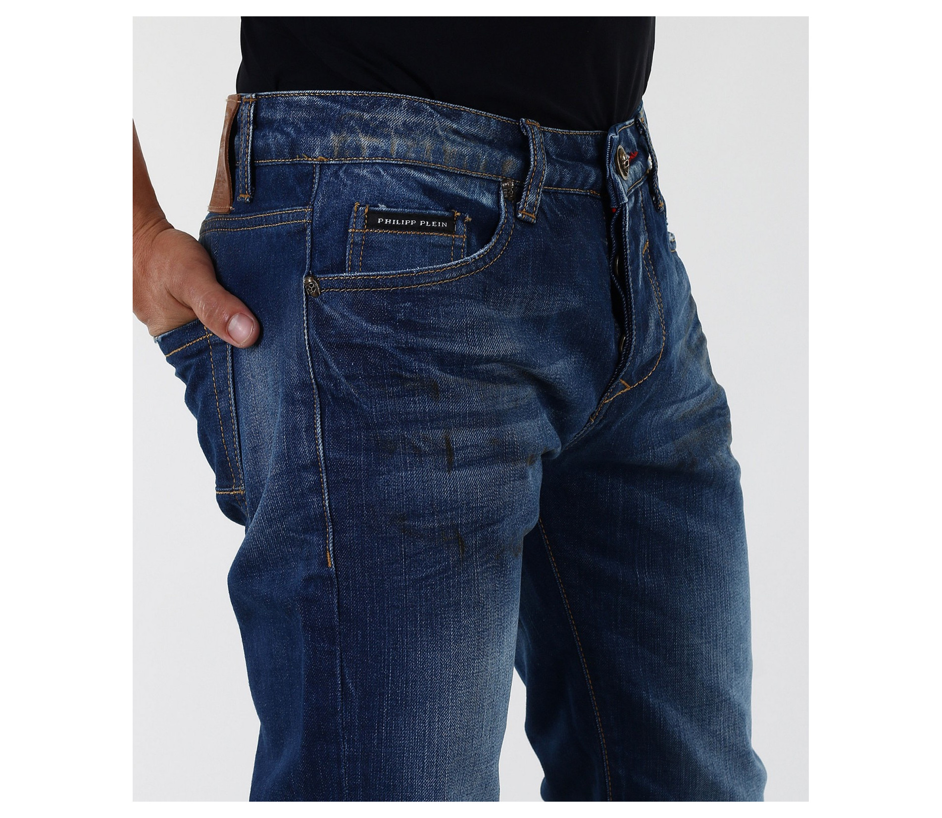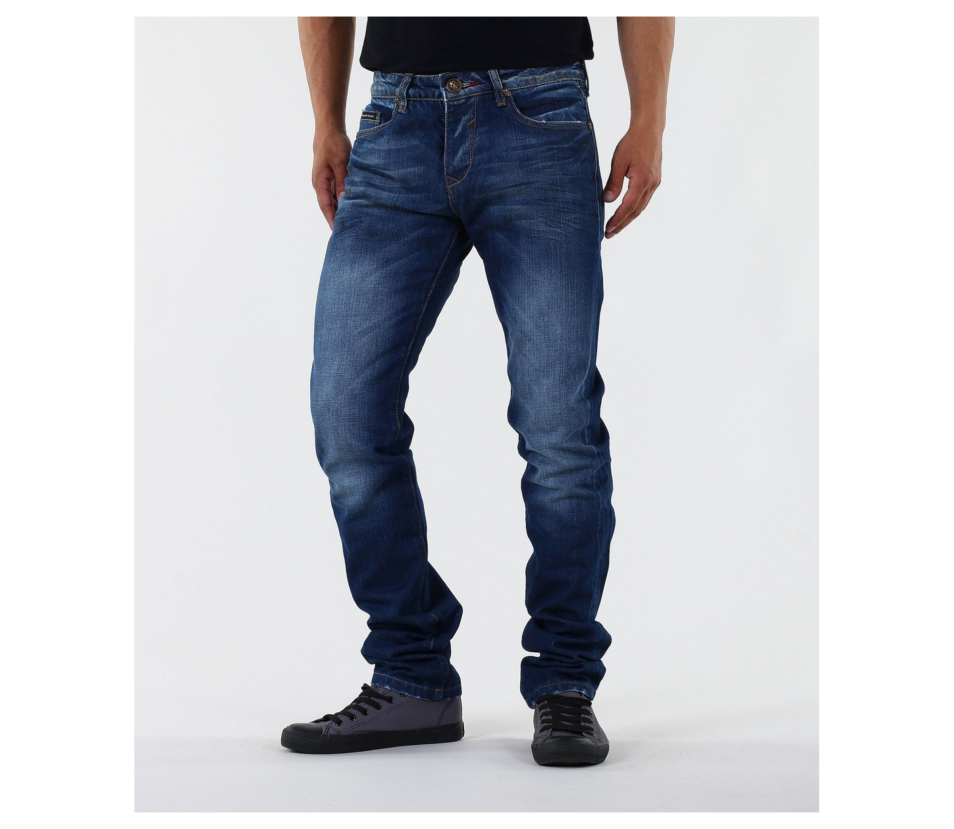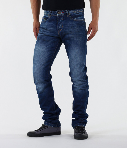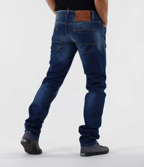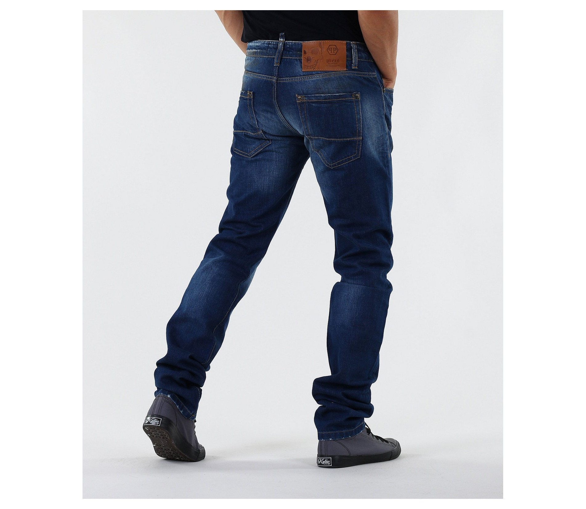 Описание на продукта: Страхотно стилно предложение на мъжки дълги дънки. Моделът е в тъмносин цвят, като на места има лек избелял ефект. Кройката на моделът е леко вталена и е със стандартна дължина. Както в предната, така и в задната част на моделът са поставени по два дълбоки джоба. Моделът е изчистен, което го превръша в изключително стилен. Перфектно се съчетава както с тениска, така и с риза, спортни кецове или спортно-елегантни обувки и стилен колан, като завършек на идеалната Ви визия. Освен страхотна визия този модел дънки Ви осигурява комфорт и качество, заради изработката си от 100% чист памук.