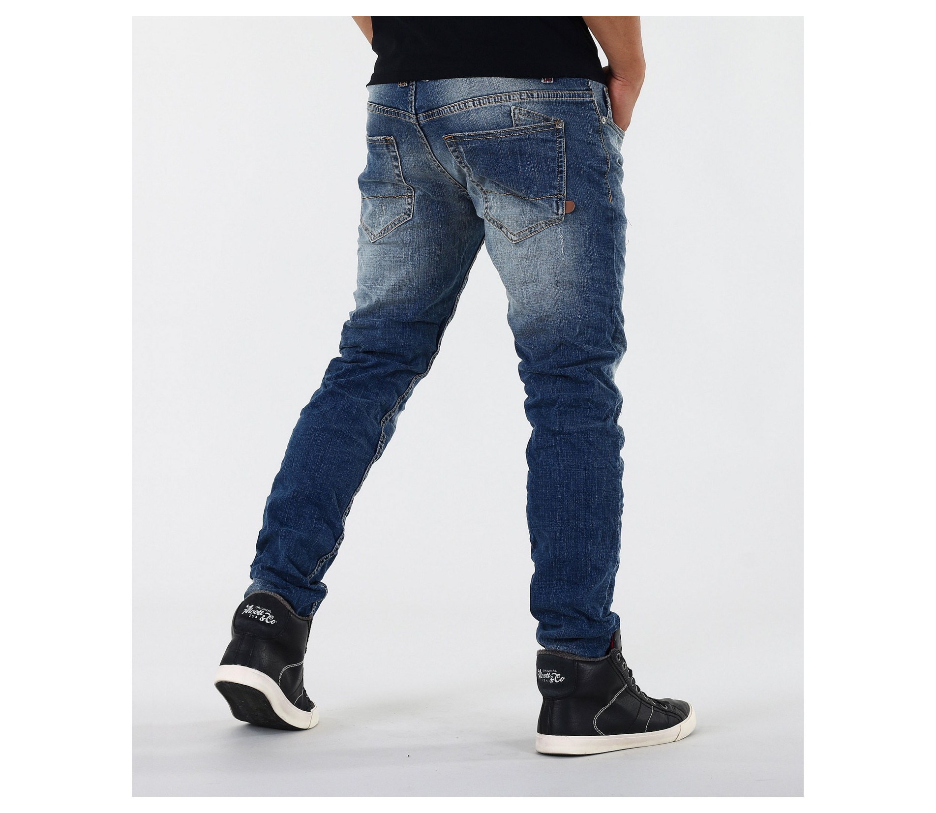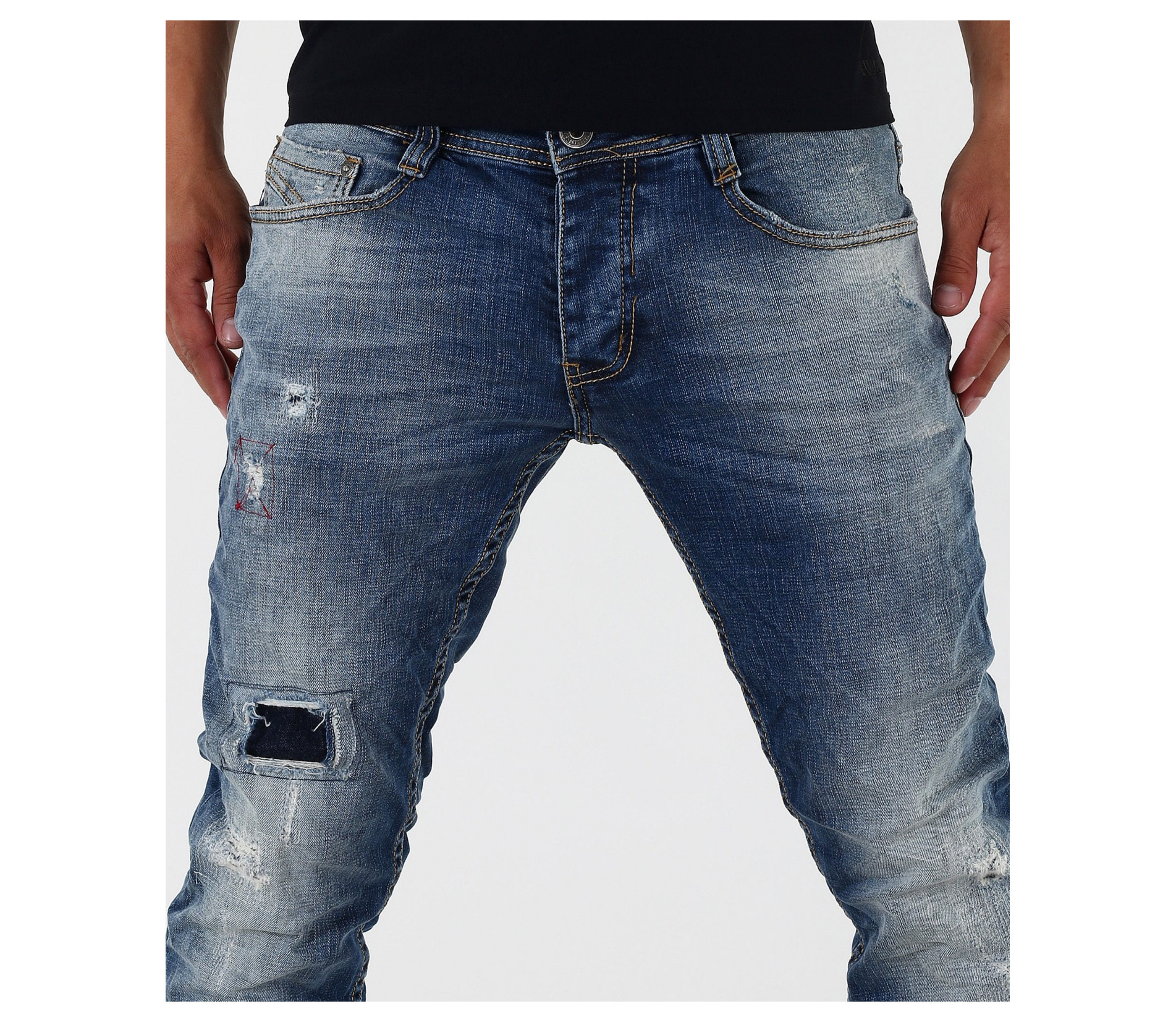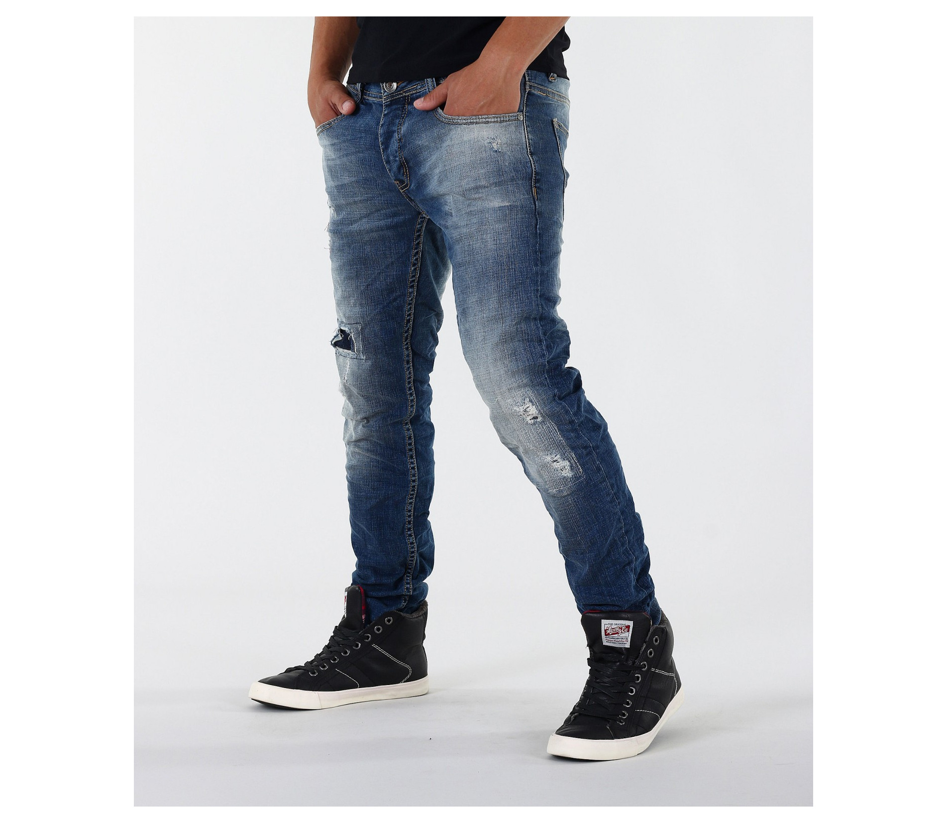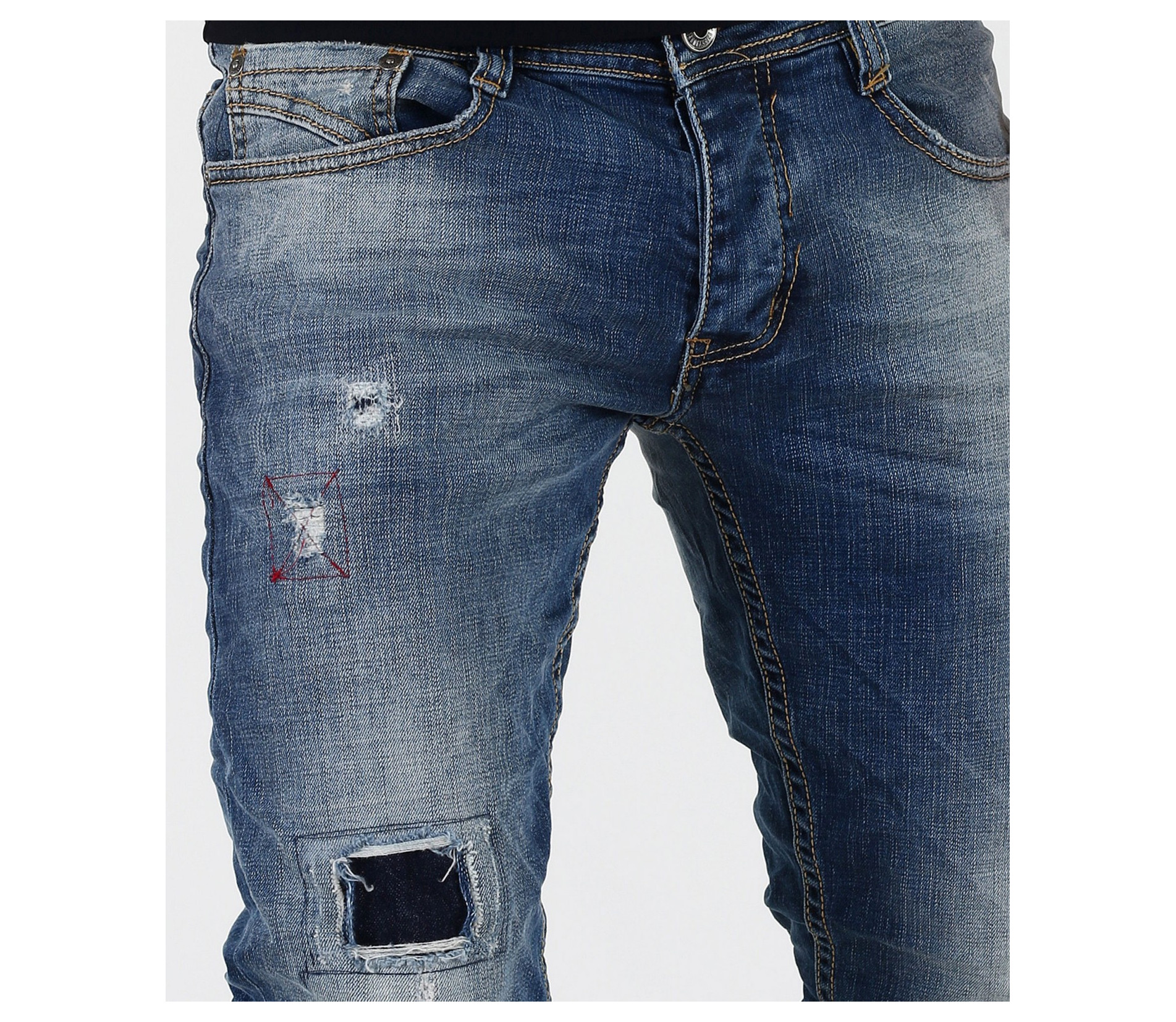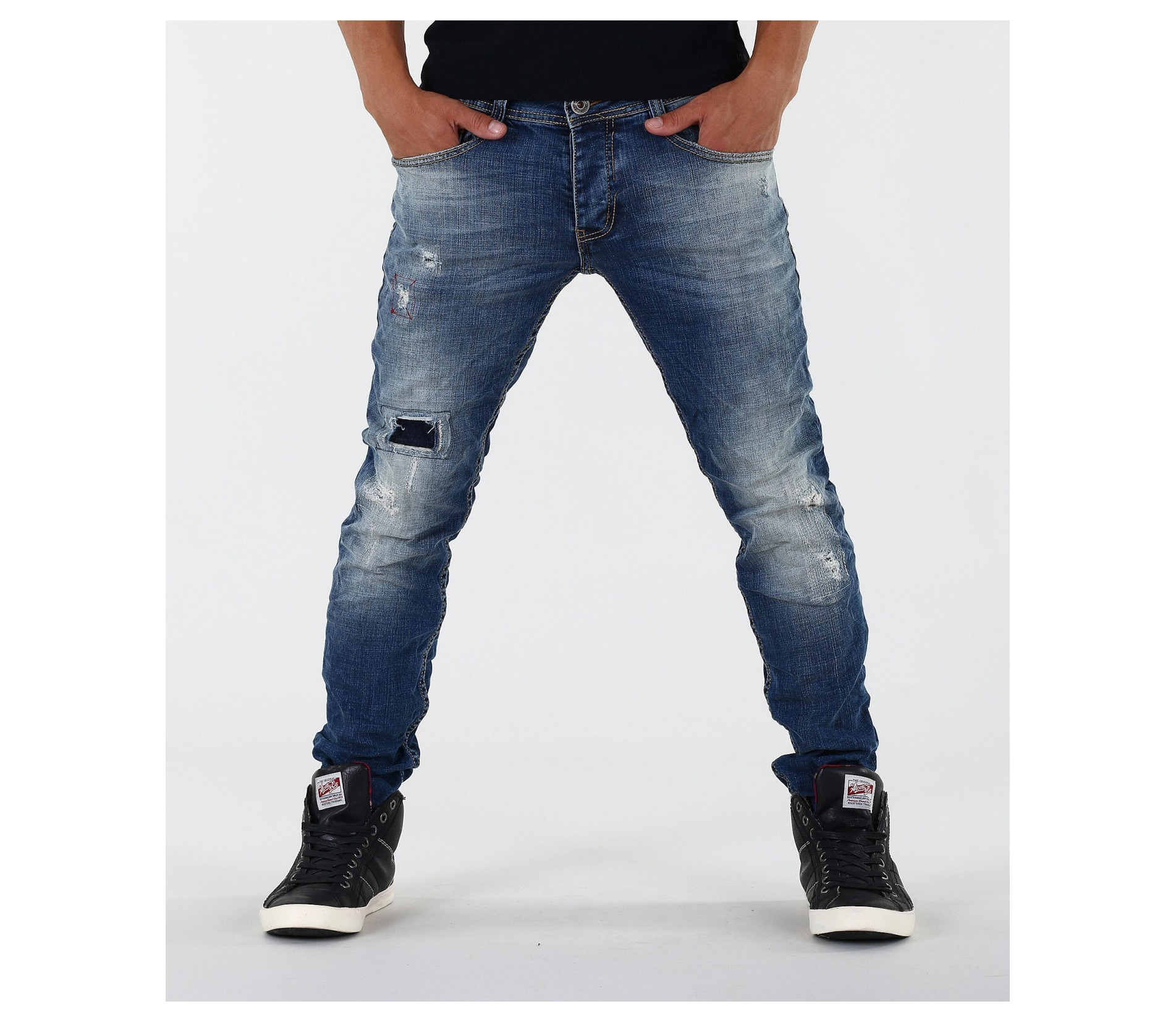 Описание на продукта:Стилни и модерни маркови мъжки дънки с кръпки и избелял ефект. Акцента на дънковите панталони е в избелелия и накъсания ефект в предната част, както и в кръпките.В предната ,както и в задната част, дънките с вталени крачоли разполагат с по два джоба. Всички шевове на модела са класически жълти. Закопчаването е с копчета.Кройката на модела е вталена, но не пракалено, за да осигури желания комфорт при носене. За удобството допринасят още и висококачествените материи-95%памук и 5 % еластант.Подходящи в съчетание с модерни кецове, мокасини и еспадрили, свежа тениска,мъжко спорно кожено яке и аксесоари за допълнителен акцент. Гарантирано качество на продукта.