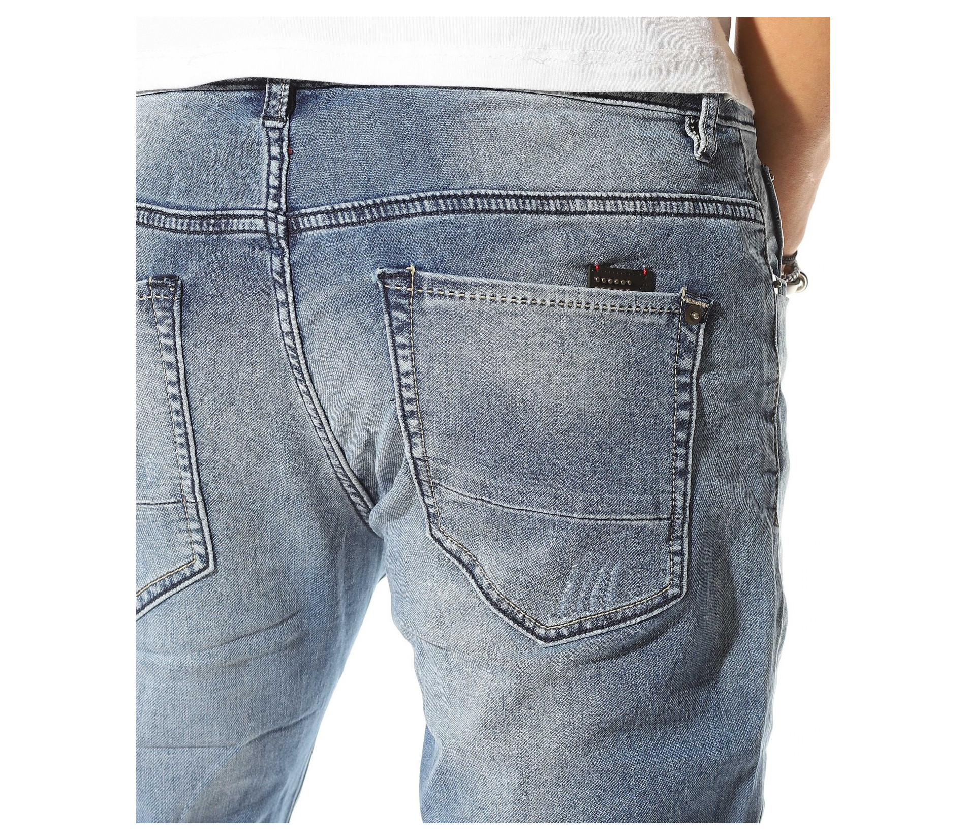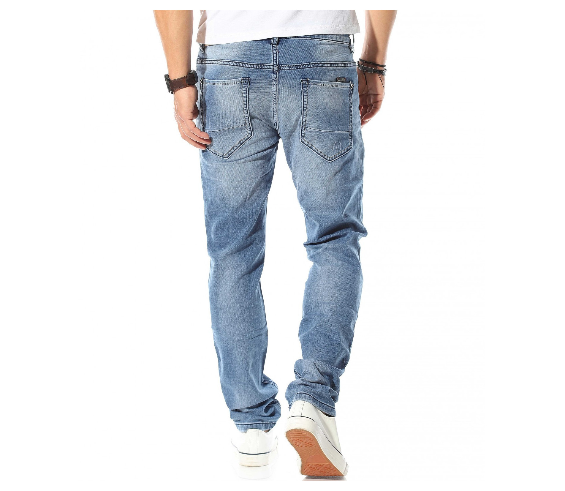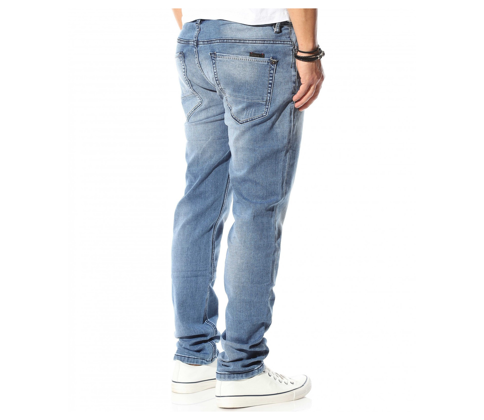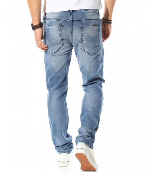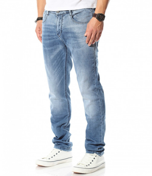 Описание на продукта: Светло син мъжи спортно-елегантен модел деним, който е идеалното решение за ценителите на „златните“ модели в лицето на панталоните. Мъжките пролетни дънки са изработени в класическа кройка, която леко се стеснява в областта на глезена, запазвайки автентичния дизайн на дънките. Цветът също е провокиран от класическия vintage стайлинг, включващ светло сини джинси, бели кецове и едноцветна фланелка, които въпреки семплостта си, в комбинация винаги са провокирали внимание. За контраст от светлия тон на плата, всички шевове, всключващи краищата на крачолите и джобовете са кантирани от тъмни конци, които създават ефектен контраст. Последния акцент, който се откроява върху единият заден джоб е деликатно прокрадваща се метална декорация, която макар и дребна, създава перфектен завършек.