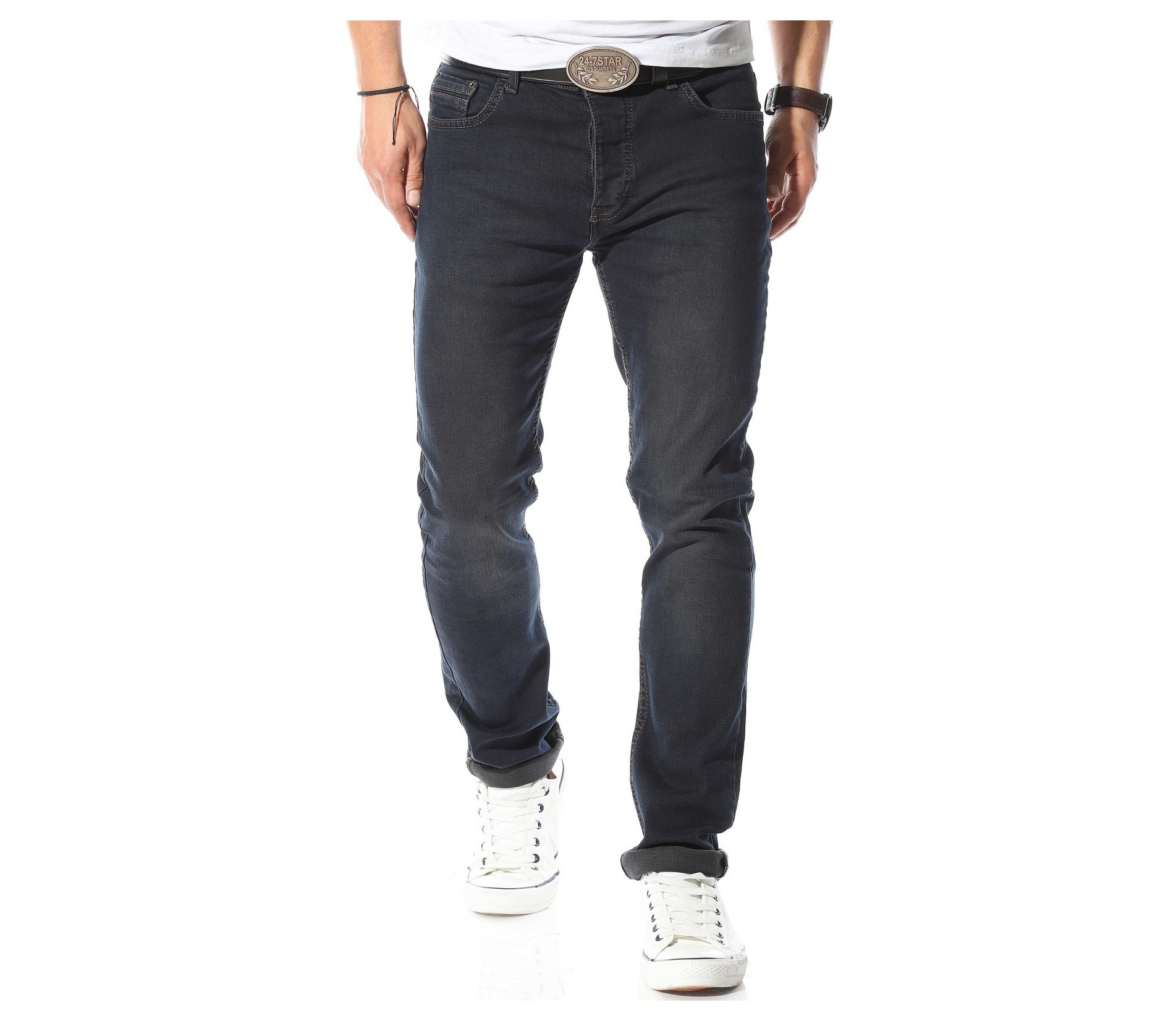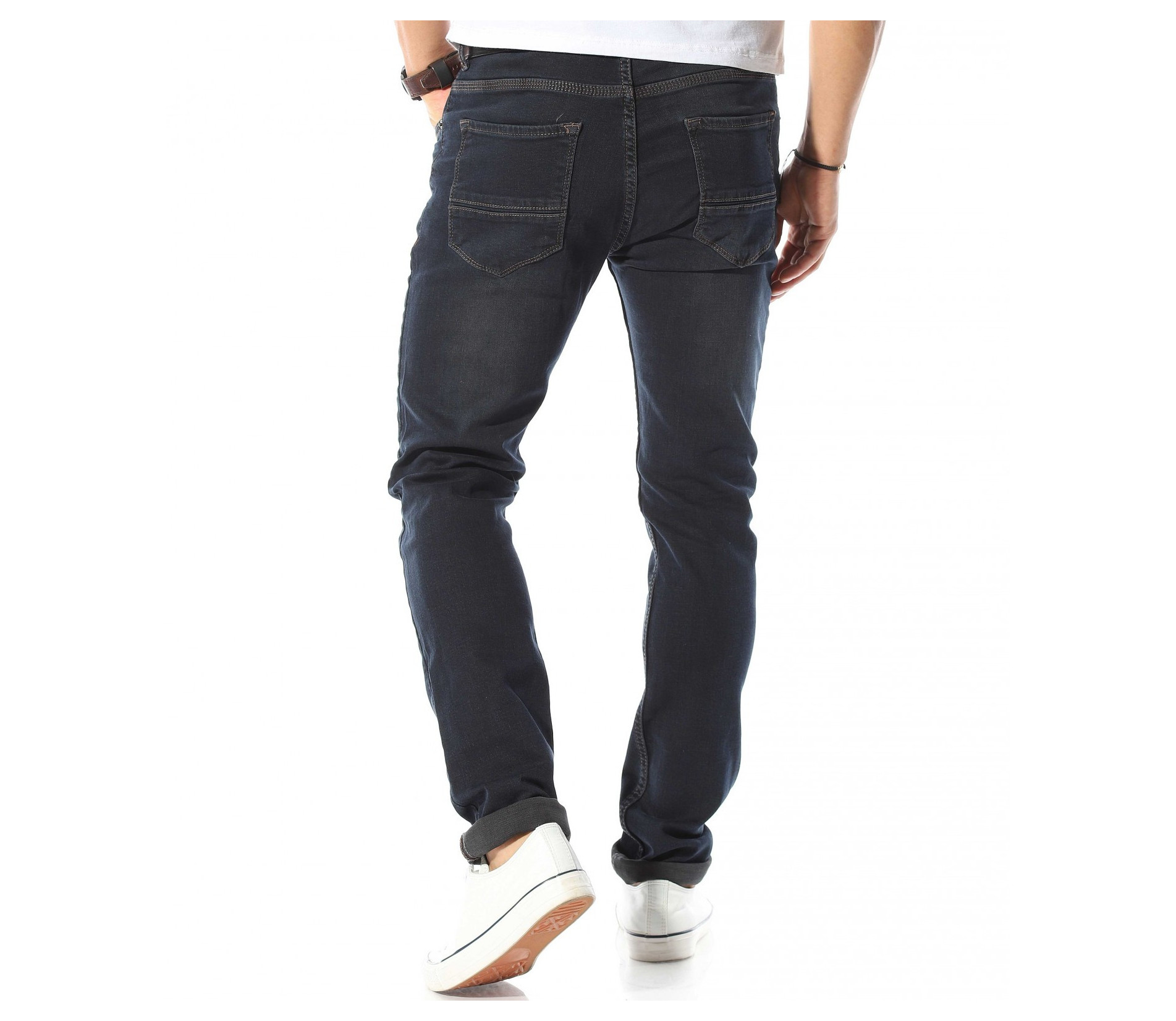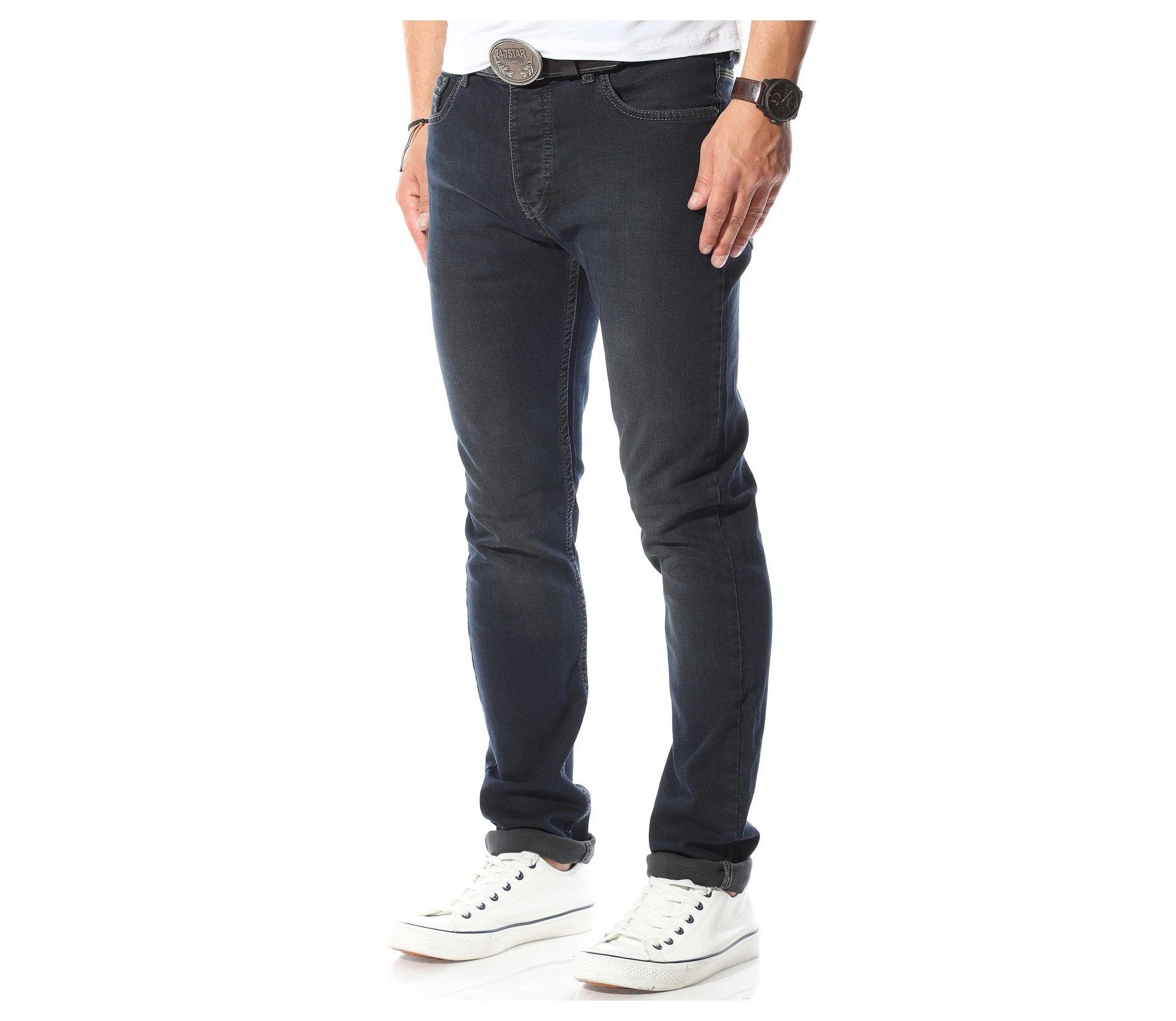 Описание на продукта: В светът на мъжката мода може да откриете всевъзможни изражения на панталоните. Но като истински ценители на evergreen-a, ние от www.red-point.bg открихме истинското лице на класическият мъжки деним. В тъмно син към черен нюанс, мека и удобна материя, деликатно вталена кройка и малки елементи, присъщи за този тип дреха, Ви представяме уникалният и неповторим дънков панталон. В предната и задната му част са поставени по два джоба, които изграждат истниското лице на дънките. Тези на гърба са в изразителен външен вариант, за разлика от предните два, които са деликатно прибрани. Завършвайки с традиционно и удобно закочаване, Ви приканваме да опитате \"хапка\" от перфектния мъжки аутфит.
