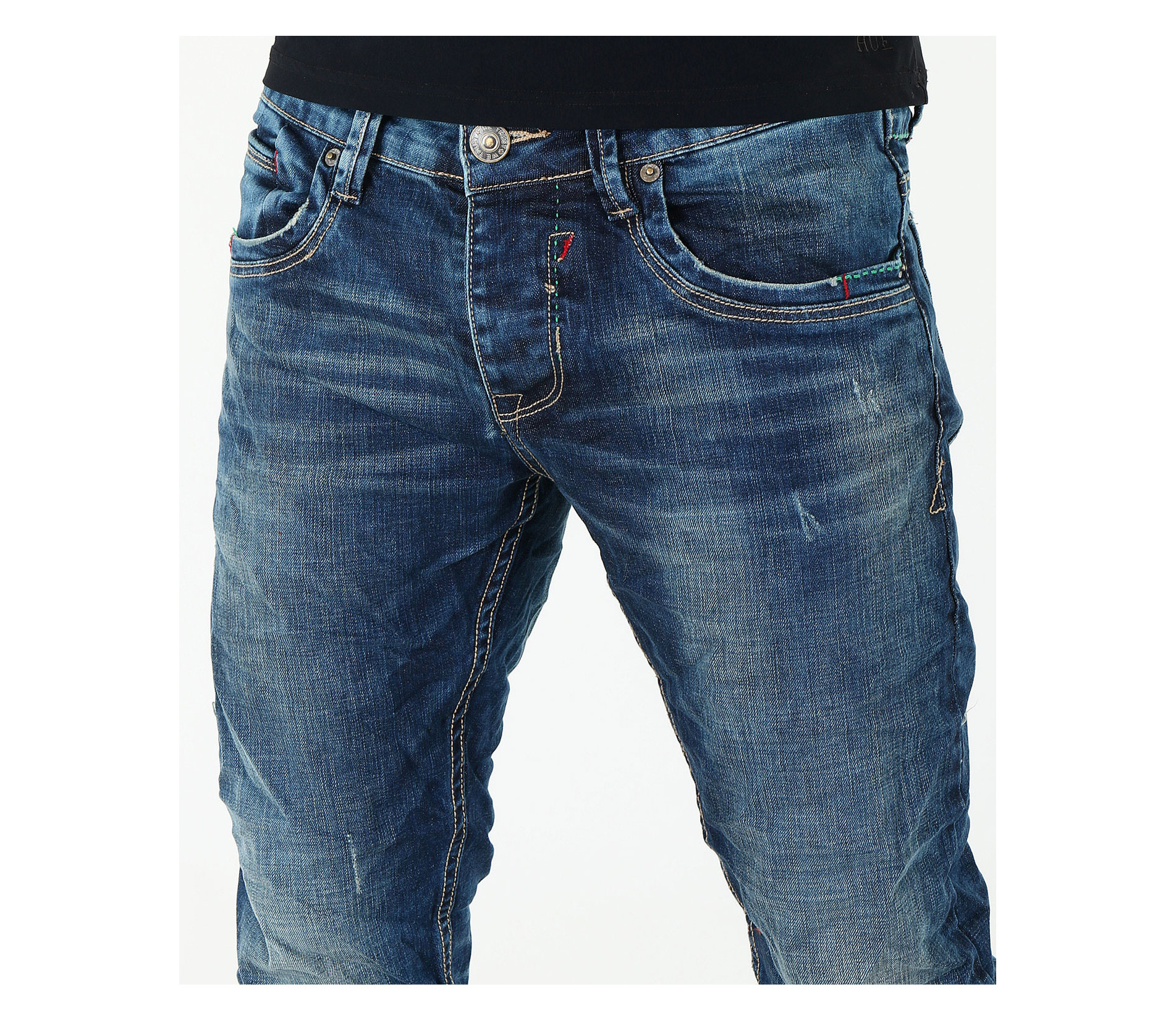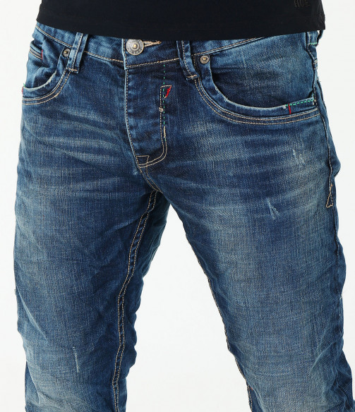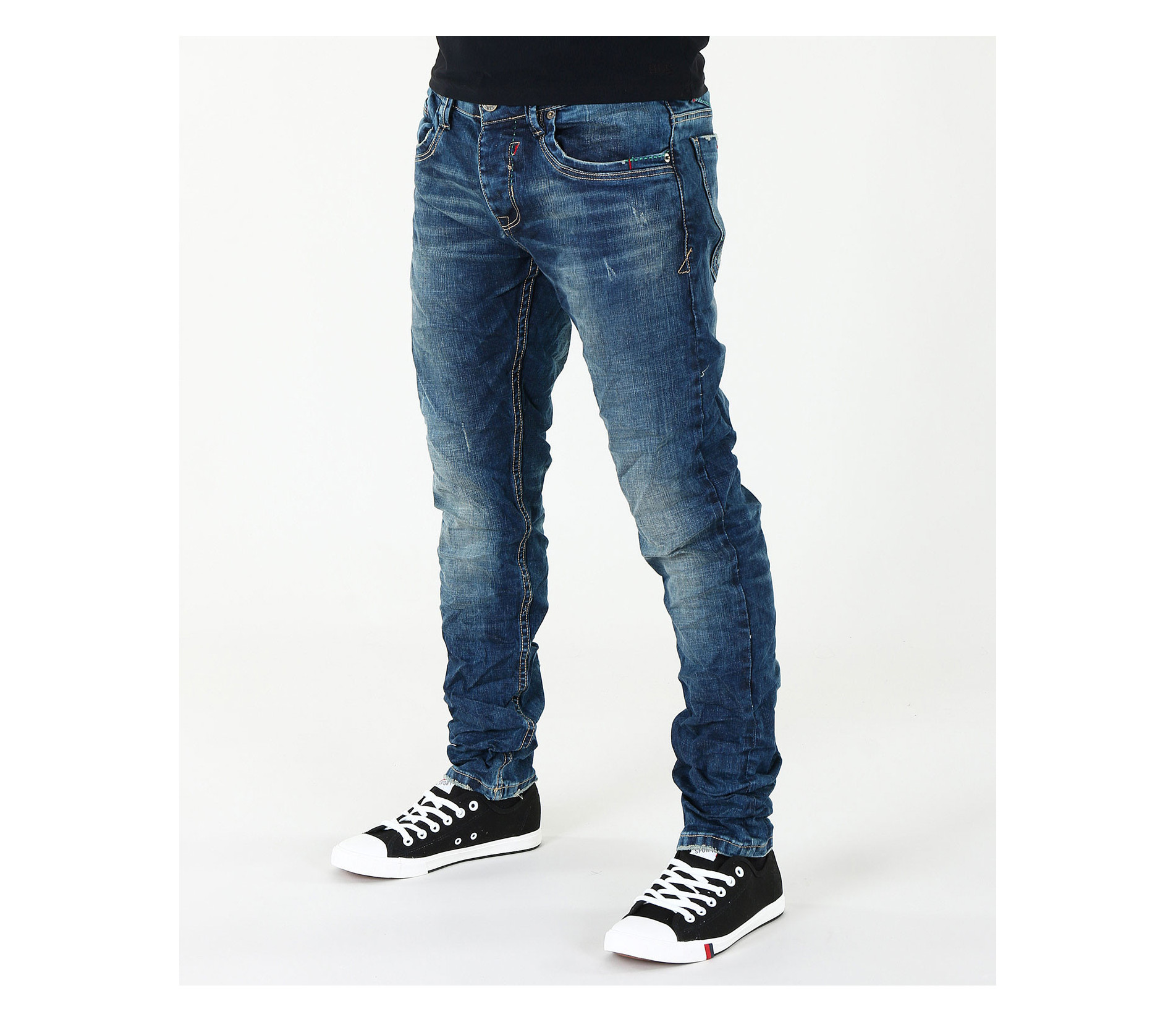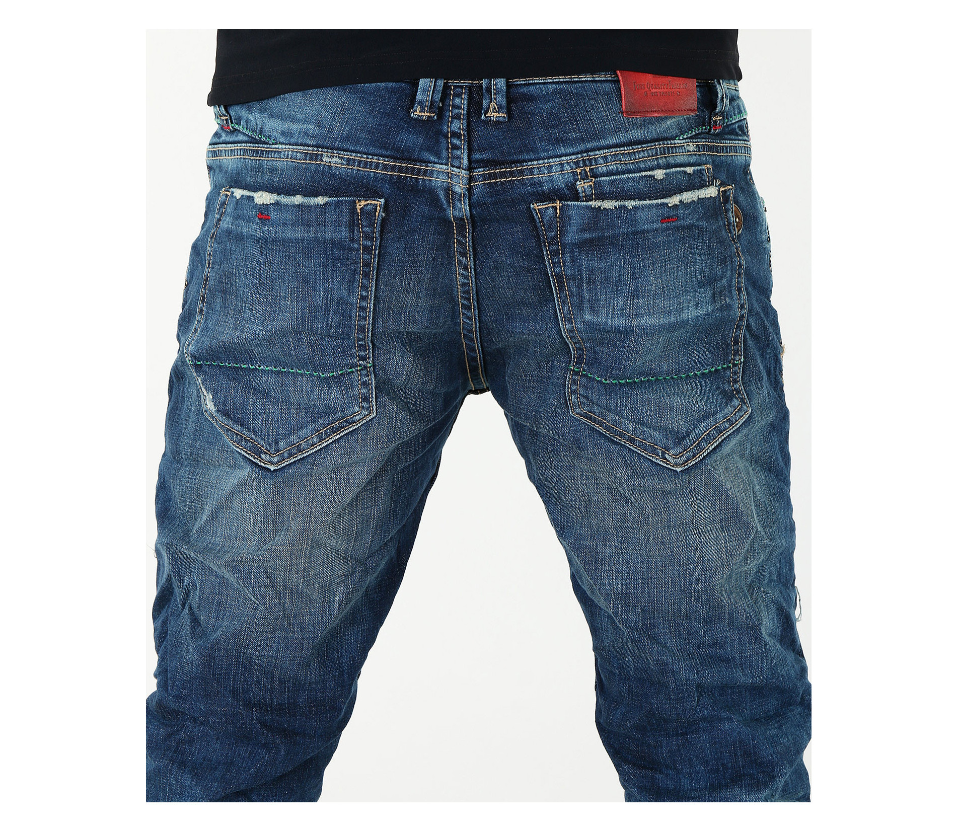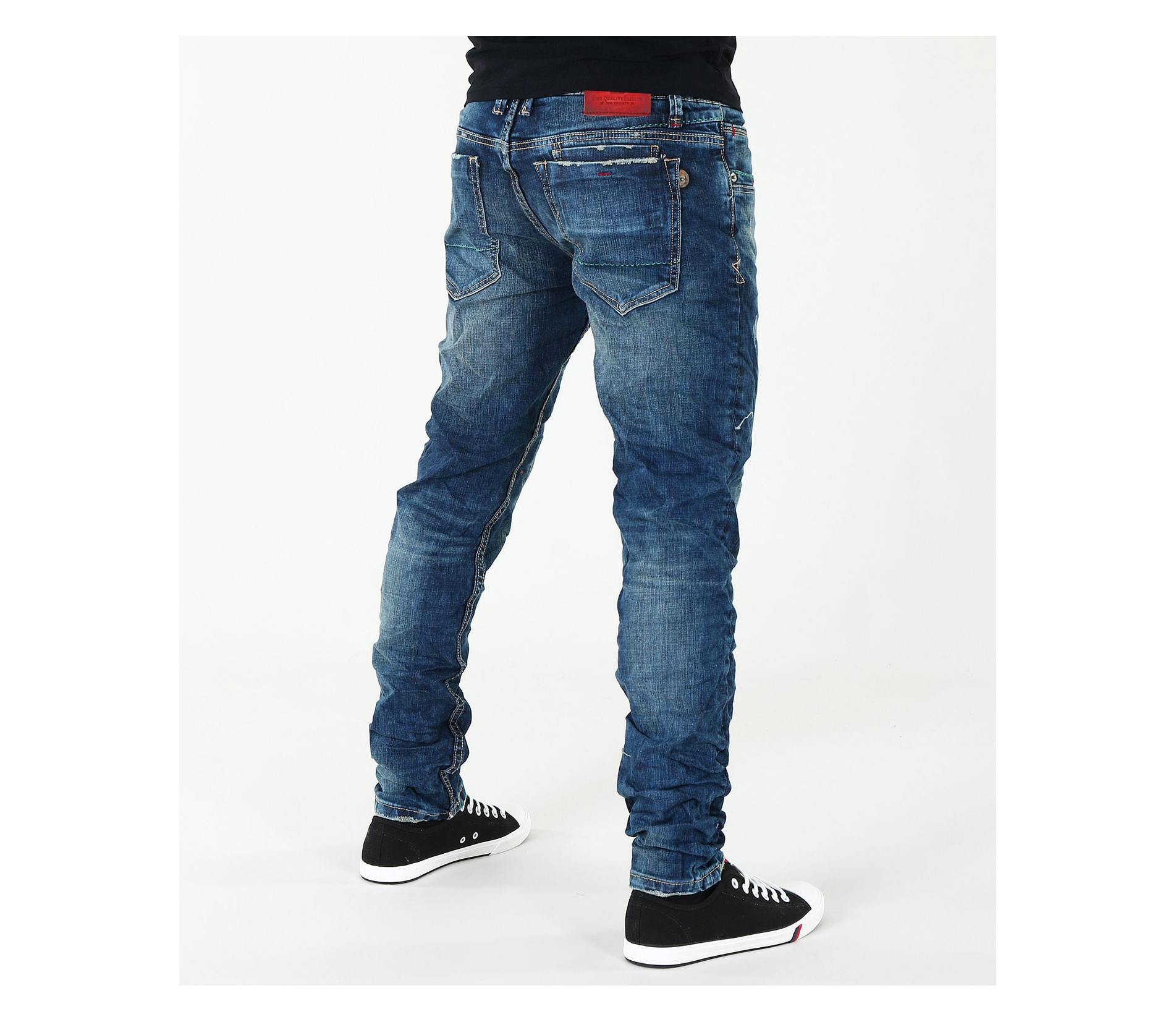 Описание на продукта: Представяме Ви един изключително атрактивен мъжки спортно-елегантен деним. Като основен акцент е избелелия ефект, по дължината на модела. Освен стандатрните шевове, акцент поставят и други такива в зелен цвят, разположени при закопчаването и джобовете. Както в предната, така и в задната част, дънковият панталон разполага с по два джоба осигуряващи комфорт.Кожена емблема с марката на дънките е разположена при колана в задната част, привличаща допълнително внимание. Завършете визията си със свеж пуловер , блуза или аксесоар по Ваш вкус, и внесете cool-Излъчване.