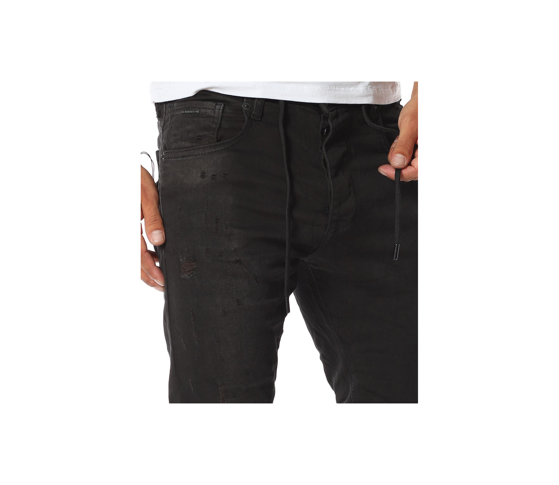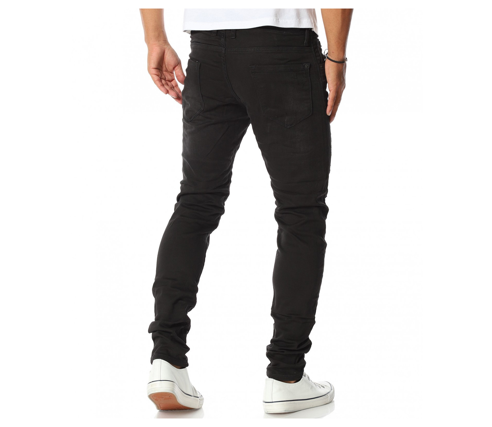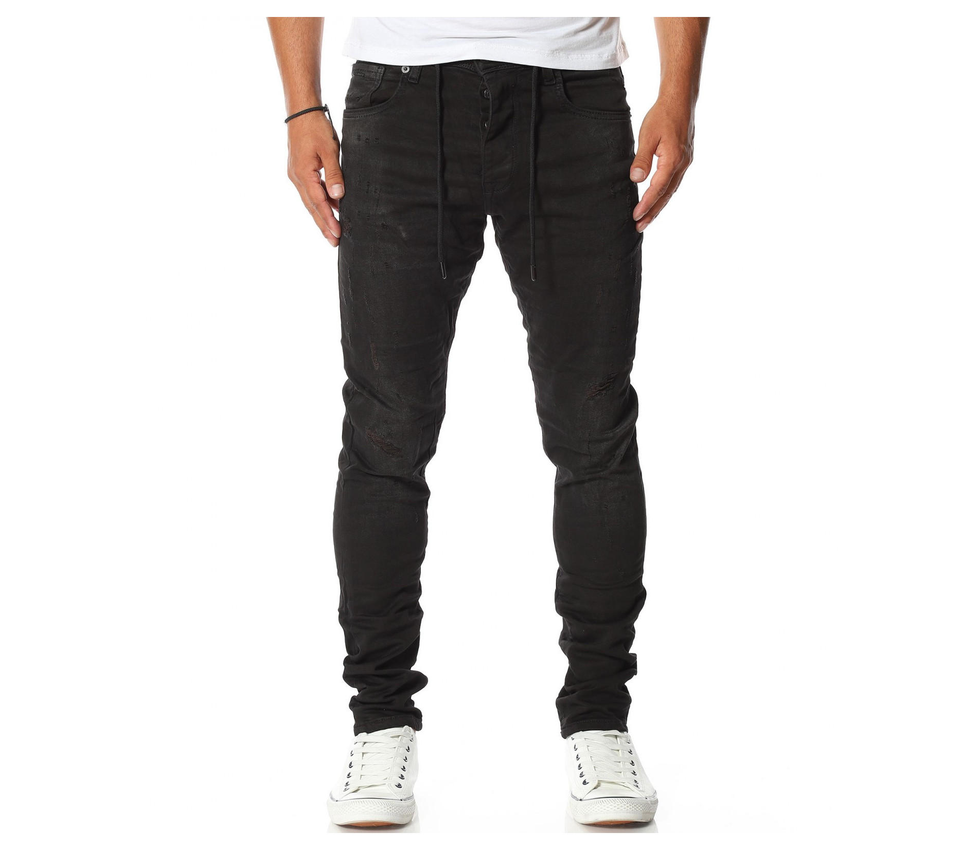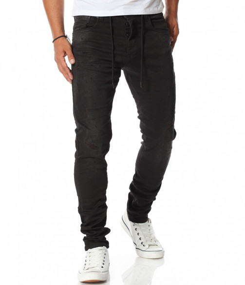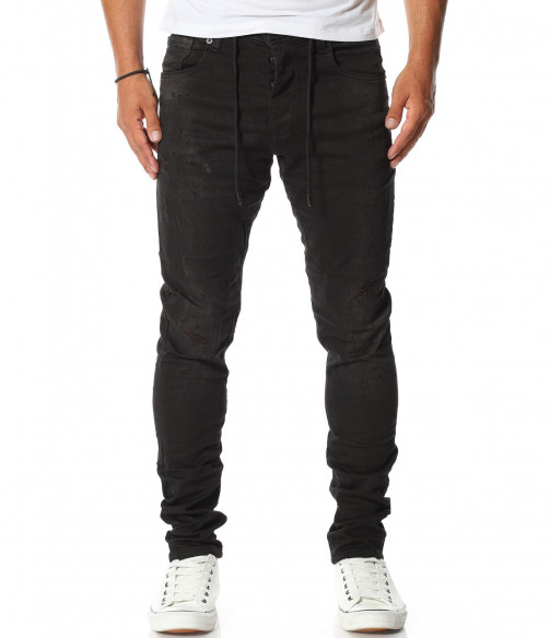 Описание на продукта: Спортно-ежедневен модел мъжки дълги дънки, от новата ни колеция за Есен/Зима 2020г. Създадени с идея за комфорт и перффектен имидж, този модел деним Ви гарантира и двете. Десенът е поверен на класическият черен нюанс, към който е прибравен силно втален силует. Спортния имидж, който е съставна част от този модел деним е завършен от връзки, разположени при колана, които може да изпозлвате с декоративна цел или по предлазначение, за регулиране ширината. Неизменна част от всеки мъжки ежендевен панталон са удобните джобове, а тук те са четири на брой, два в предната и два в задната част. Закопчаването, като последен елемент е ссъставено от едно главно копче при колана и три, по-малки, скрити под дънков маншет. За комбинация може да се доверите на контрастни цветове блузи и обувки, а за финал да добавите сспортен елек в модерен цвят.