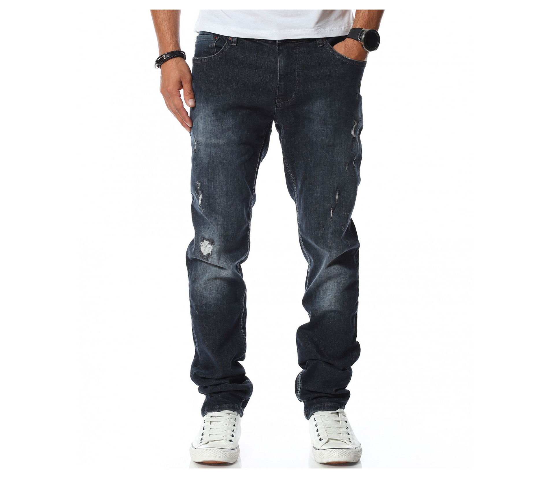 Описание на продукта: За нас е важно да обръщаме специално внимание на всеки стил, особено когато става въпрос за дънки. Като основен наш приоритет са Вашите желания и нужди, а всеки по-често се връщате към онези никога не остаряващи дизайни, или по точно evergreen предложенията. Именно заради това Ви представяме този традиционен модел дънков панталон, който е изграден изцяло от права кройка, която приляга по тялото по възможно най-деликатния начин, добавящ голяма доза кофморт. Този елемент е много важен, независимо дали говорим за ежедневен или офисен имидж. Именно заради това подсигурихме денимът в тъмно син индиго цвят, с малко изсветлен ефект, превръщайки го в подходящ за всеки ден. Финално подчертаваме и двата джоба в предната и задната част, които са запазена марка за този тип дреха.
