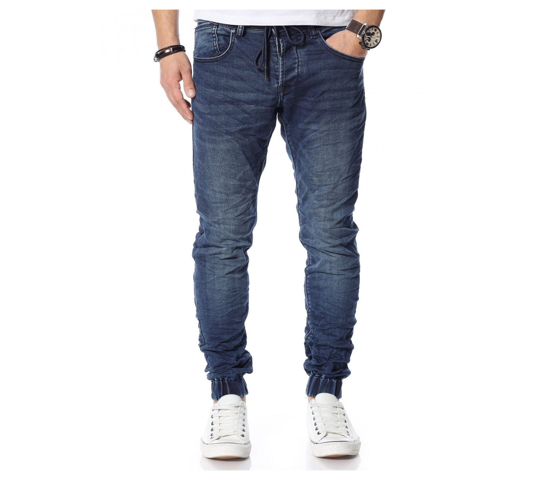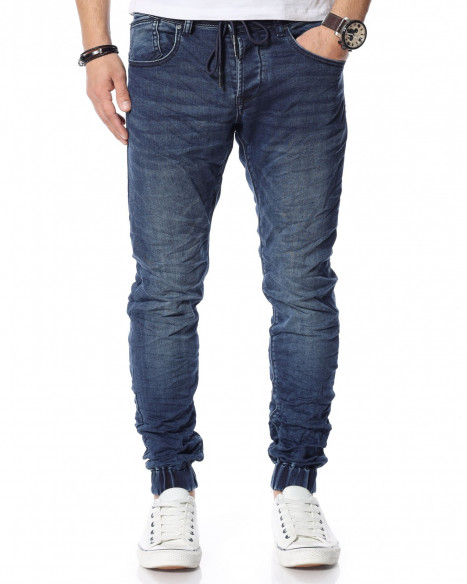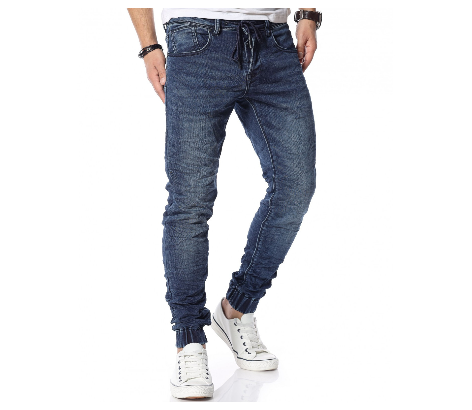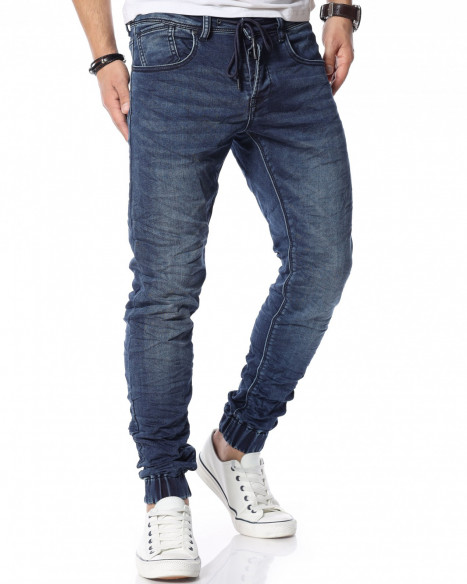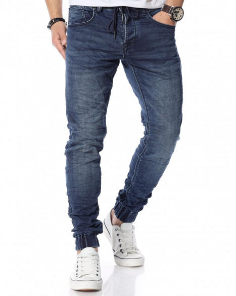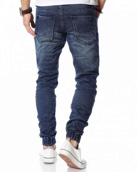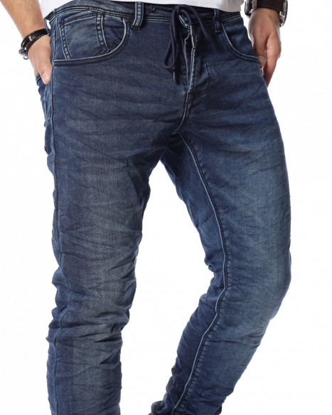 Описание на продукта: Представяме ви новият и свеж модел дънки с ластични крачоли. Много стилен, забележителен и удобен модел, който разполага с връзки на талията, които са добавени като детайл. Кройката приляга идеално на тялото ви и може да направите комбинация с любимите ви дрехи, за да се чувствате комфортно и стилно. Тъмният нюанс ви позволява да комбинирате дънките с най-различни дрехи от вашият гардероб. Моделът е с леко намачкан ефект и разполага с четири класически джоба, съответно два предни и два задни.