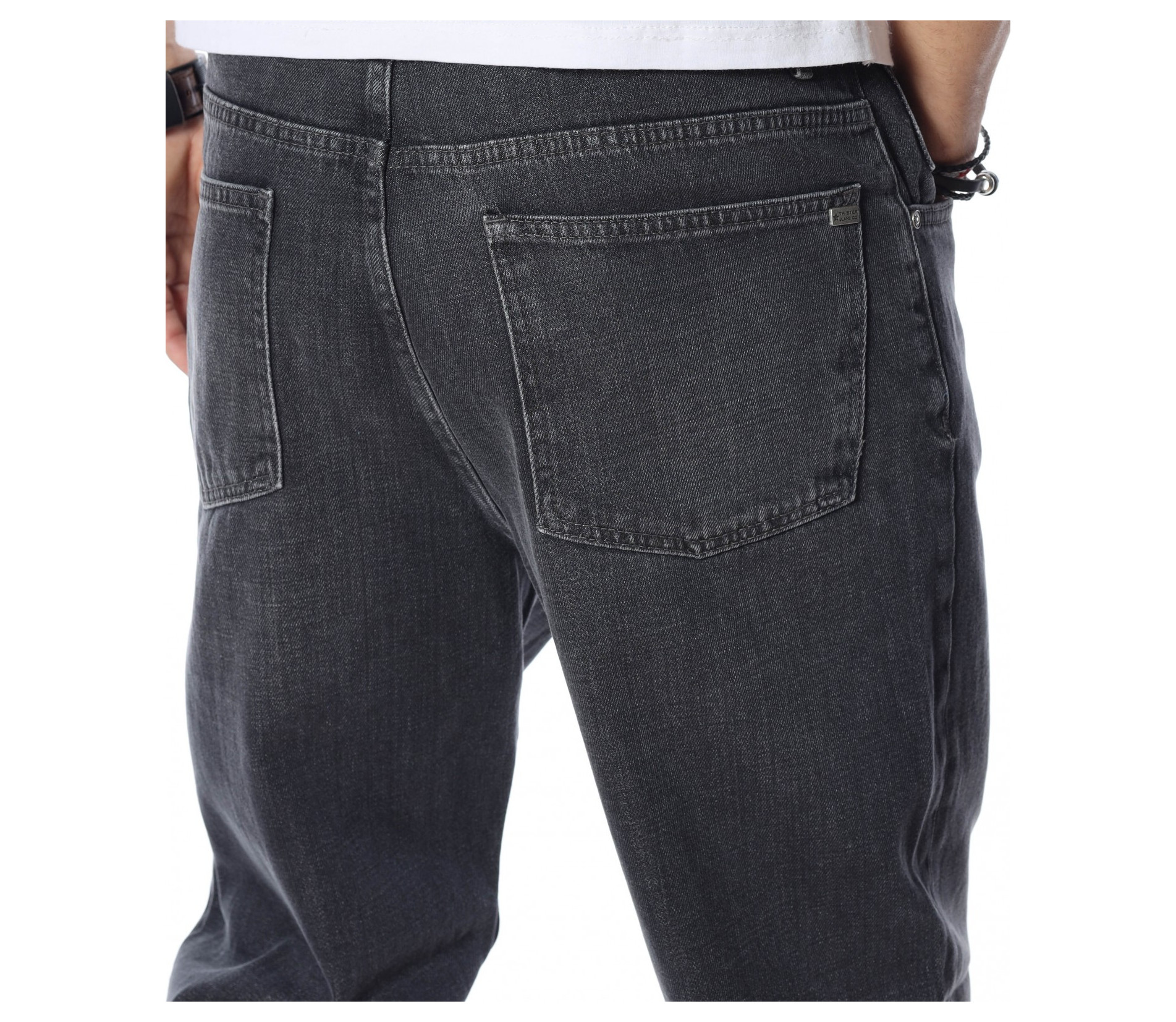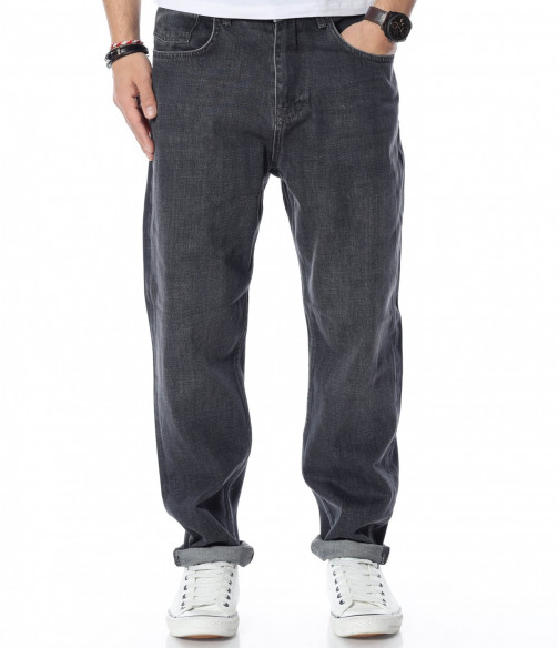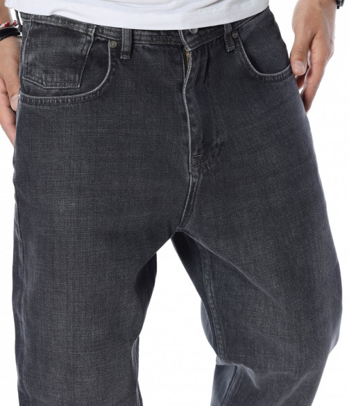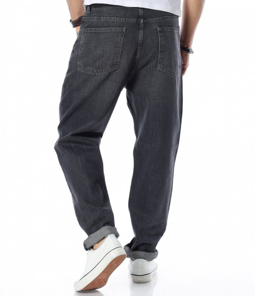 Представяме ви класически модел тъмносиви дънки. Те са напълно изчистени от всякакви декорации, а кройката е достатъчно широка, давайки усещане за свобода на движение. Комбинацията от памук и еластант прави моделът изключително комфортен, удобен и устойчив. Както в предта, така и в задната част откриваме по два, стандартни джоба. Те са предпочитани, защото перфектно се комбинират с кецове и тениска.