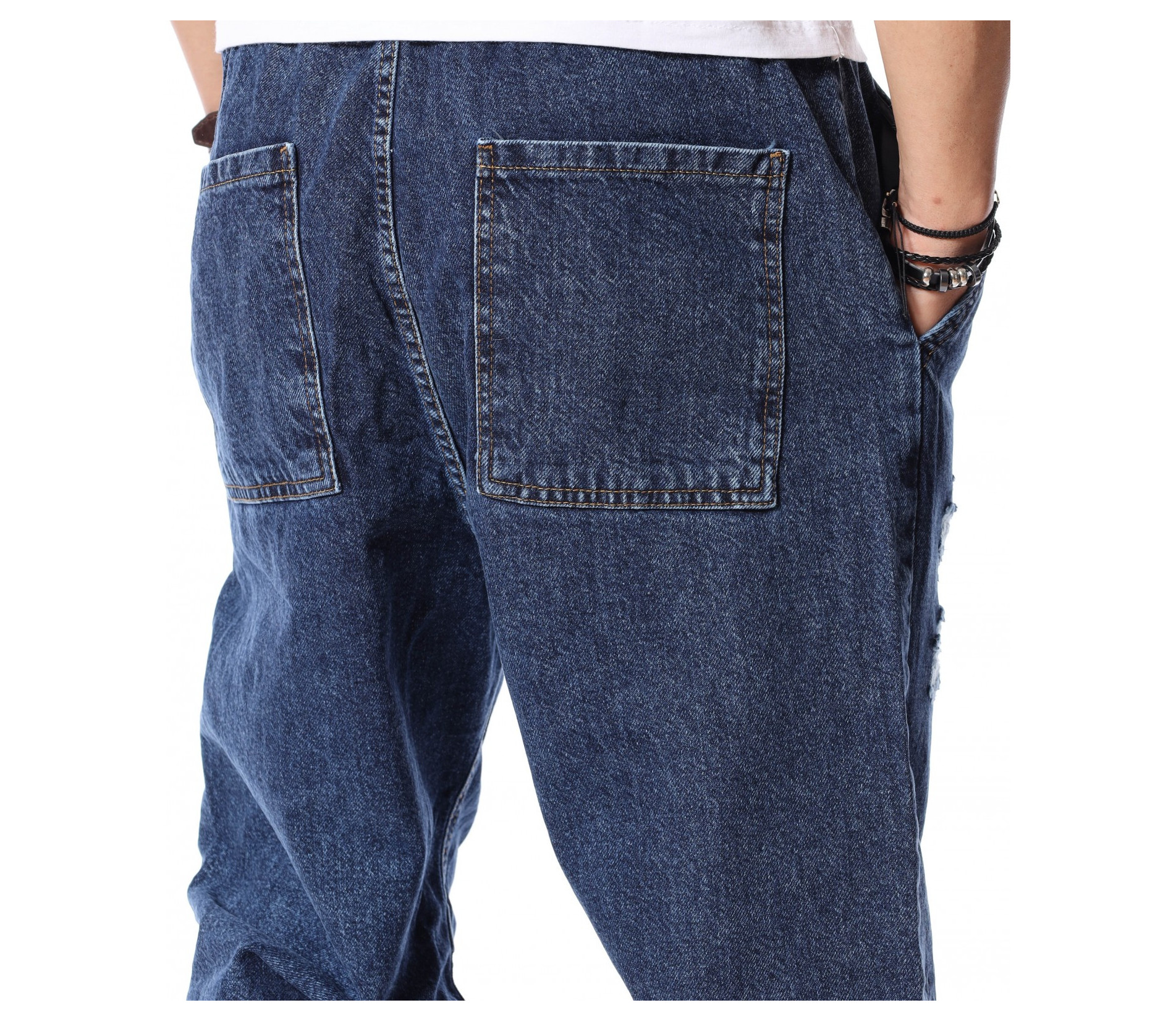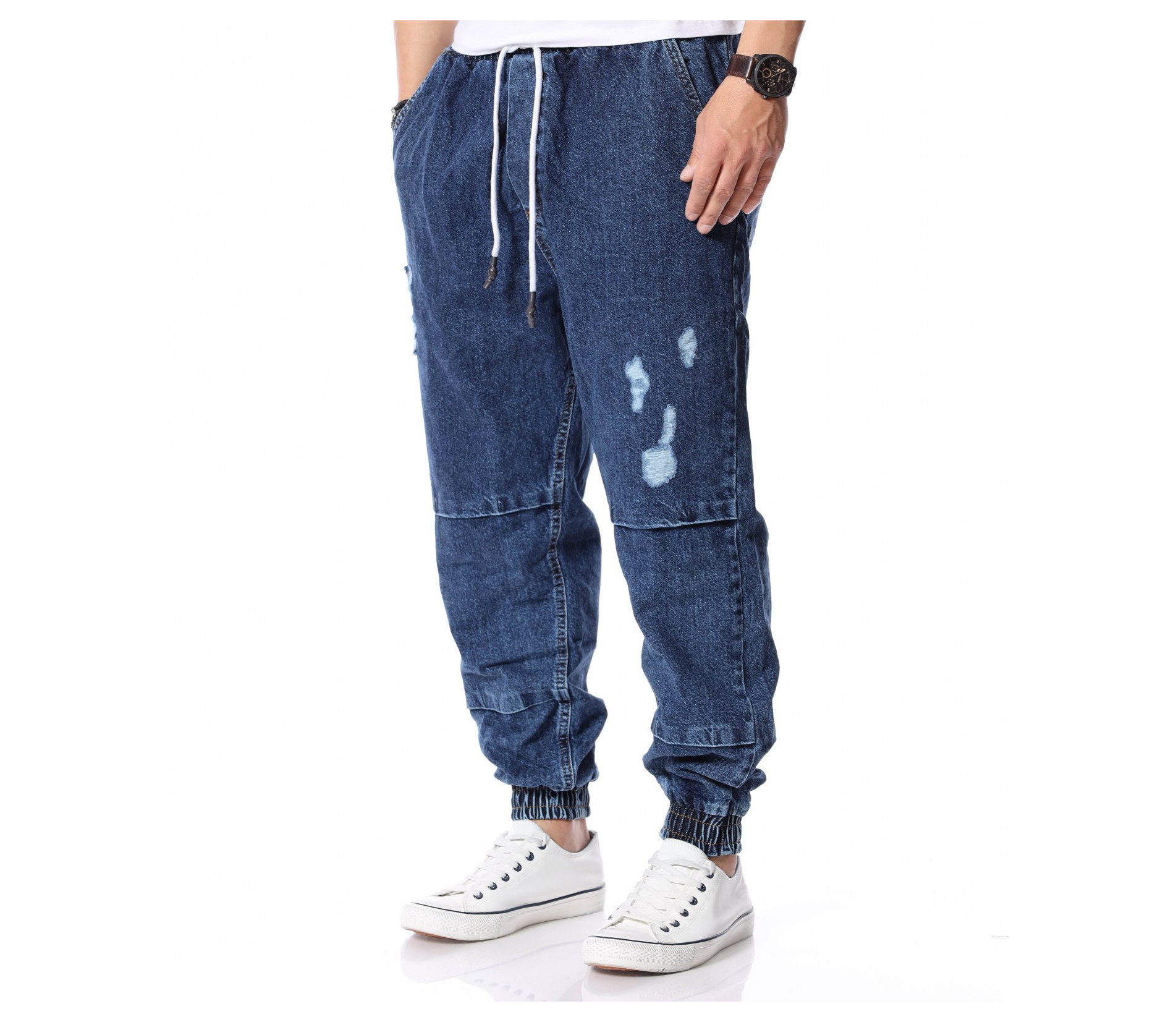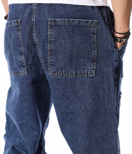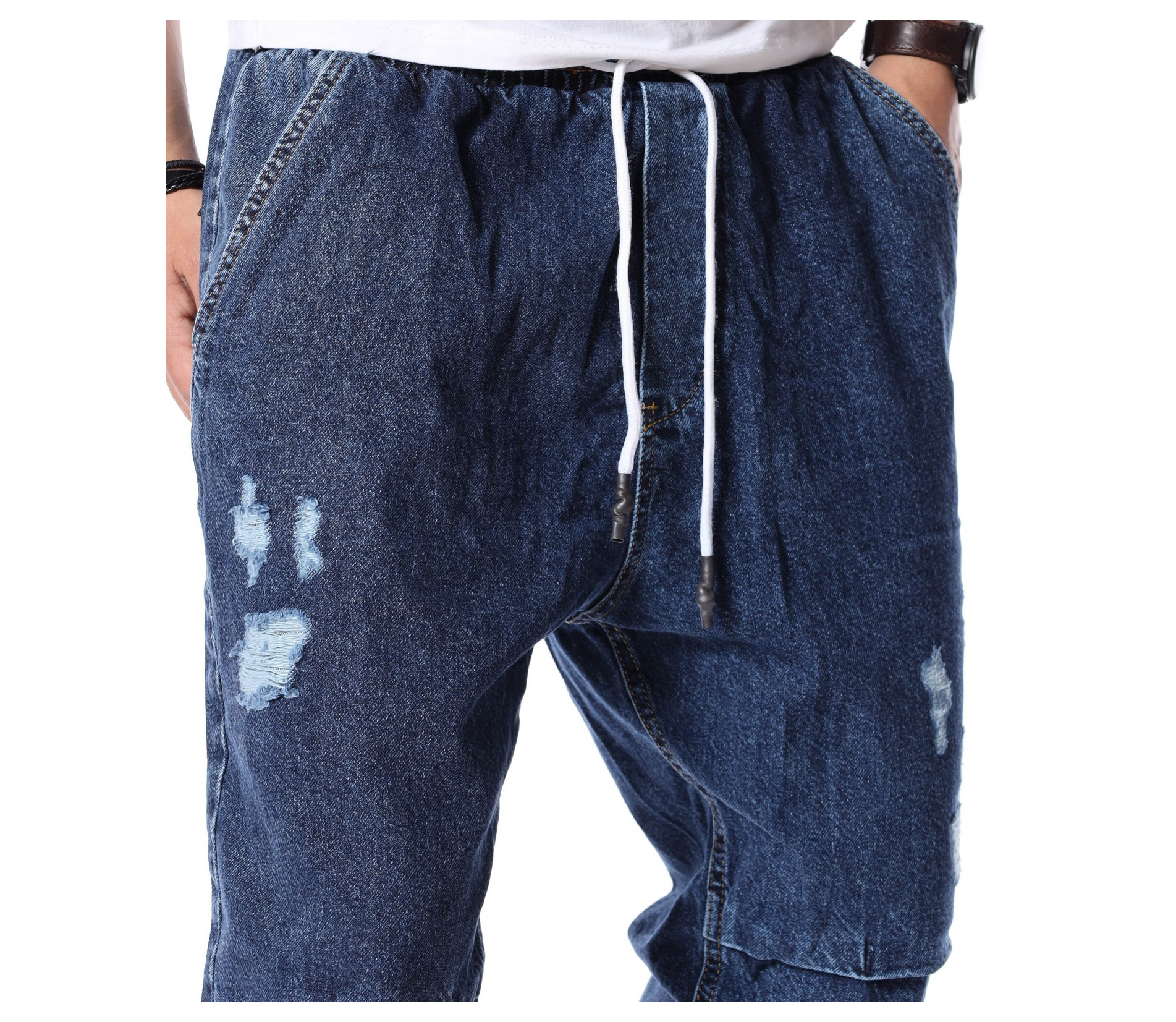 Ако все още не сте актуализирали ваият гардероб, сме ви подготвили - тъмносини мъжки. В предната част са разположени два стандартни джоба, а в задната откриваме предпочитаните, дълбоки джобове. На талията са разположени връзки с цветни накрайници, за да може да регулирате ширината по-лесно, а по цялата дължина са позиционирани накъсани мотиви с бели нишки. Кройката е леко широка и позволява достатъчна свобода на движение. Благодарение на меката материя вие ще се чувствате комфортно и удобно, освен че ще изглеждате добре, а все пак това е целта на дрехите. Комбинирайте с подходяща тениска и кецове за завършена визия.