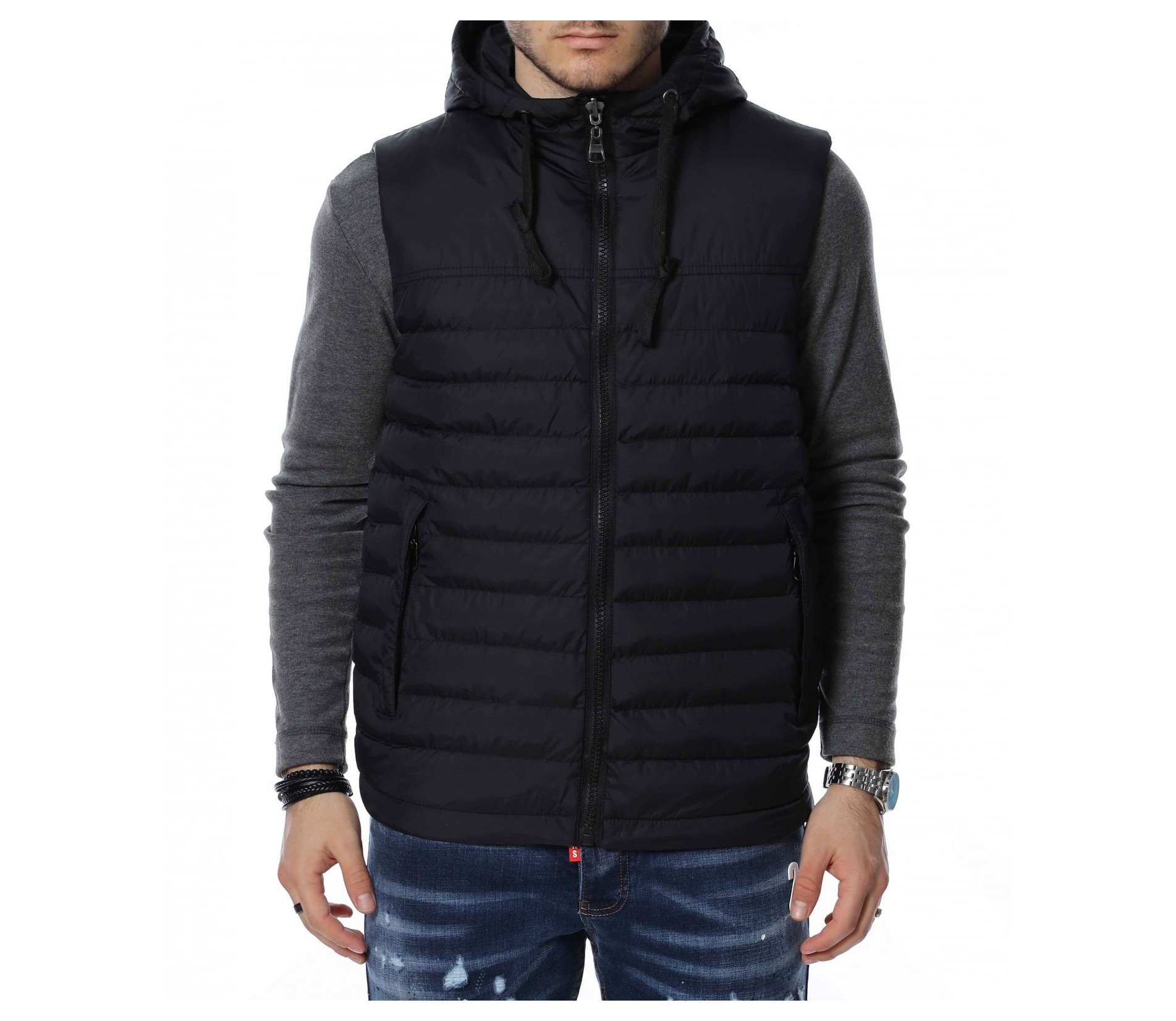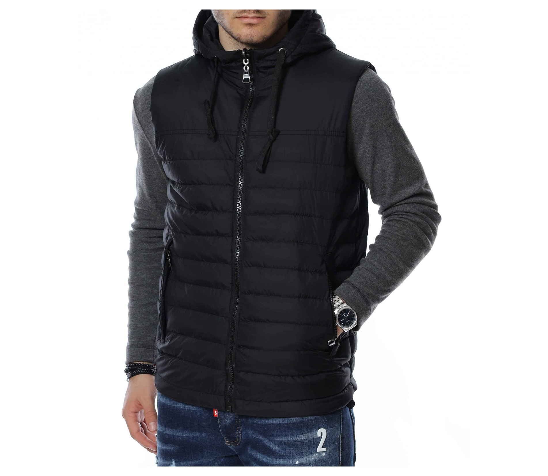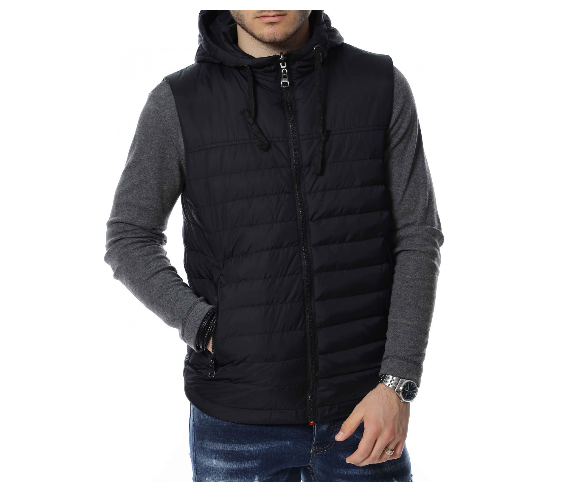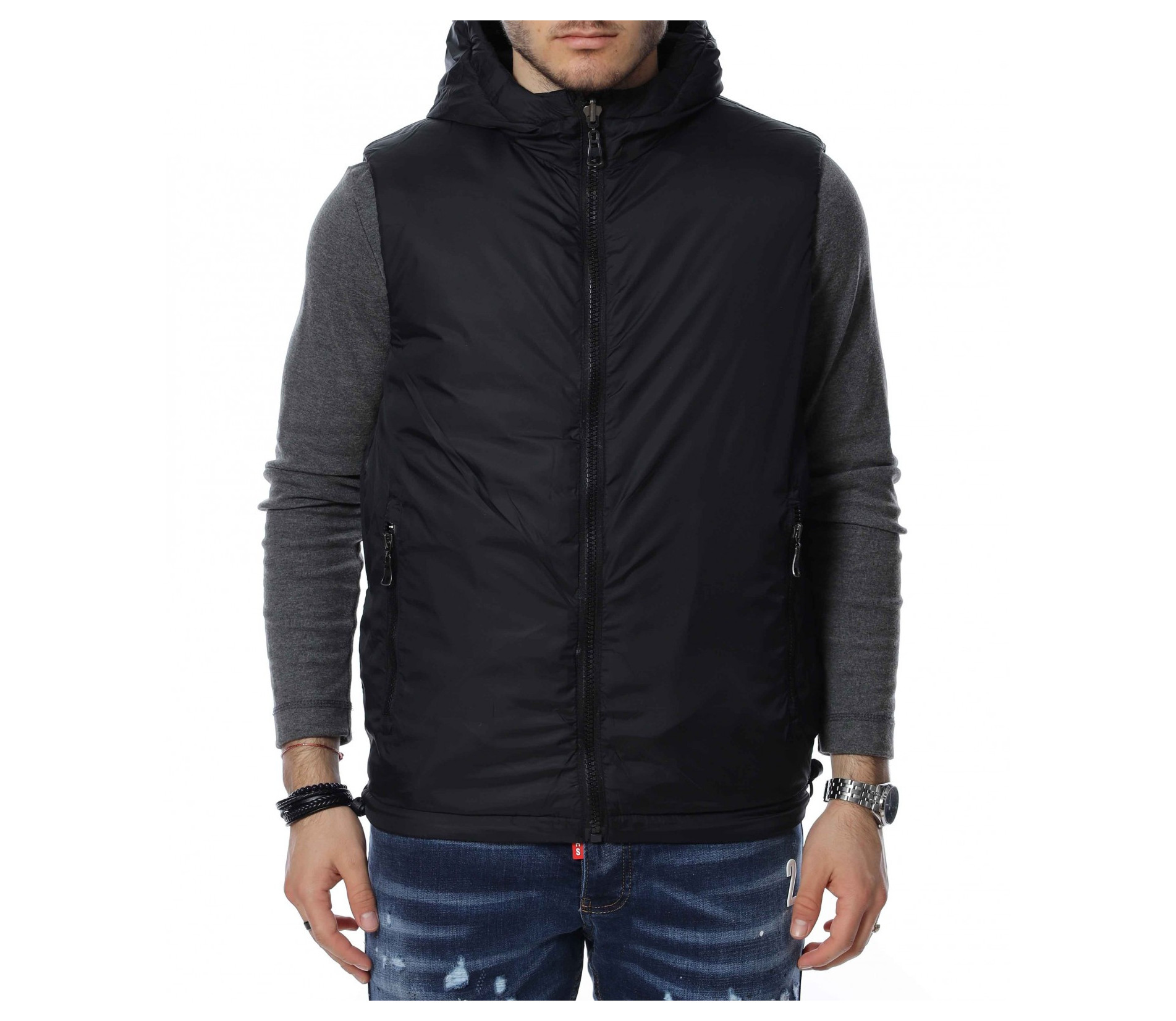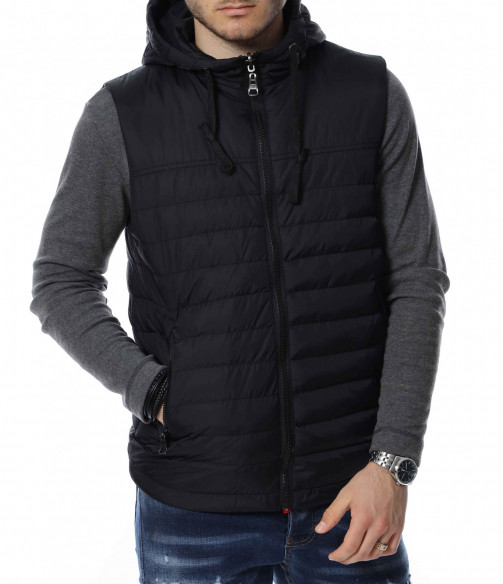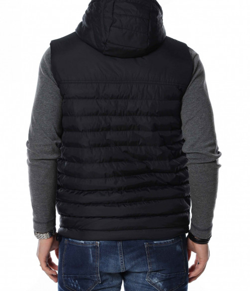 ОПИСАНИЕ НА ПРОДУКТА: Изключителен модел мъжка двулицева спортна грейка, изградена от атрактивен двуцветен контраст. В долната част откриваме два дълбоки джоба, закопчаващи се от масивни черни ципове. Към врата се образува висока яка, която преминава в качулка. За основно закопчаване е подбран вертикален черен цип, който слага и крайния щрих върху връхната дреха. Смело създай своя аутфит със свеж и приятен дизайн мъжка грейка в комбинация с любимите ти дънки и тениски.