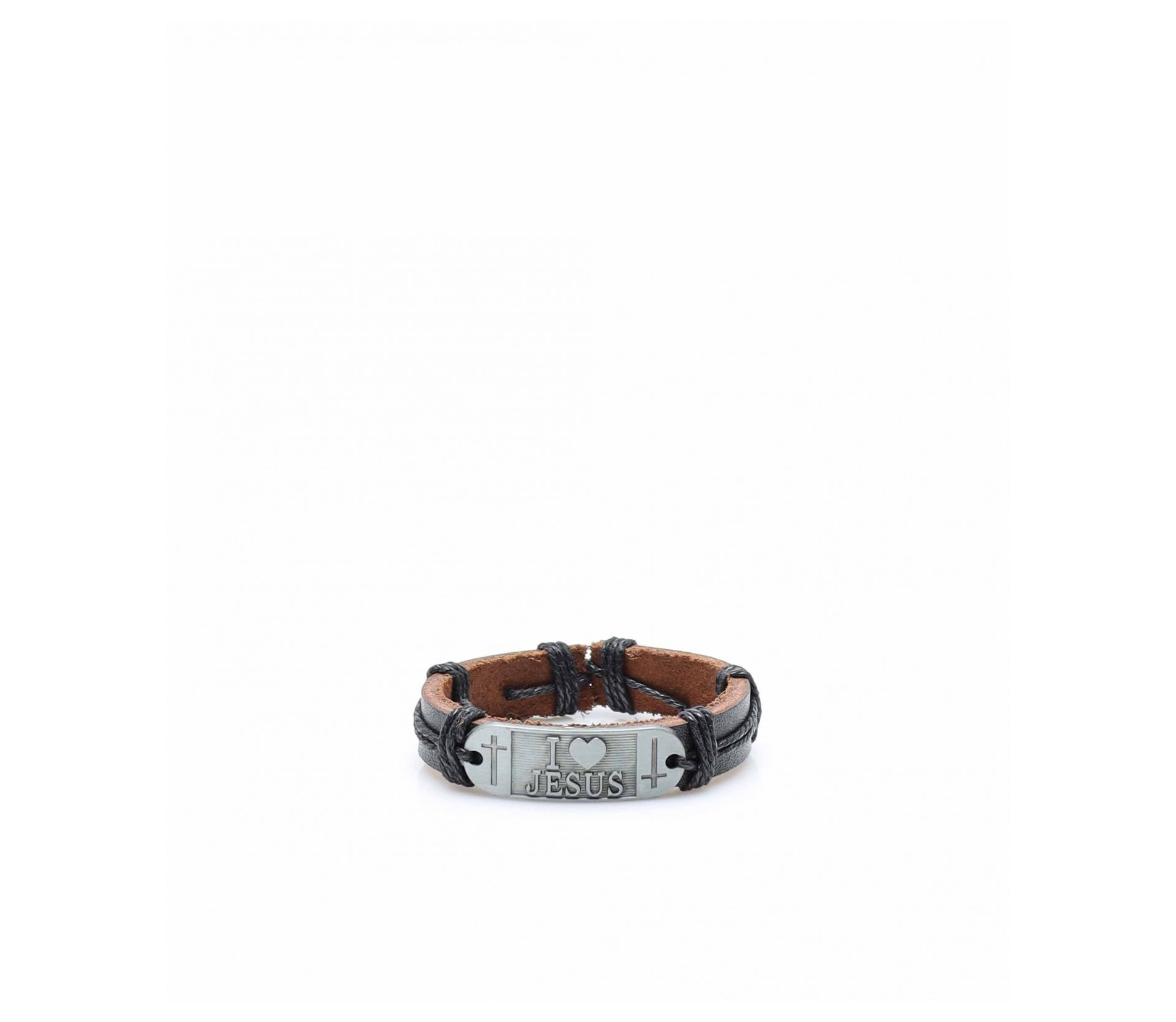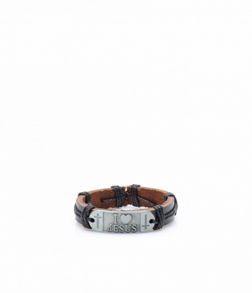 ОПИСАНИЕ НА ПРОДУКТА: Тъй като обичаме предизвикателствата, Ви представяме един аксесоар, който впечатлява изтънчения вкус. Мъжка кожена гривна в черен цвят, декорирана с впечатляващ метален мотив. Този модел е компилация от сребриста с надпис I love Jesus и ефектно черно въже, наситен с качество и разбира се разпознаваемост. Излезте от рамката на традиционното и си позволете да се обличате така както желаете, без притеснение, защото мъжкия имидж вече има нов облик и той е уникален за всеки по отделно. Този аксесоар пасва идеално на всеки имидж и едновременно с това разчупва визията ви.