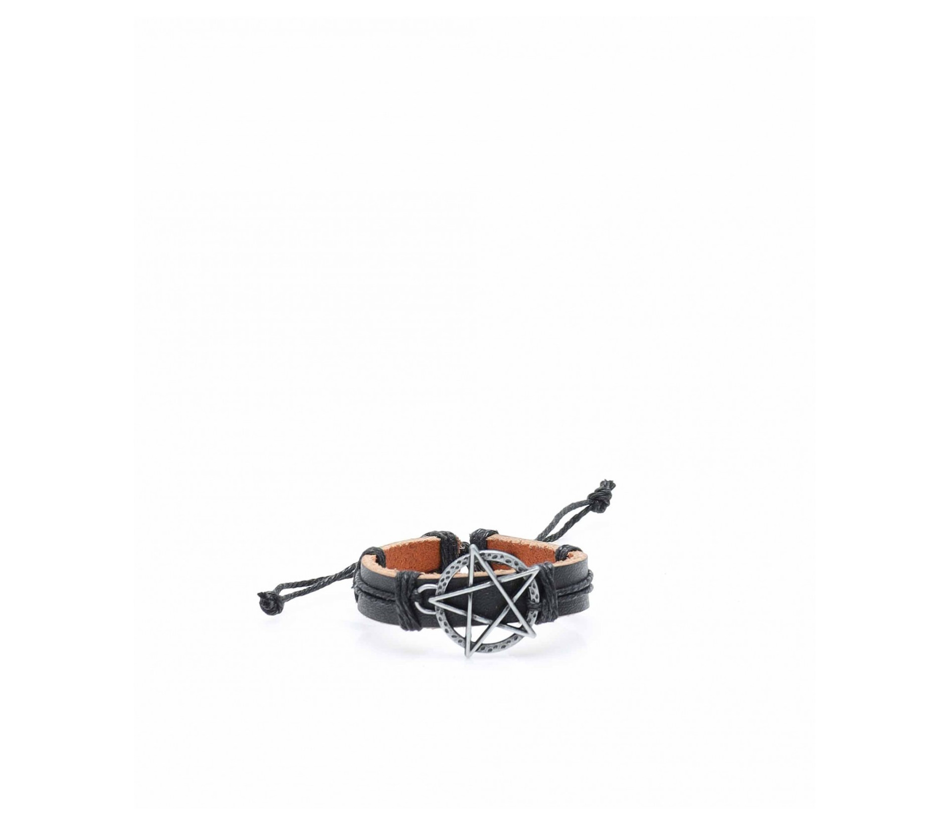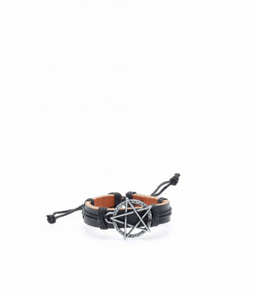 ОПИСАНИЕ НА ПРОДУКТА: Тъй като обичаме предизвикателствата, Ви представяме един аксесоар, който впечатлява изтънчения вкус. Мъжка кожена гривна в черен цвят, декорирана с впечатляващ метален мотив. Този модел е компилация от сребриста емблема пентаграм и ефектно черно въже, наситен с качество и разбира се разпознаваемост. Излезте от рамката на традиционното и си позволете да се обличате така както желаете, без притеснение, защото мъжкия имидж вече има нов облик и той е уникален за всеки по отделно. Този аксесоар пасва идеално на всеки имидж и едновременно с това разчупва визията ви.