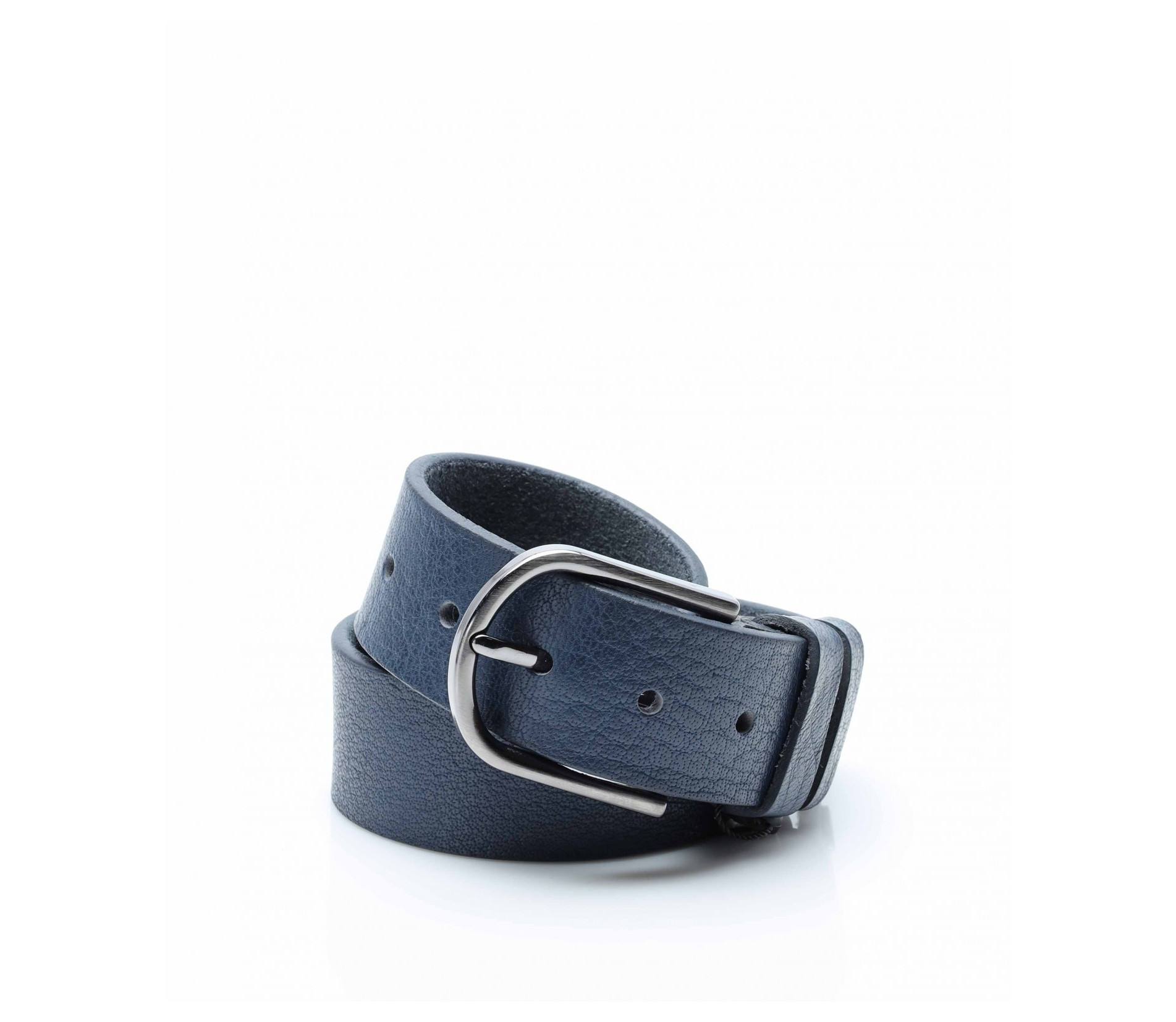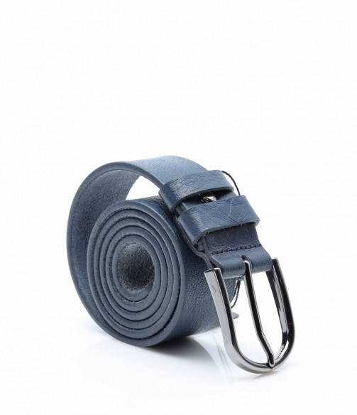 Син мъжки колан от естествена кожа. Стилен мъжки тъмносин колан, който е напълно изчистен от капси, което го превръща в лесно съчетание с мъжки дънки и панталони. Катарамата е метална с леко овални краища. След катарамата има две гайки за лесно и удовно закрепване. Този аксесоар е изработен от 100% натурална кожа.Чудесно съчетание като аксесоар за всеки мъж. Комбинирайте смело с чифт стилни обувки и спортна мъжка риза, получавате куул излъчването към което се стреми всеки истински мъж.