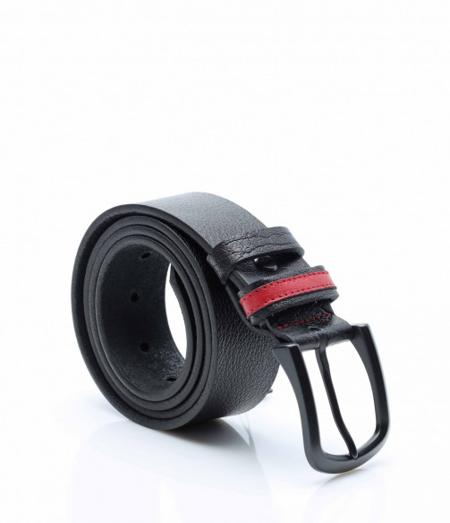 Мъжки колан от естествена кожа. Коланът е аксесоар, който може с лекота да промени, подобри и разнообрази стайлингът Ви, ако бъде правилно подбран. За да не се колебаете при избора, ние Ви предлагаме един класически модел, изработен от черна изчистена кожа, съчетан перфектно със зелена или жълта гайка. Катарамата му е изградена от светло сив метал. Върху първата кожена гайка е разположено и голямо лого с името на бранда, който успява да внесе доза атрактивност. Заложете на качествен аксесоар, за да бъде още по зашеметяващ имиджа Ви през всеки сезон.