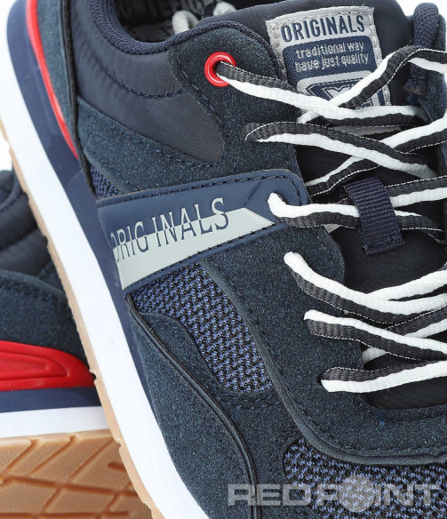 Описание на продукта: Класически спортни маратонки, които са изградени по последните модни тенденции. Леко повдигнатата подметка придава една стилна и много актуална линия. Основната част е поверена на тъмно синият нюанс, семпло акцентиран с бели и червени ленти, симетрично разположени по двете обувки. Разбира се, основния елемент при обувките, това са връзките. Тук те са подбрани в цветна компилация, побираща всички нюанси по обувката, централизирани в едно. Освен модерен и силно забележим дизайн, този модел ежедневни обувки са изградени, така че да доставят необходимия комфорт на крака. Подходящи както за спортен имидж, така и за ежедневен в съчетание с дънки и тишърт, маратонките се превръщат в перфектното допълнение към новия Ви и подобрен имидж. Заложете на класиката в жанра, която гарантирано ще Ви отнесе в света на модните тенденции и водещите мотиви и дизайни.