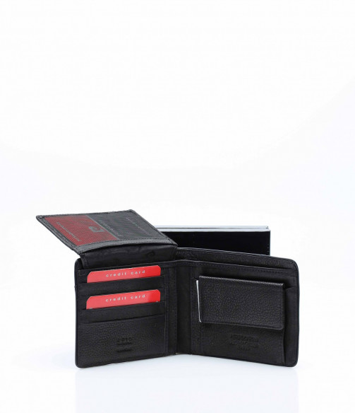 ОПИСАНИЕ НА ПРОДУКТА: За завършен класен мъжки сет е необходимо да се обърне внимание на детайлите в него. Именно заради това Ви представяме един изключително стилен модел мъжко кожено портмоне. Външната му част е изработена в семпъл, но прецизен дизайн, който включва изчистена основа, която е декорирана с тънка лента, която го обгръща по края. Вътрешната част комбинира черна и червена кожа, които в съчетание създава този перфектен силует на портмонето. За да задоволи комфорта Ви то разполага с няколко прегради за документи и банкноти и една за монети. Всички тези елемент са допълнени към стилна кутия, която го прави напълно подходящ при избора на практичен, стилен и оригинален подарък.