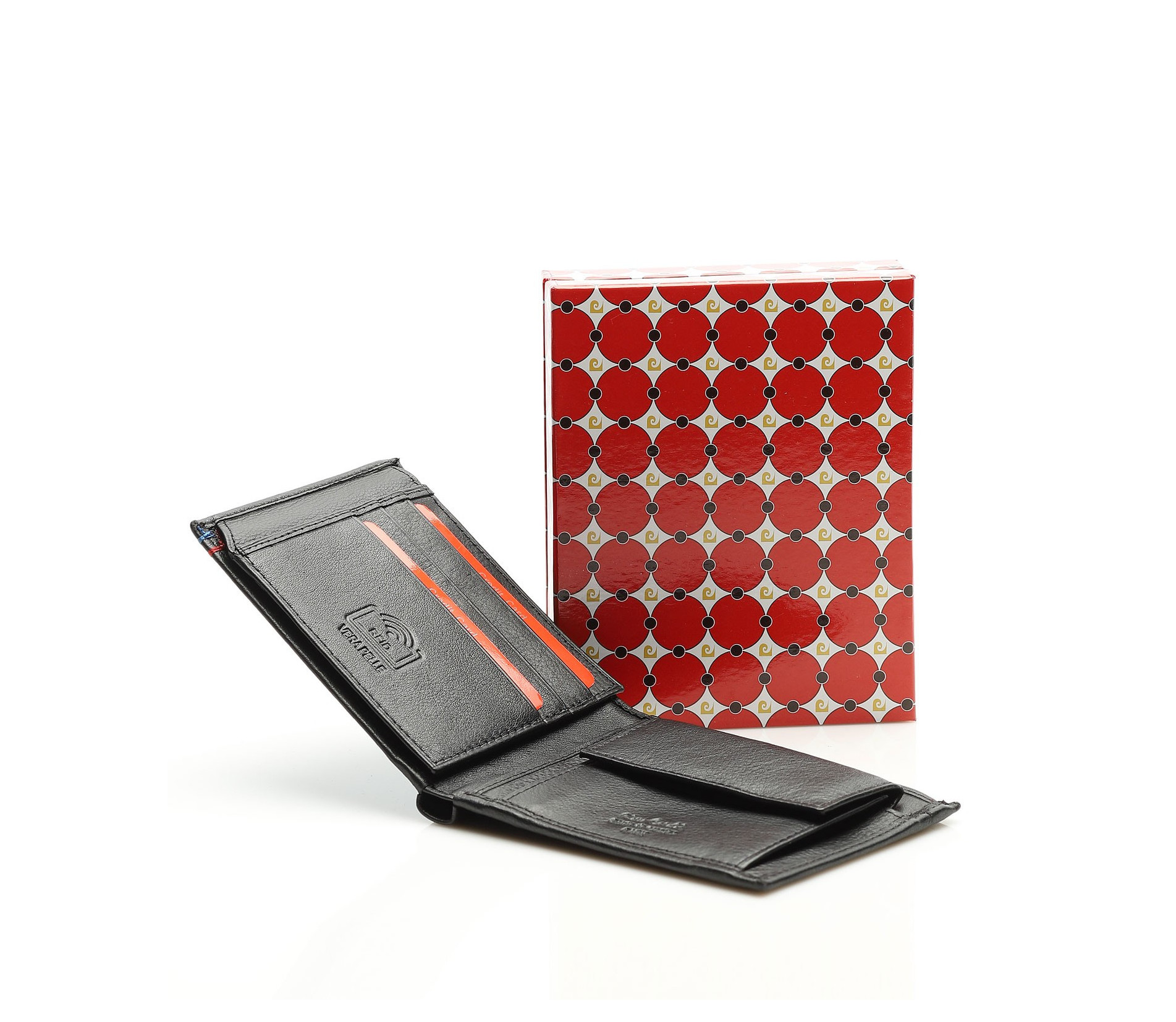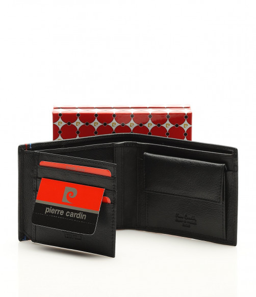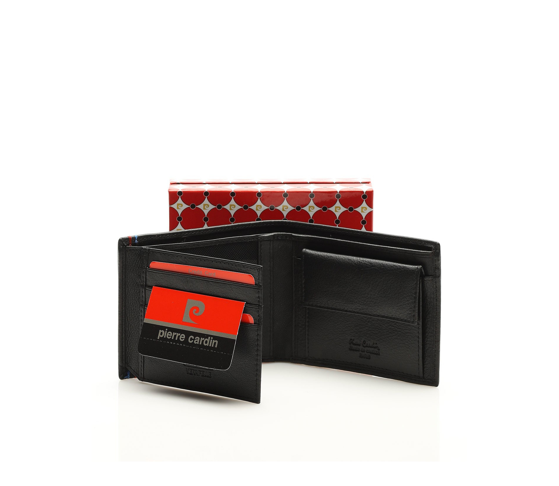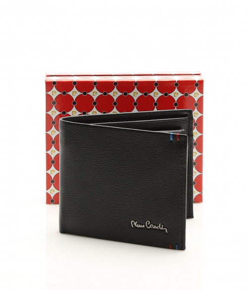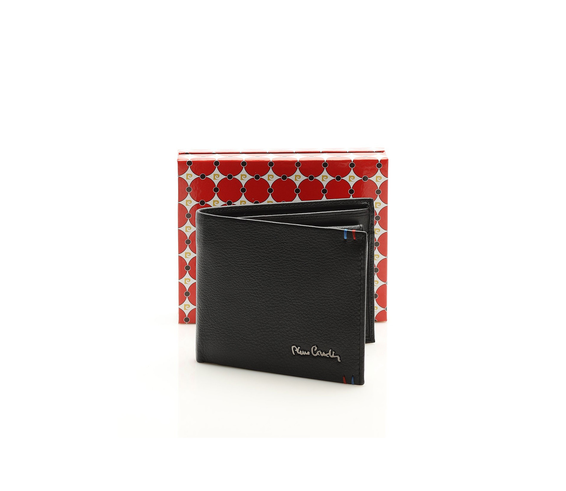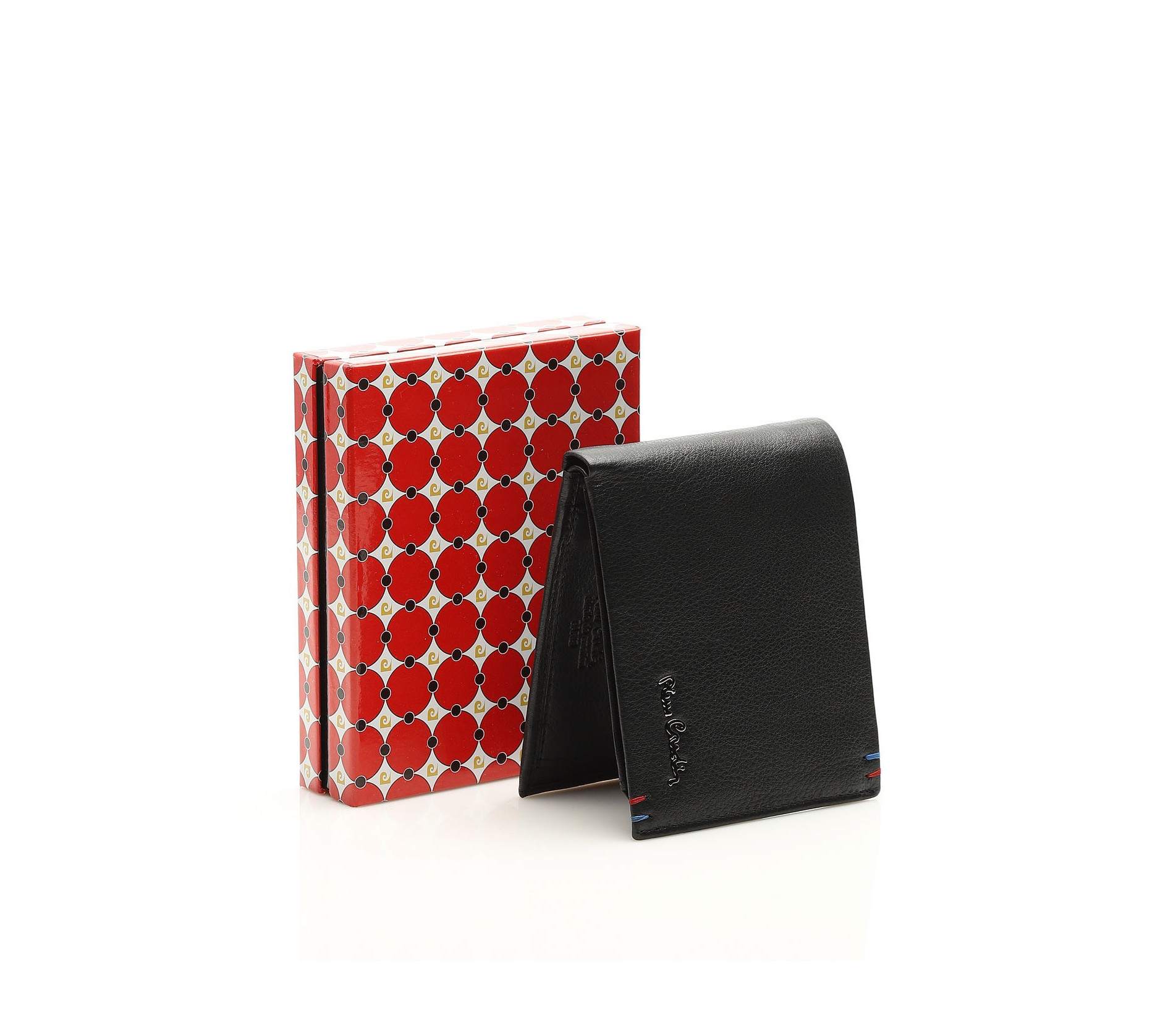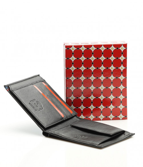 ОПИСАНИЕ НА ПРОДУКТА: За завършен класен мъжки сет е необходимо да се обърне внимание на детайлите в него. Именно заради това Ви представяме един изключително стилен модел мъжко кожено портмоне в черен цвят. Външната му част е изработена в семпъл, но прецизен дизайн, който включва изчистена основа и червен и син декоративни шева в горния ъгъл. За да задоволи комфорта Ви то разполага с няколко прегради за документи и банкноти и една за монети. Всички тези елемент са допълнени към стилна кутия, която го прави напълно подходящ при избора на практичен, стилен и оригинален подарък.