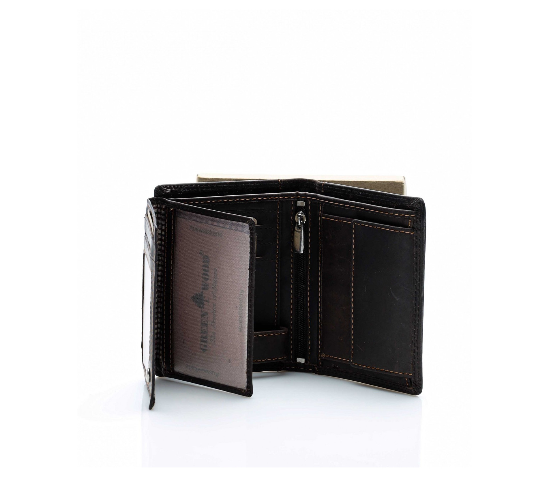 Класен кожен портфейл 13722 - Тъмно кафяв