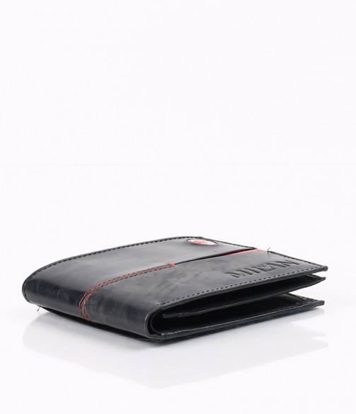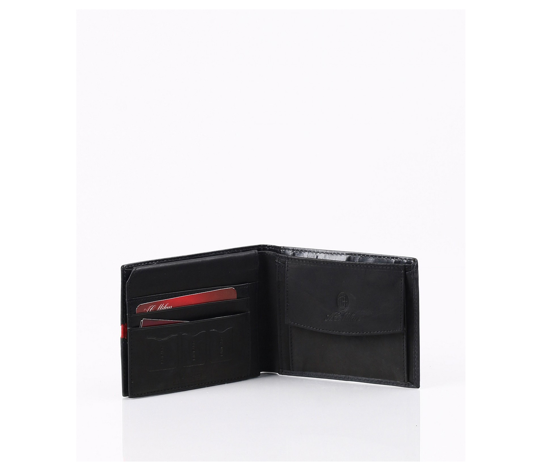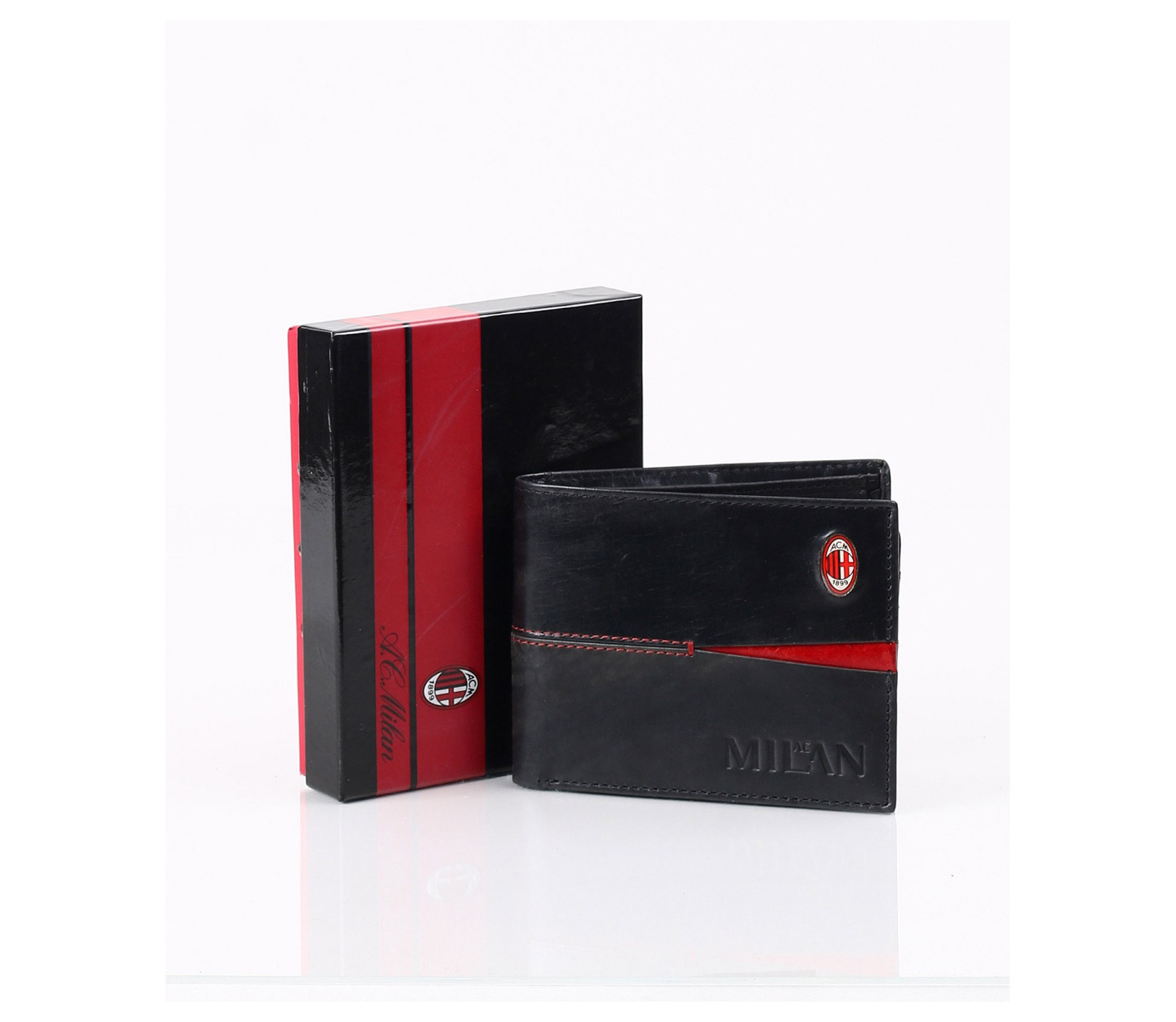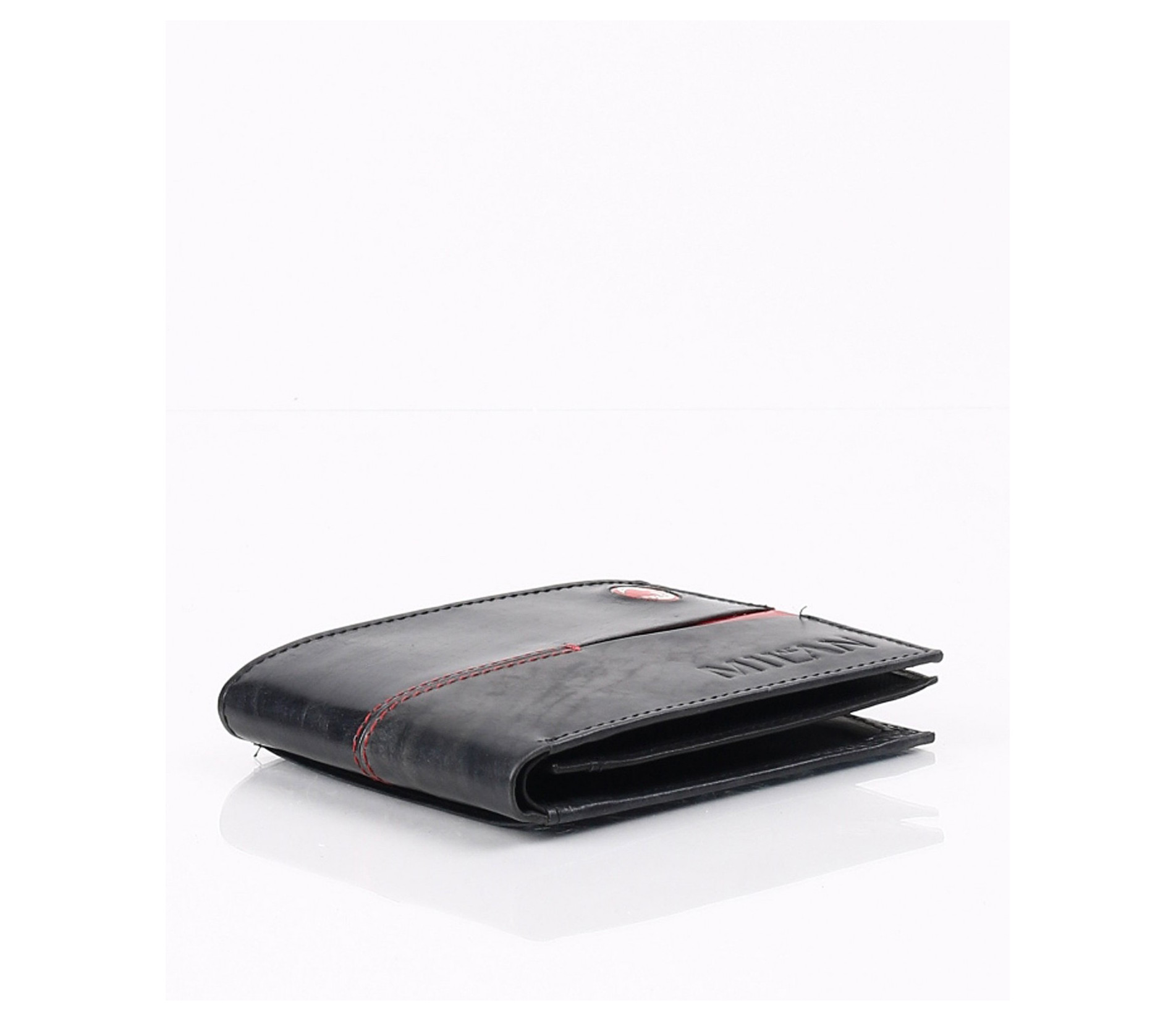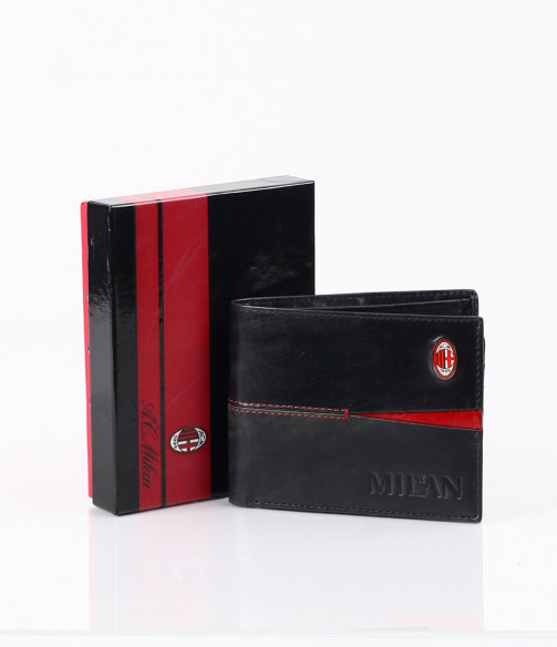 Описание на продукта: Ето и предложение за привържениците на футбола и по специално италианския отбор Милан.Стилно портмоне с интересно съчетание на цветовете черно/червено. Ненатрапчиво са изобразени логото на марката-като емблема и името на отбора. В продължение на акцентирания червен разрез, са и шевовете допринасящи допълнително за стилния контраст.