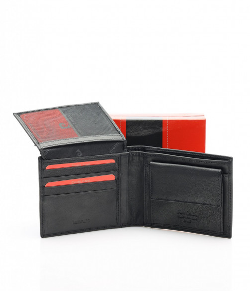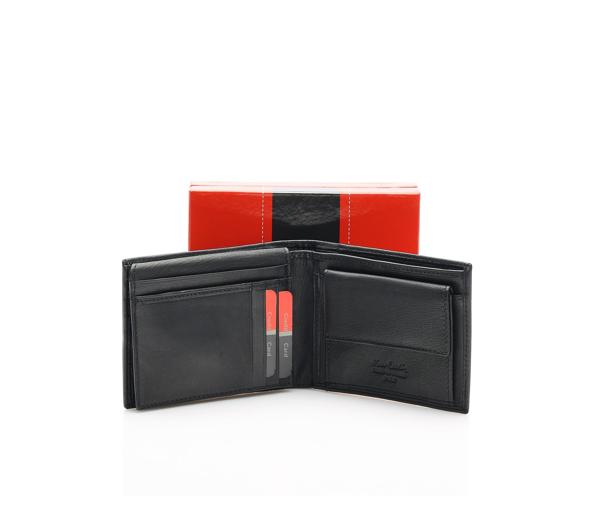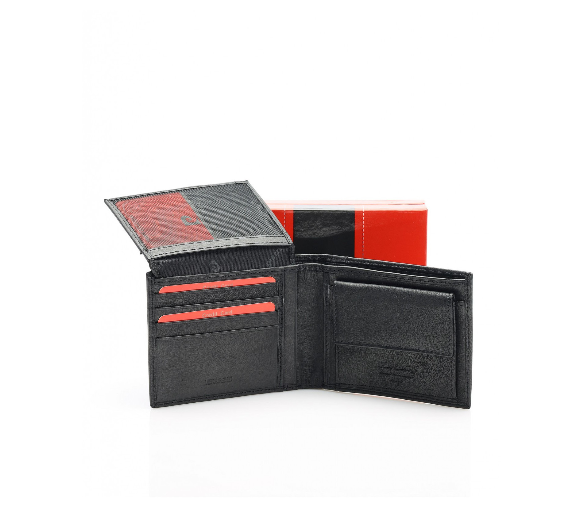 Описание на продукта: Екстравагантността на един аксесоар не се крие в прекомерната декорация, а в един елемент, който може да преобърне целия Ви имидж. Точно такъв е и този модел. Цялата му външна част е изпъстрена в тъмен нюанс, който предлагаме в черен цвят, гарантирано привлича всеки поглед. Дребното метално лого в основата е малко допълнение към ефектния вид. Вътрешността му е разграфена в няколко прегради за банкноти, прозорчета за документи и разбира се един моментник. Излезте от рамката и заложете на нещо запомнящо и впечатляващо, облечено в гаранирано качество.