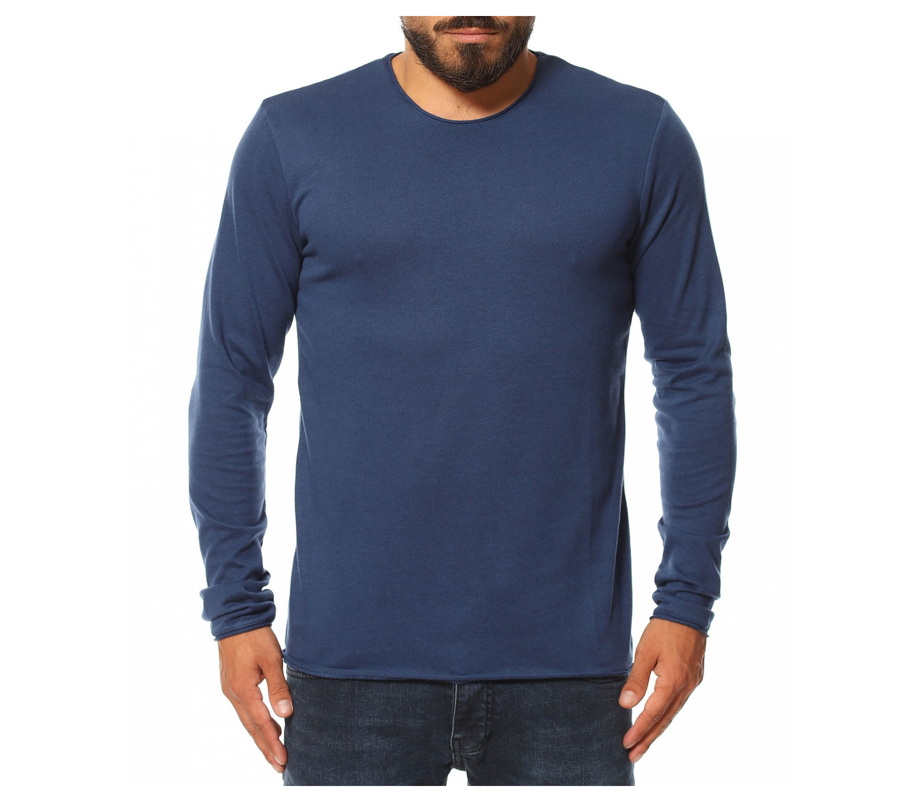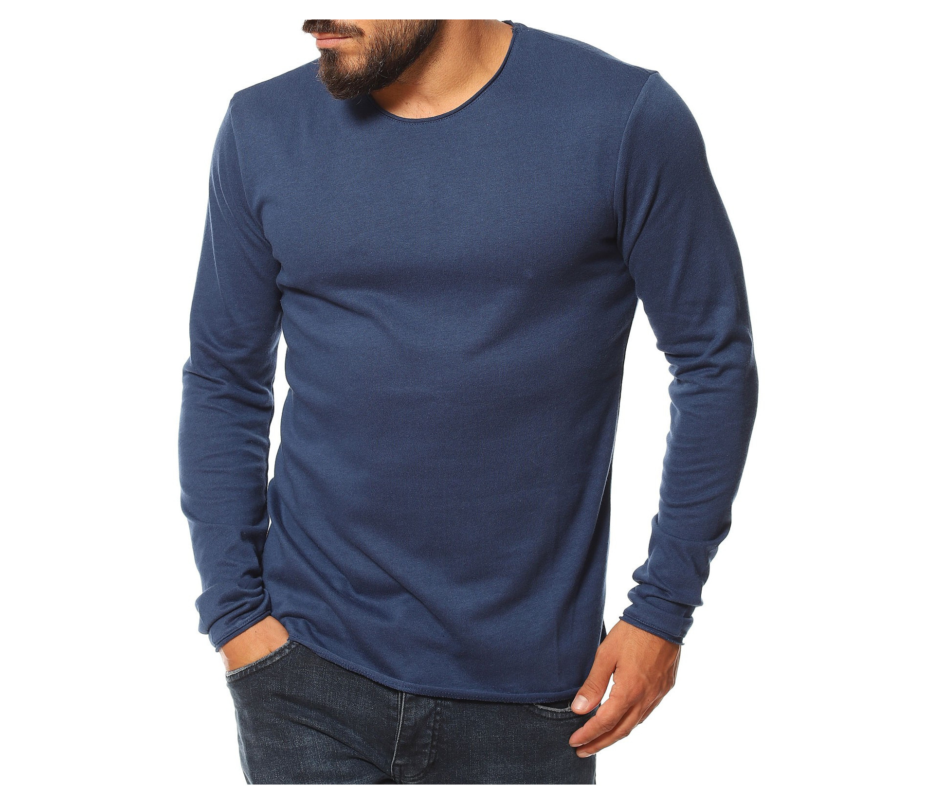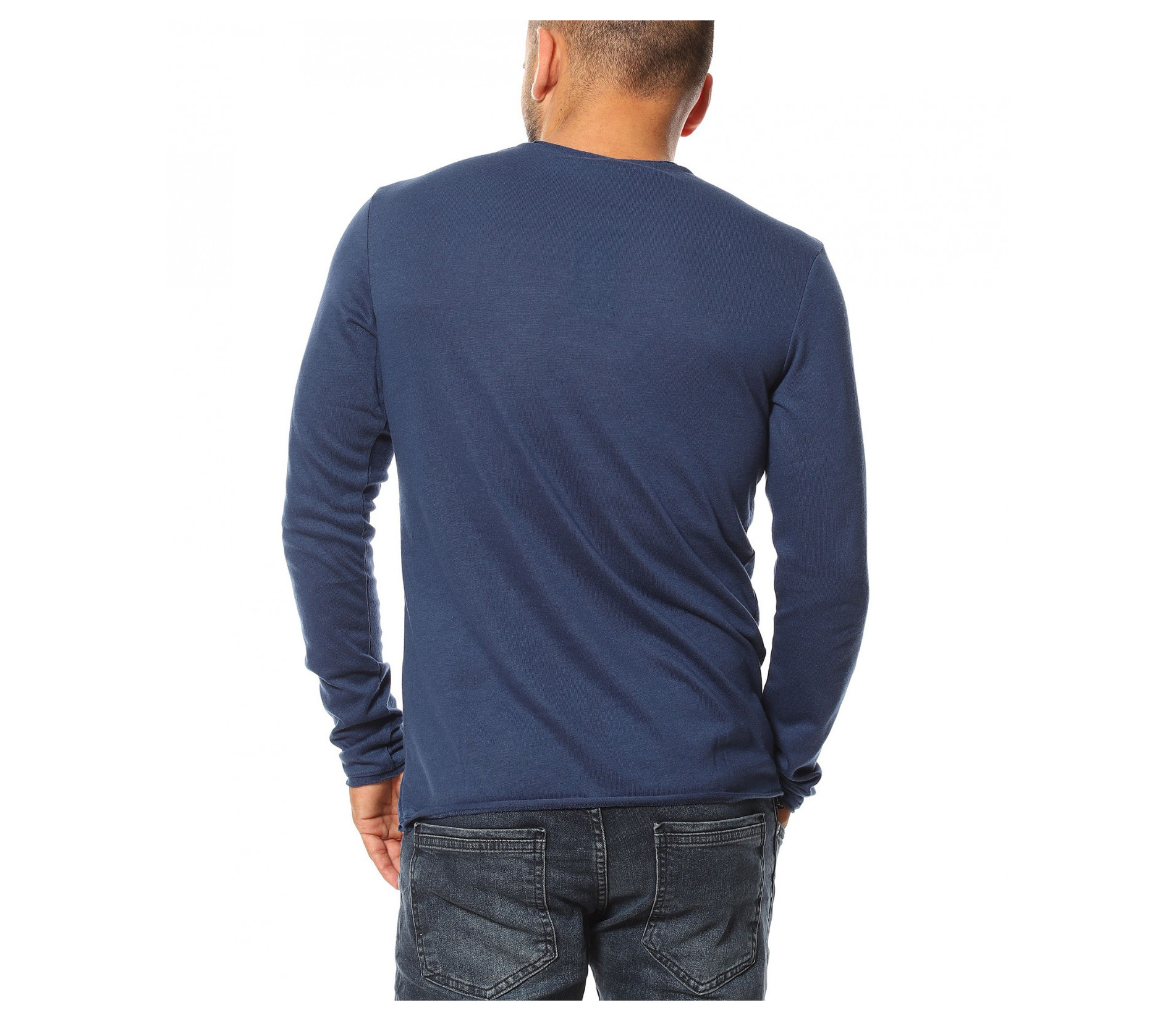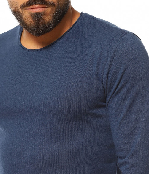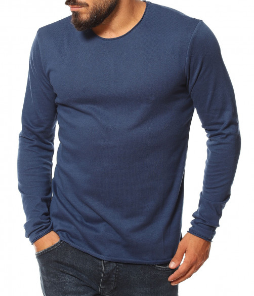 Пуловер от фино плетиво 13132 - Син