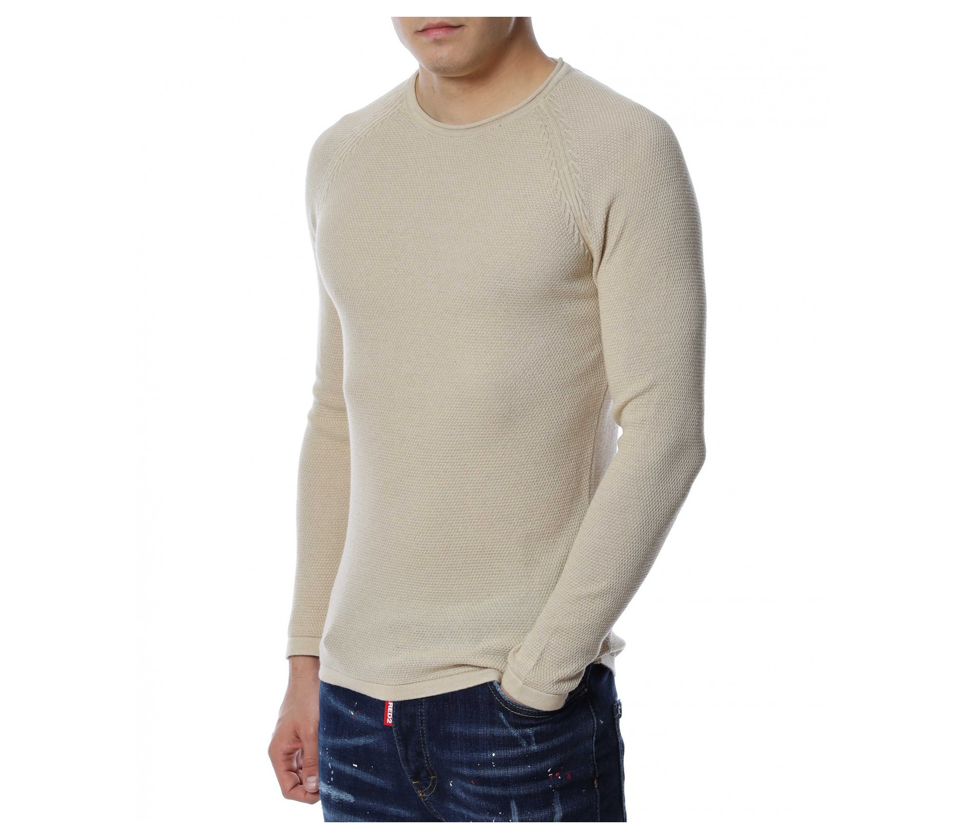 Мъжки, плетен пуловер от тънка плетка с вталена кройка. Дизайнът е напълно изчистен от декорации и елементи, напълно подходящ за феновете на класическите модели. Деколтето е овално, а меката материя осигурява на тялото незаменим коомфорт. Дължината покрива колана, а за завършен вид на дрехата, при ръкавите има небрежни маншети. Комбинирайте с кецове и дънки.
