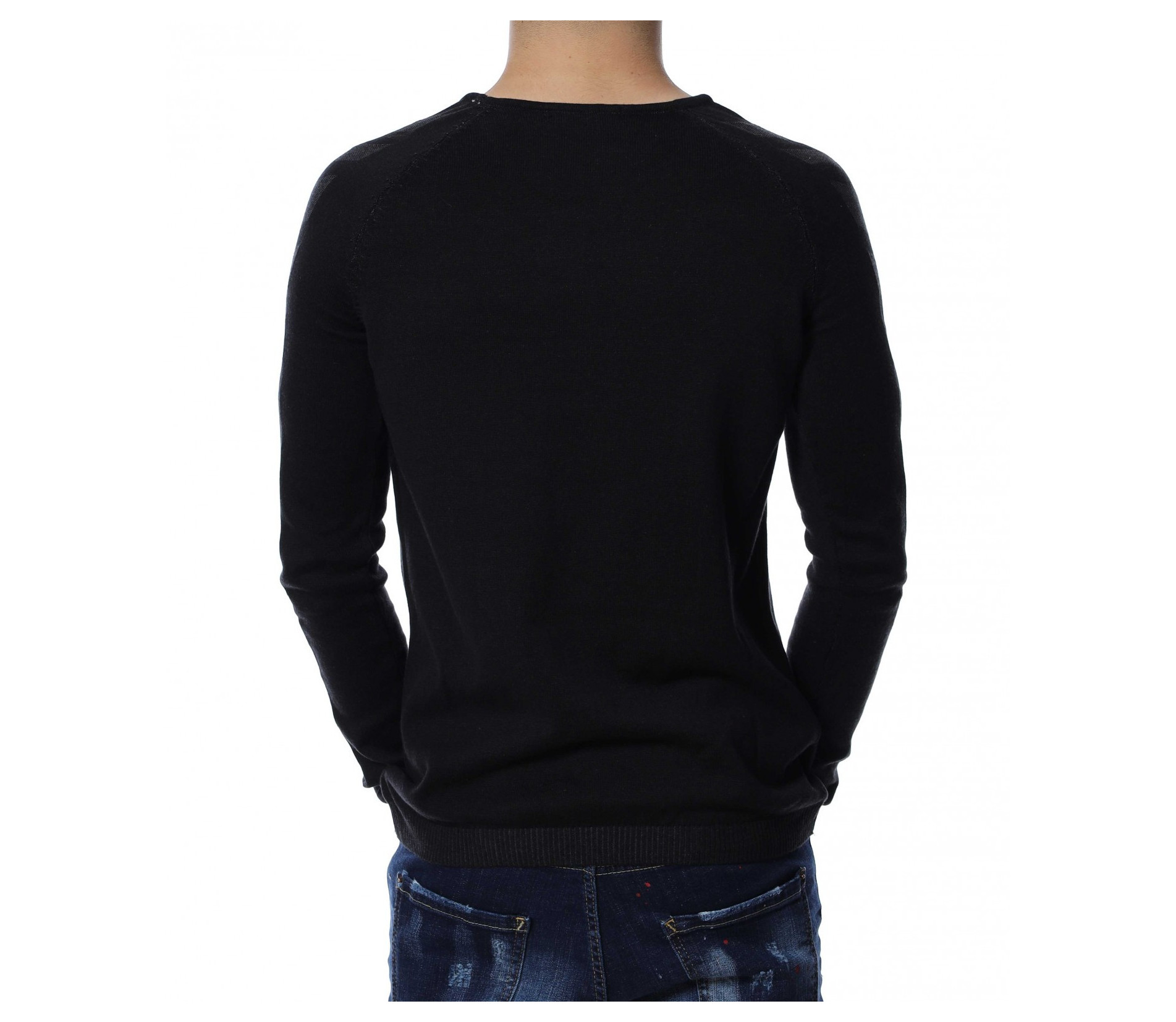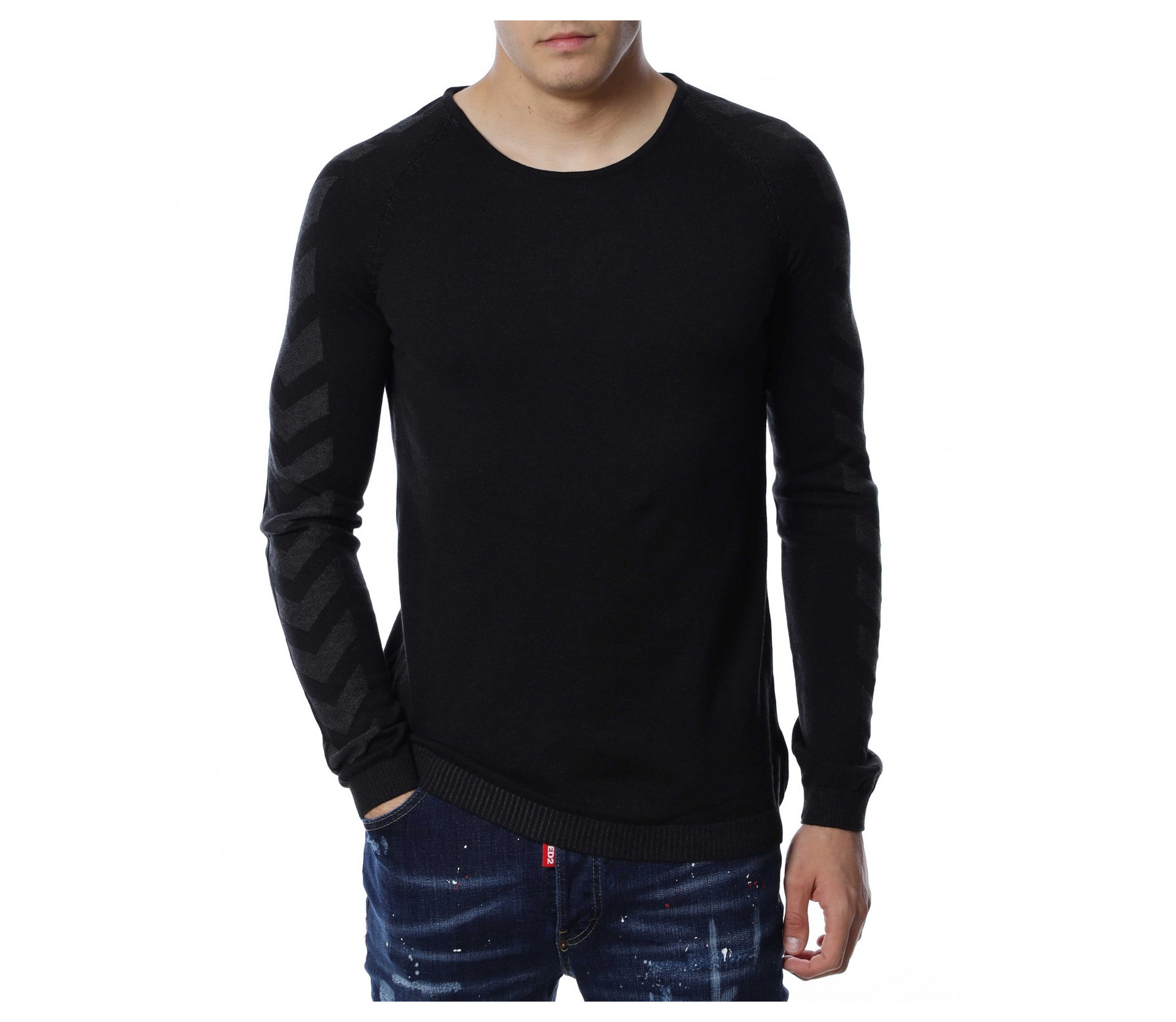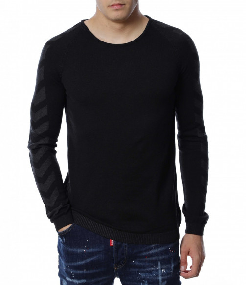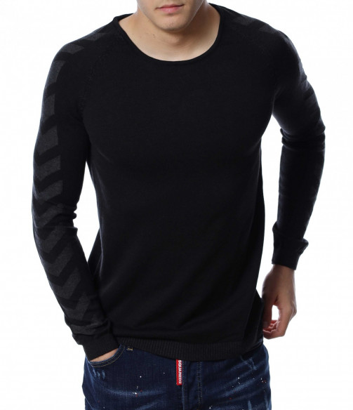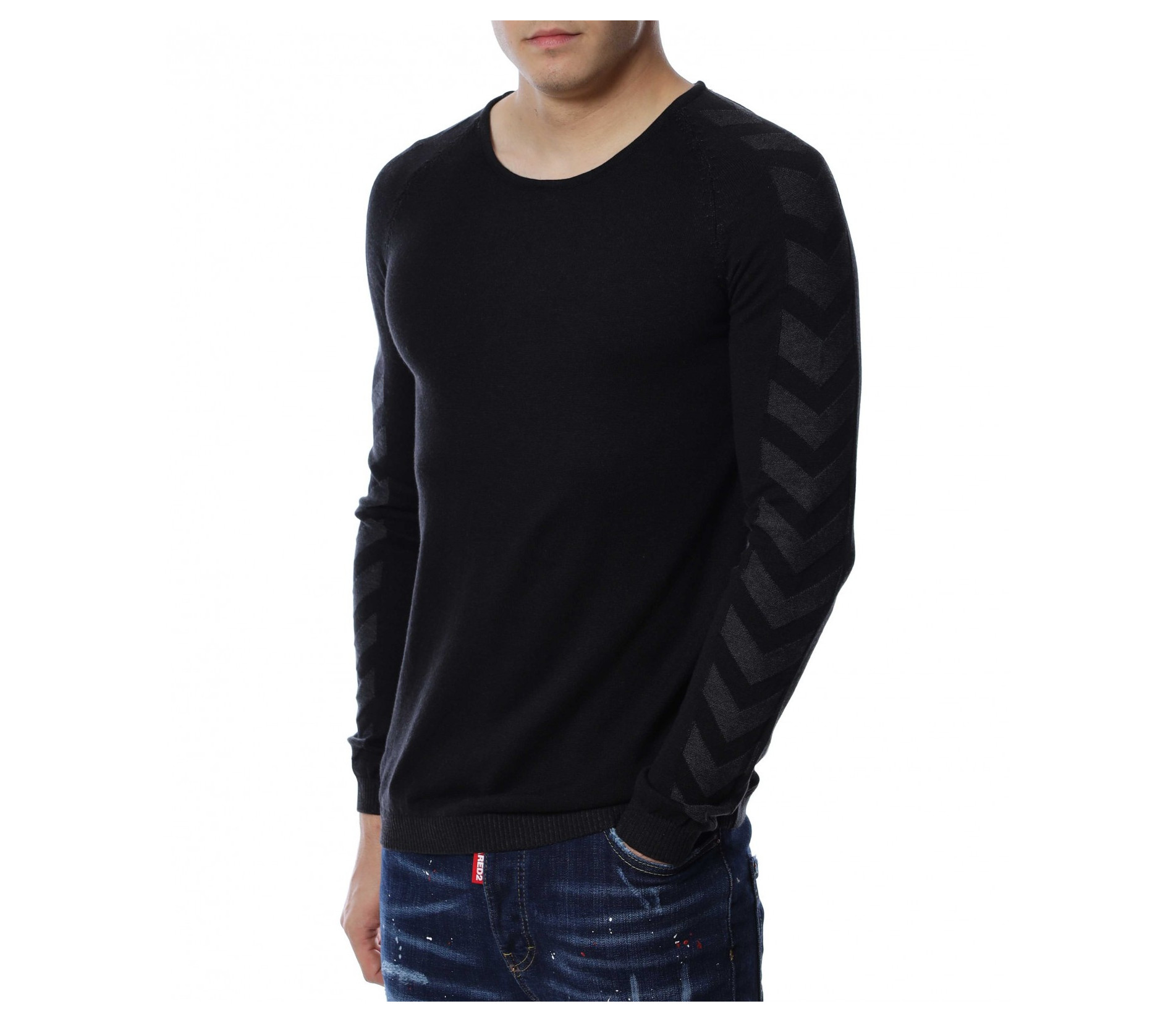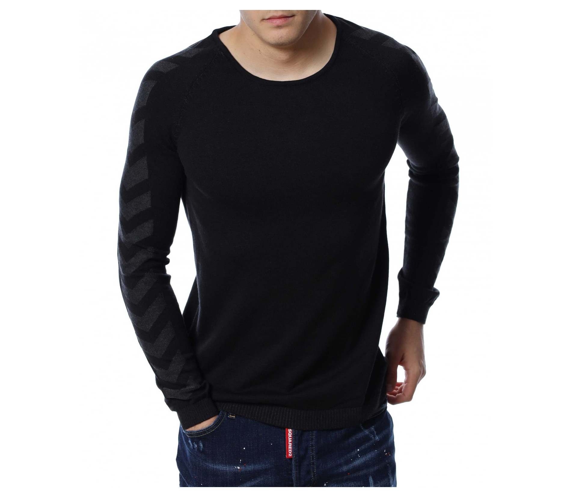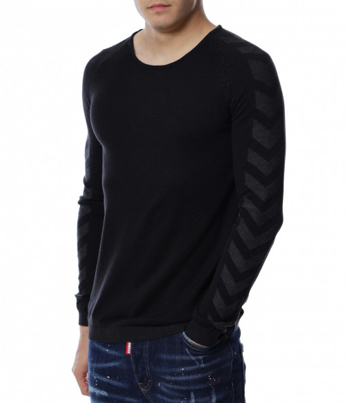 Мъжки пуловер от тънко плетиво с дълъг ръкав. Деколтето е овално, а кройката е вталена, следваща формите на тялото. Основата е едноцветна, а на ръкавите забелязваме интересен дизайн, който го откроява от останалите модели. Дължината покрива колана, а меката материя придава комфорт на тялото. Комбинирайте с дънки и кецове.