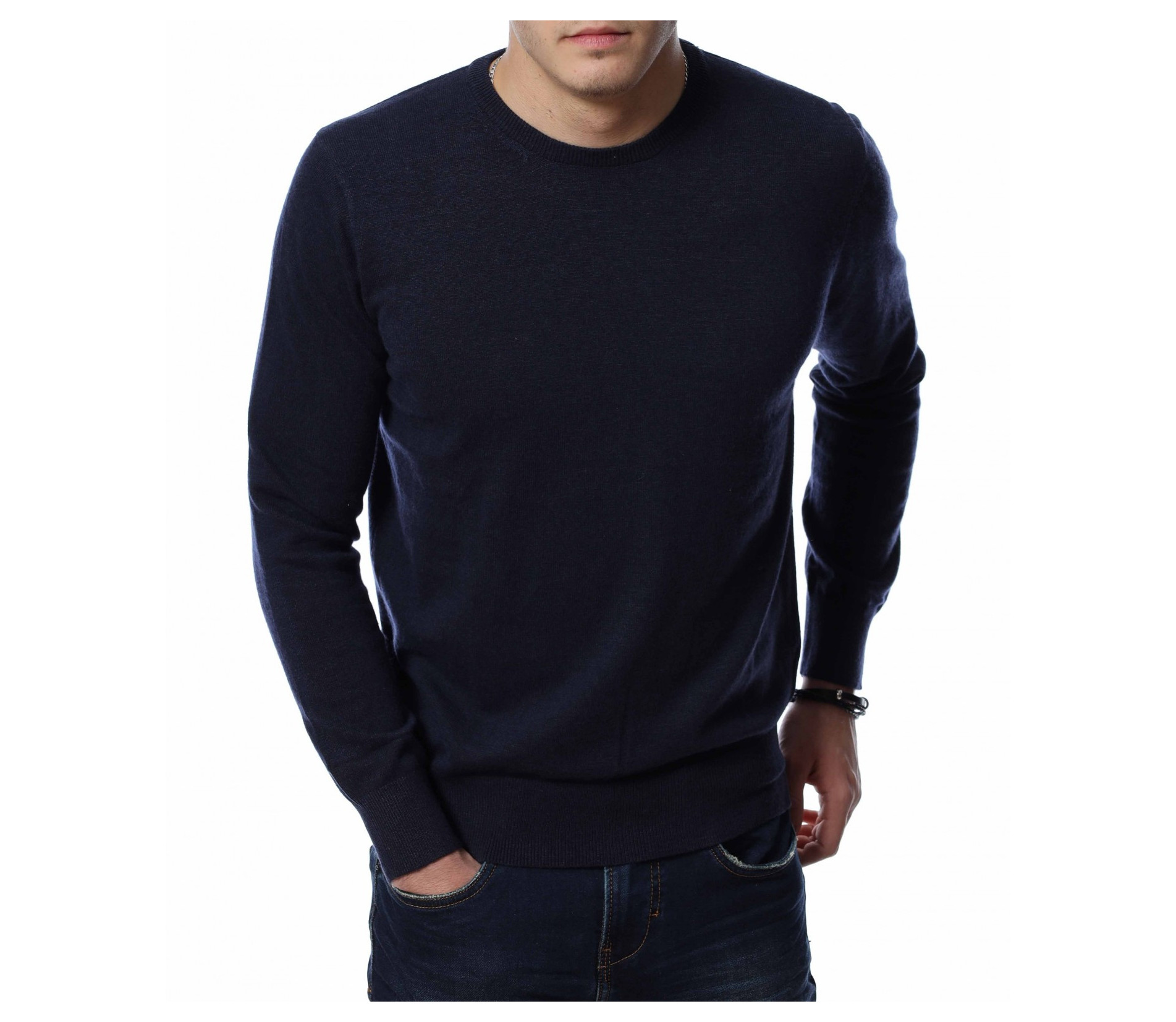 Мъжка блуза с дълъг ръкав-пуловер в напълно изчистен дизайн. Основата е едноцветна и подходяща за феновете на класическите модели. Дължината покрива колана, а при ръкавите са позиционирани ластични маншети. Деколтето е овално, а материята придава топлина и комфорт през студеното време. Уникалната му линия и перфектния дизайн, Ви осигурява в комбинация със стилен деним, модерни обувки и топло яке, един перфектен стайлинг, за ценителите на идеалната визия.