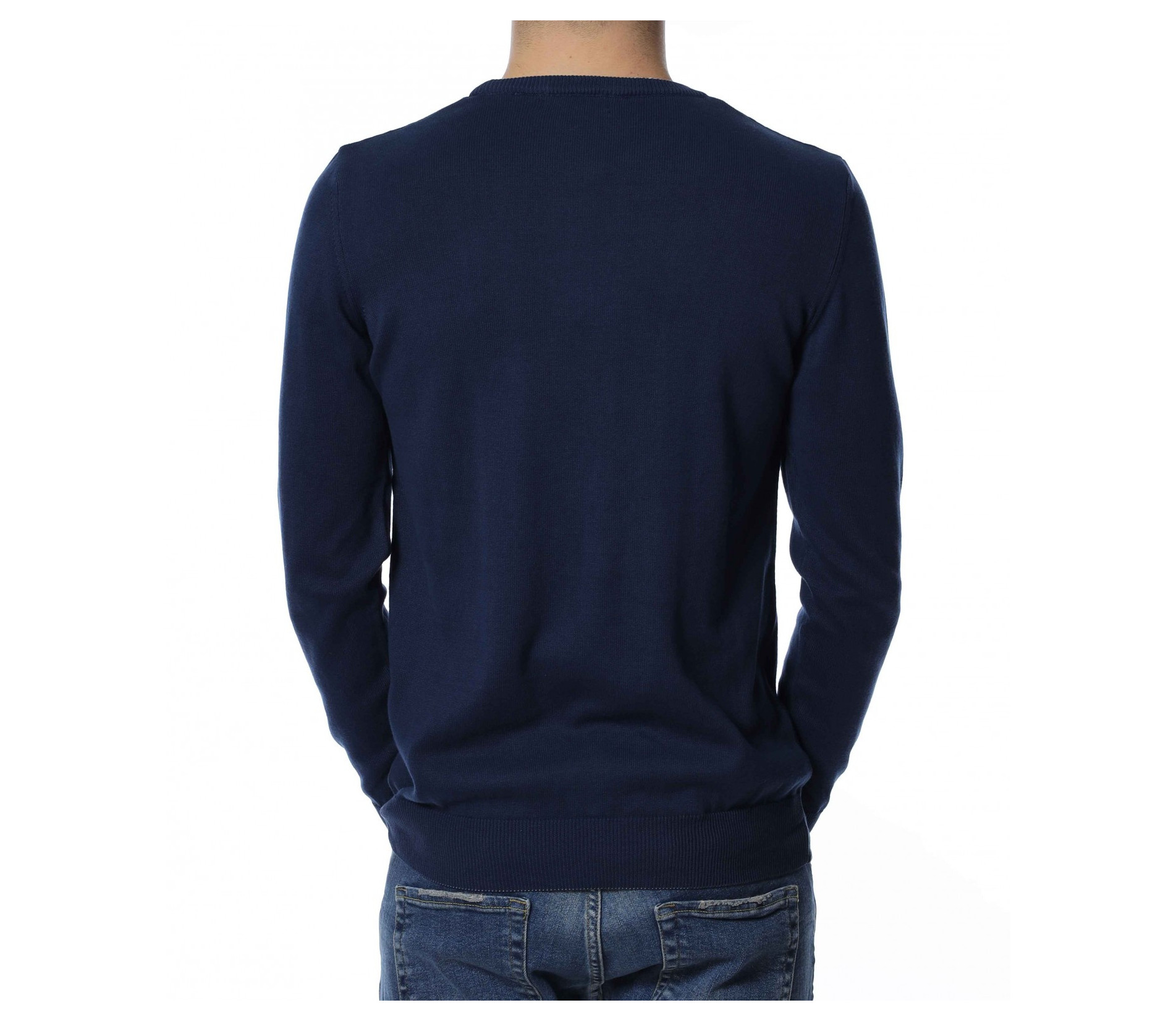 ОПИСАНИЕ НА ПРОДУКТА: Мъжки напълно изчистен пуловер, който предлагаме в три атрактивни за сезон есен/зима цвята – черно, сиво и тъмносиньо. Моделът е в напълно еднотонен цвят, лишен от всякакви декорации, щампи и апликации. Единствения разчупващ елемент е малка емблема на марката изработена от кожа и метал, която е позиционирана в долната лява част. На кръста и в областта на китките са разположени широки ластици, които прибират по тялото иначе леко свободния модел. Деколтето е овално. Комбинирай смело с любимите си дънки, риза и дори сако и създай своя делови облик, или просто визия за ежедневието. Атрактивността и модерното излъчване са гарантирани, в комбинация с доза комфорт, на който знаем, че държите.