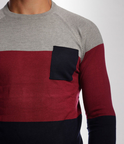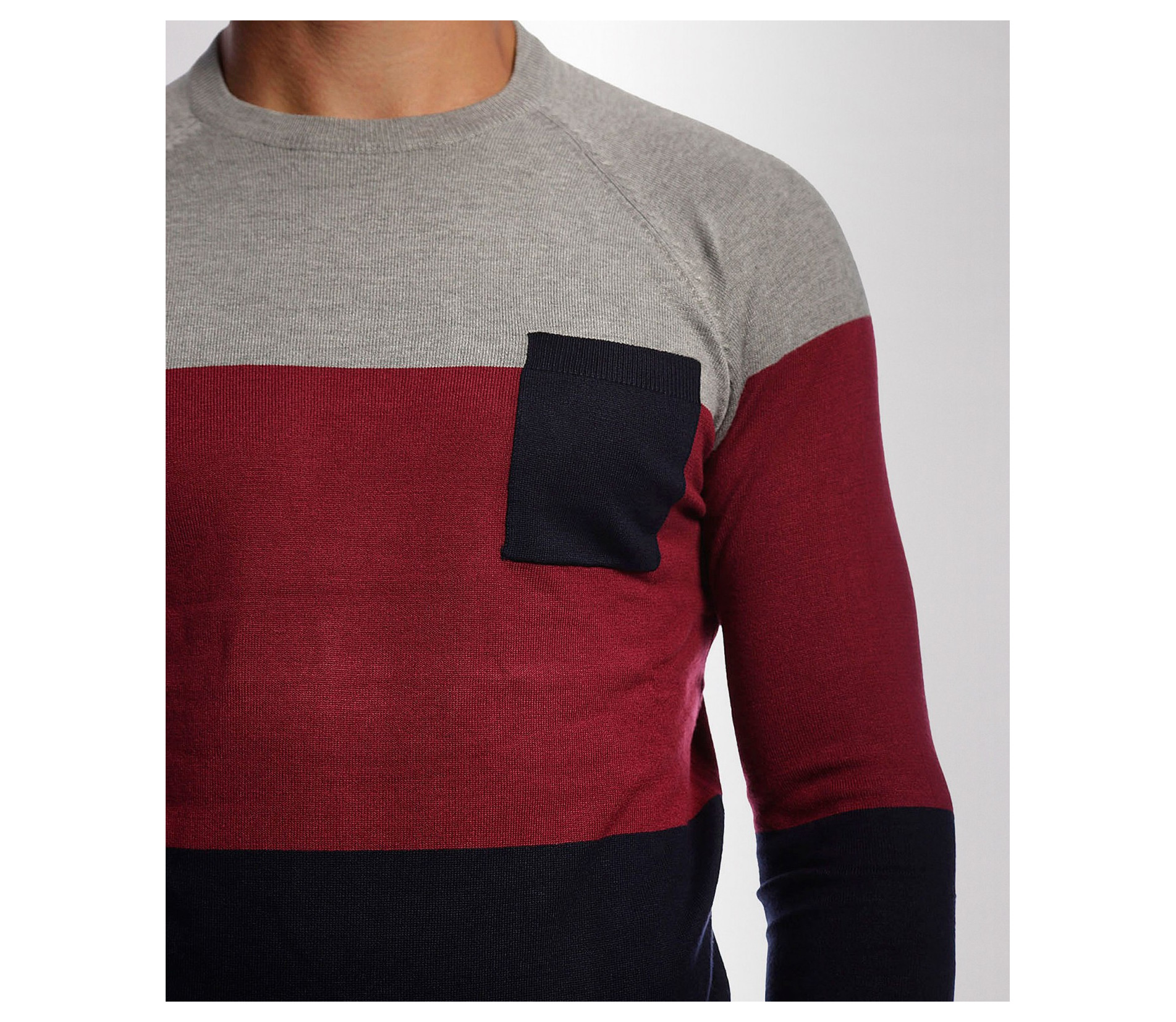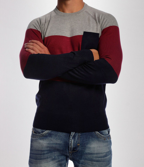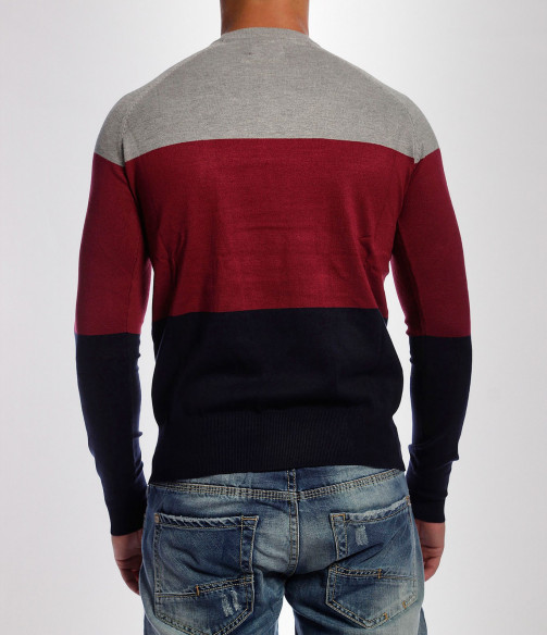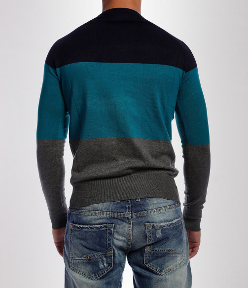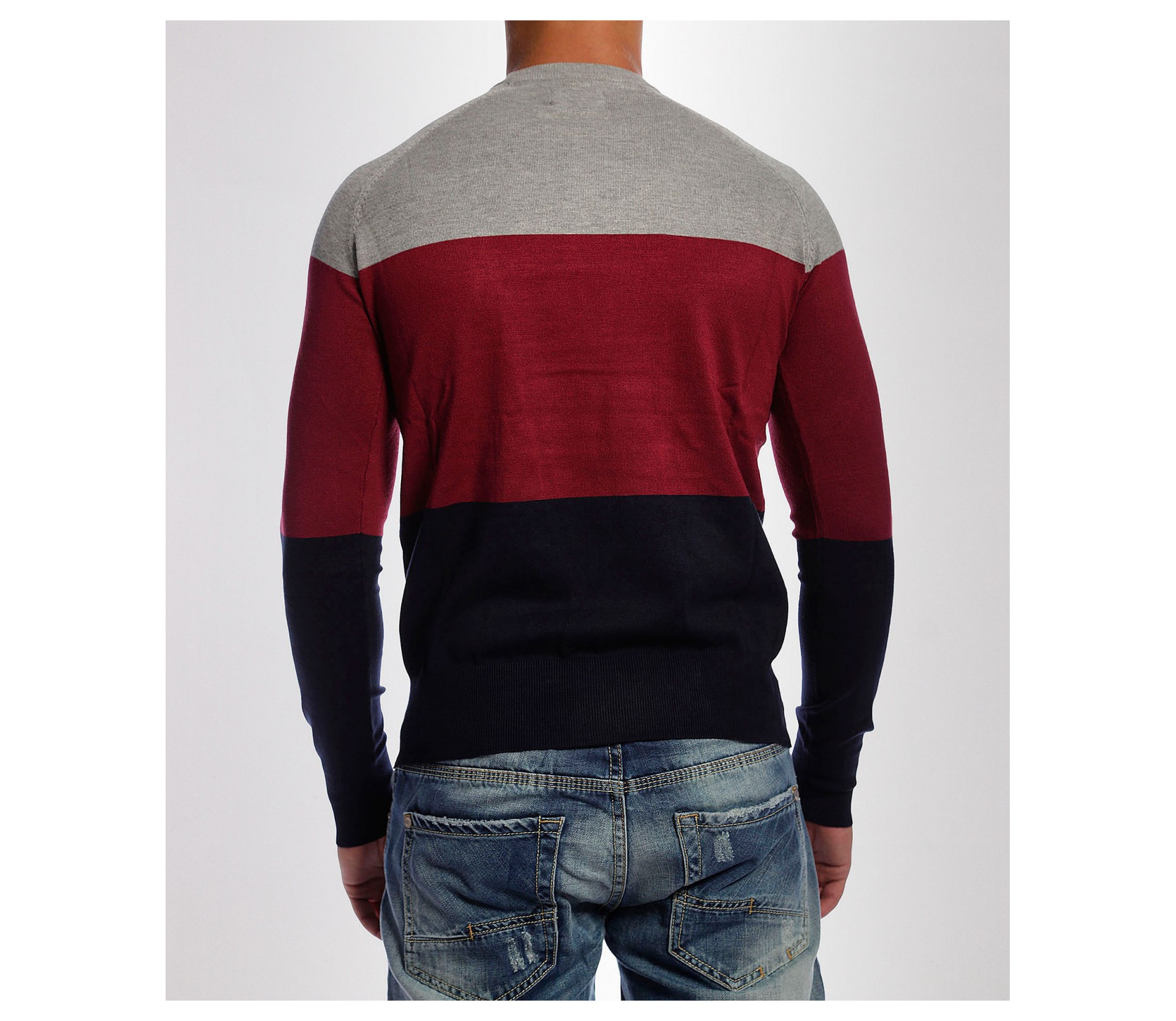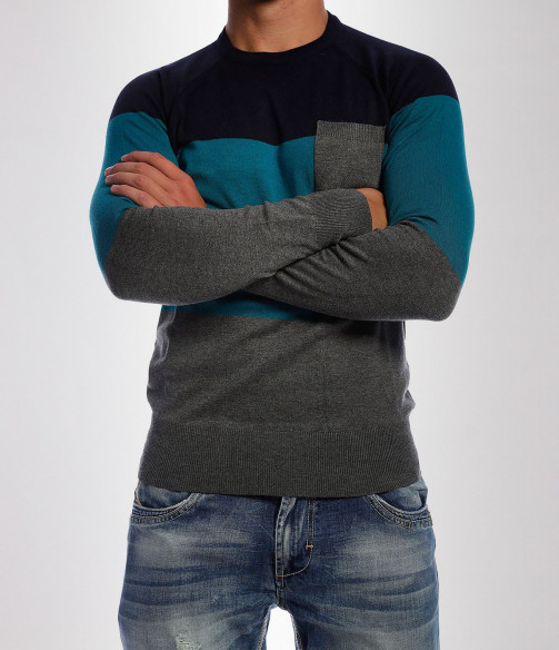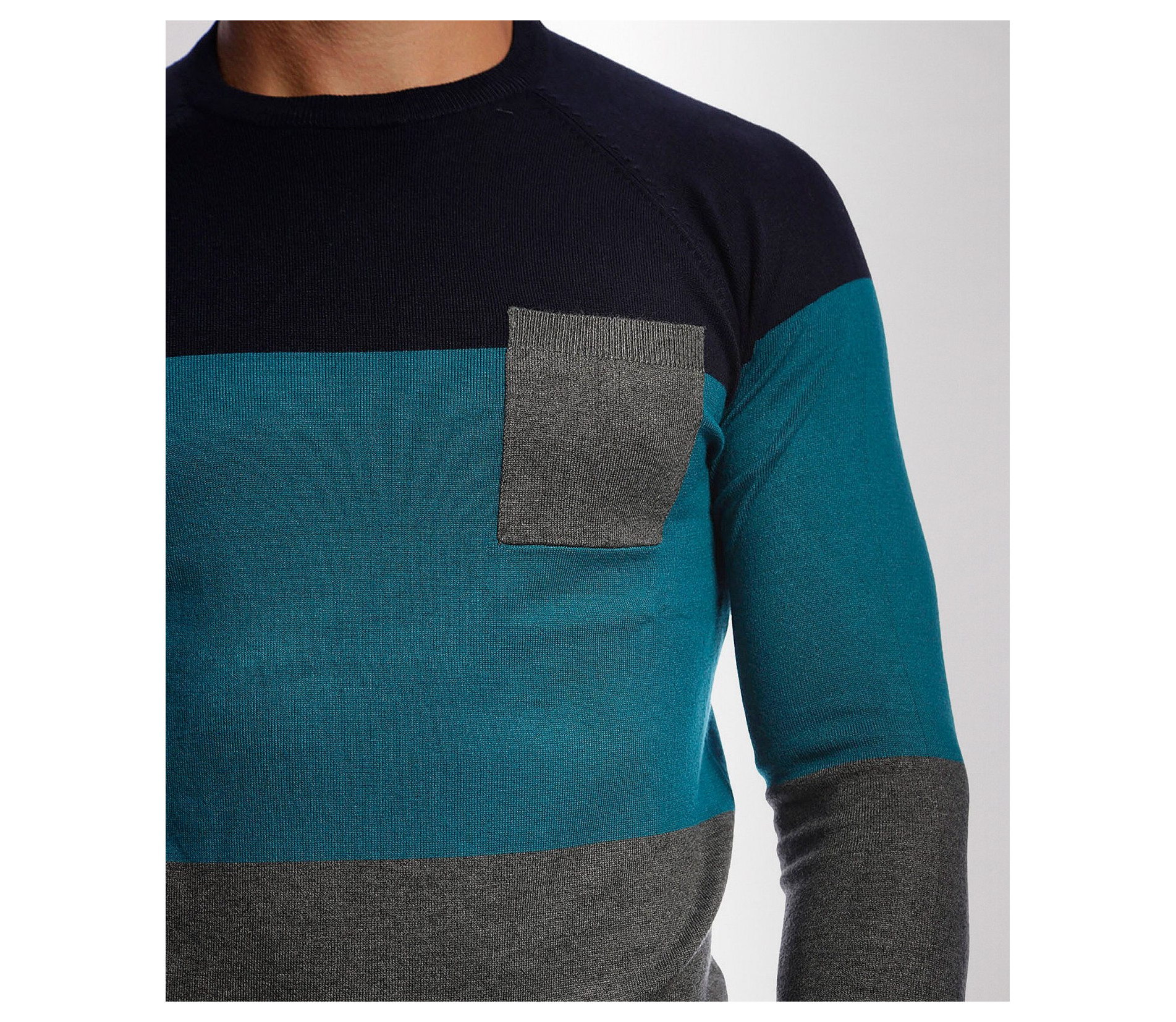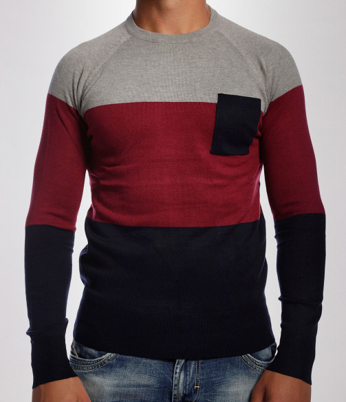 Описание на продукта: Стилен мъжки пуловер в три цвята. Пуловерът е втален по тялото и с овално деколте за удобство. В края на ръкавите и около талията се прибира с леки ластици. Свежо съчетание от цветове прави модела разчупен- сиво, синьо и тюркоазено или червено, сиво и синьо. В областа на гърдите пуловера има деликатно поставено джобче като акцент.Изработен от комбианция от материи- 78%изк.коприна,22%найлон за постигане на максимално удобство. При съчетание с дънки, стилен спотно-елегантен панталон,спортно сако,яке и аксесоар по Ваш вкус., получавате перфектен вид 100% привличащ погледите.
