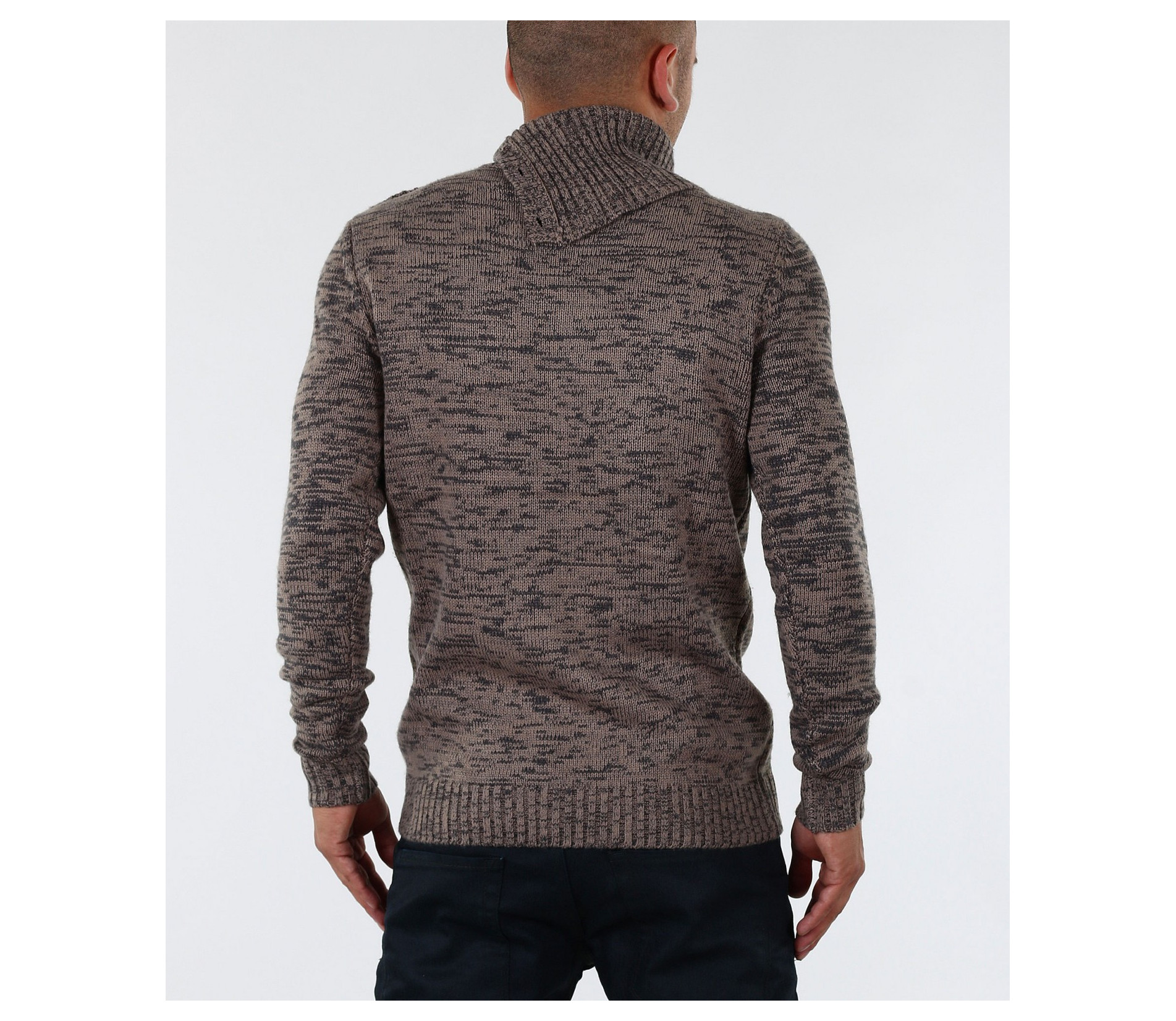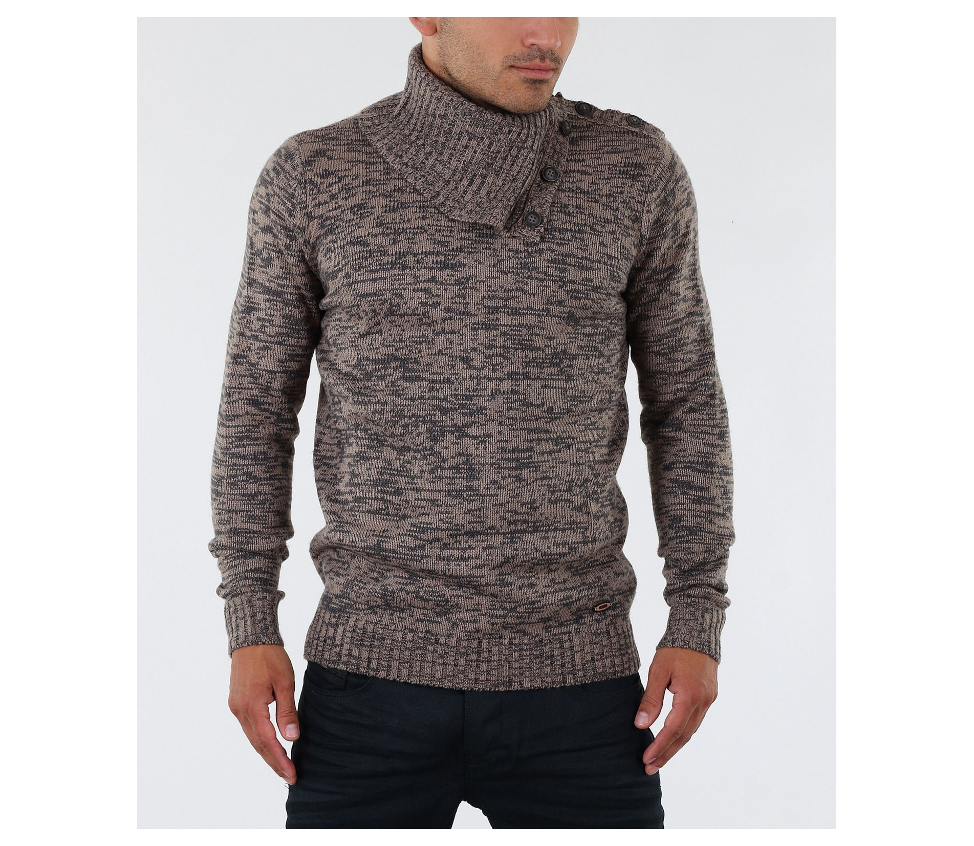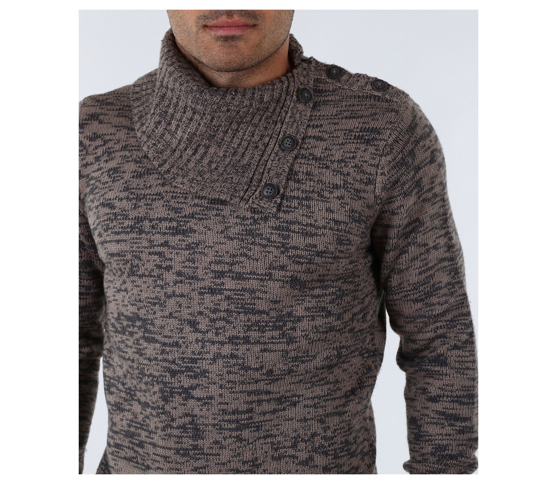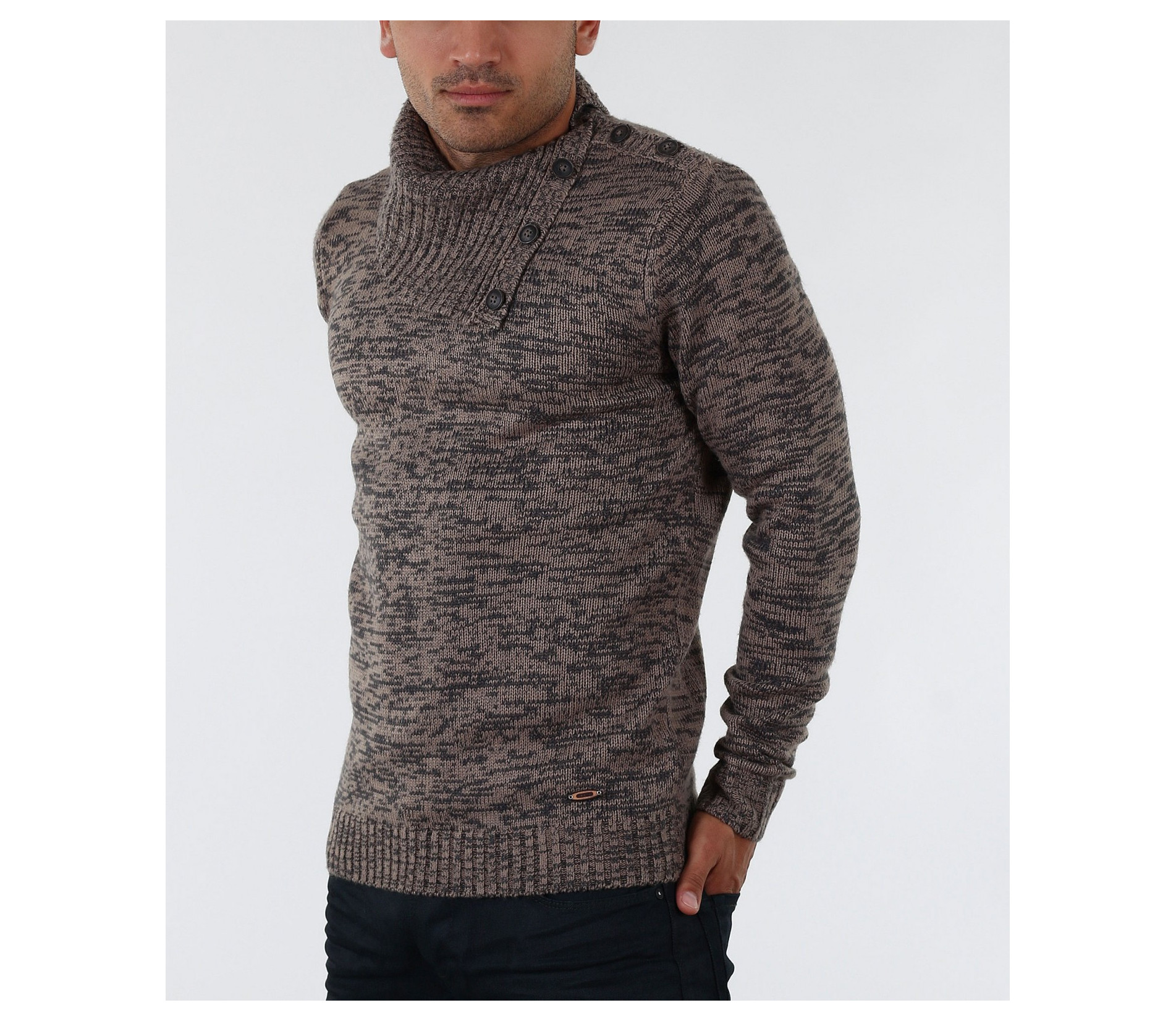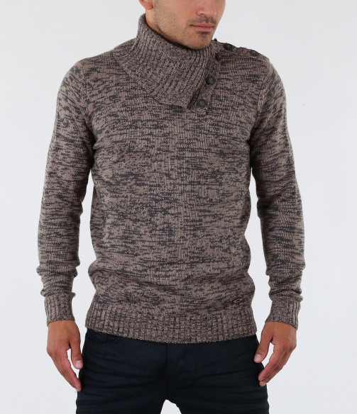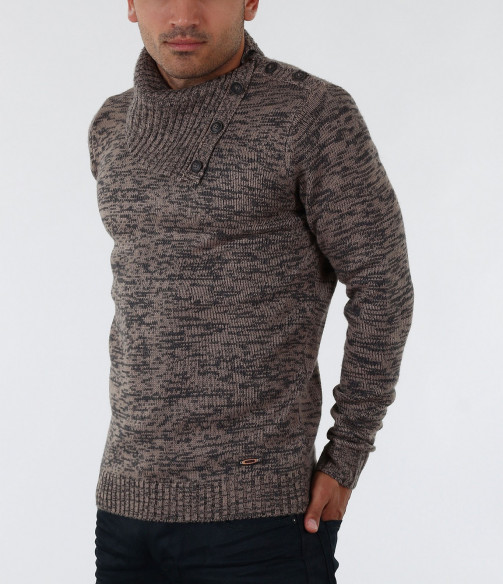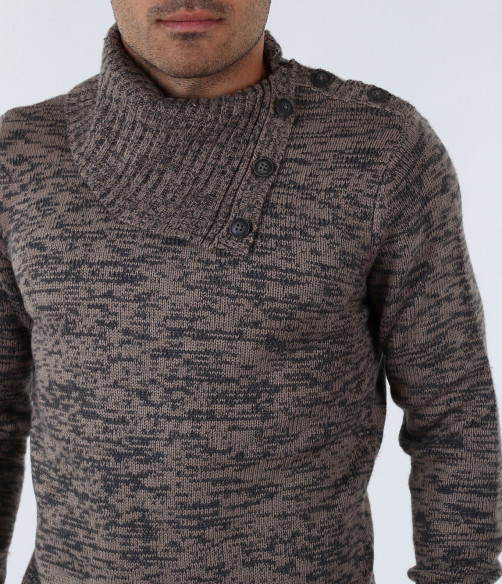 Описание на продукта: Екстравагантен мъжки пуловер с интересен акцент. Яката на този модел е тип шал-яка декорирана с големи копчета, които може да се закопчеят и да получите поло.Цветът на пуловера е меланж от черни и кафеви/сиви нишки. В областта на ръкавите и кръста са поставени ластици, които правят модела прибран по тялото. В комбинация с изчистени тъмни дънки или спортен панталон, чифт стилни спортно-елегантни обувки и връхно яке, получавате стилно решение за зимните дни.