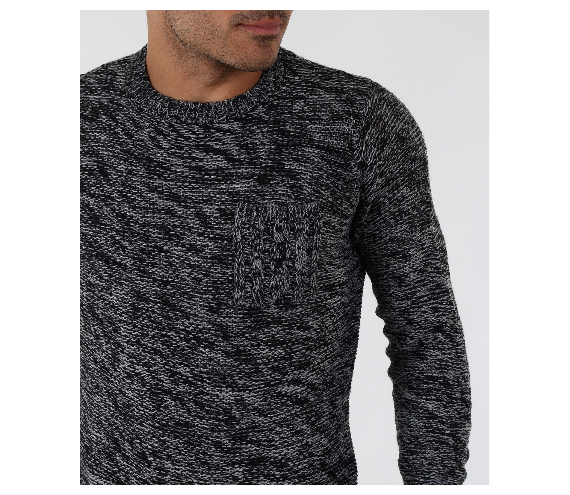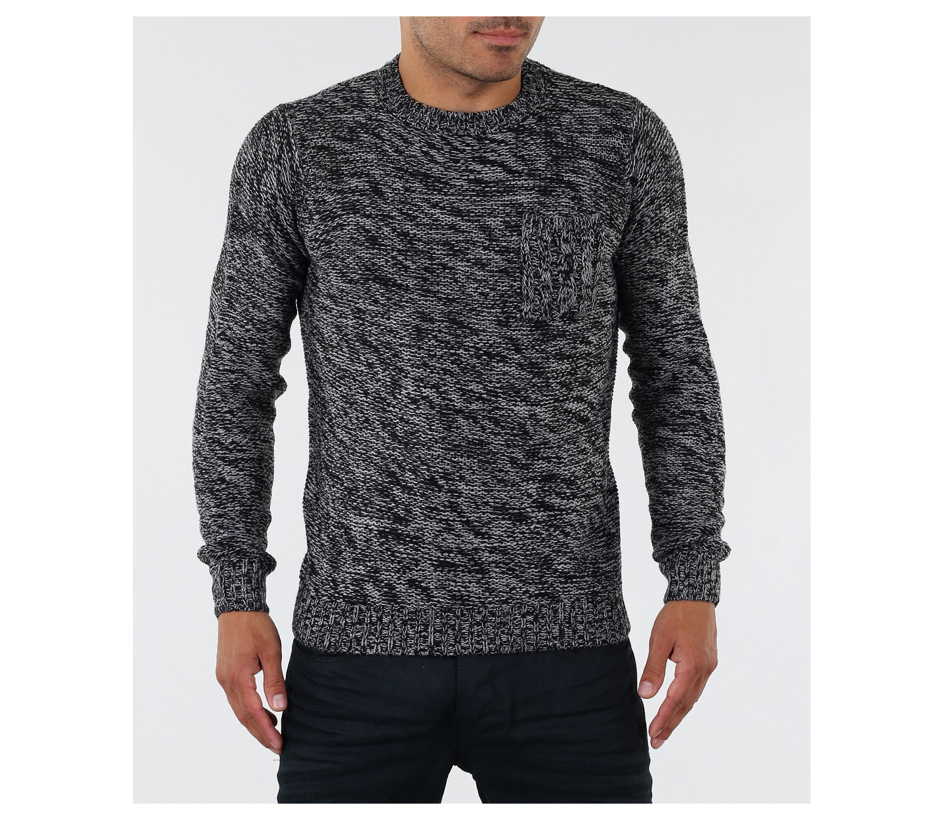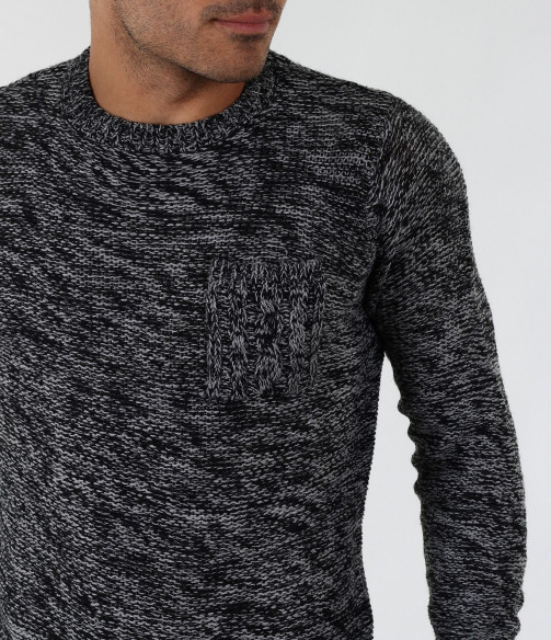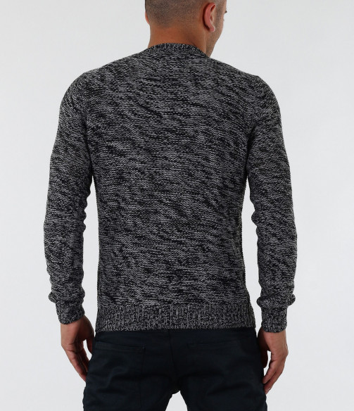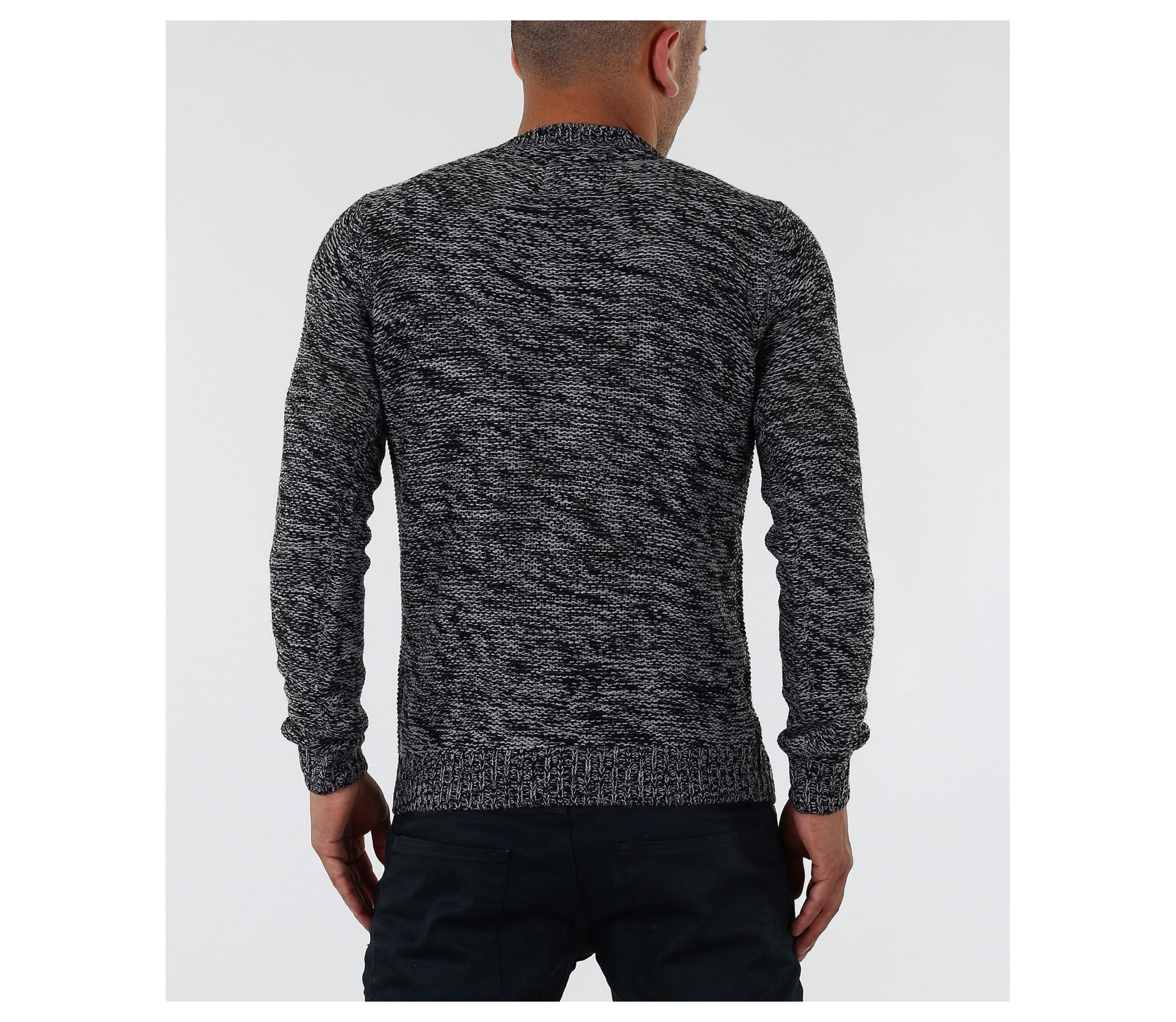 Описание на продукта: Стилен мъжки пуловер в цвят меланж. Страхотен модел изчистен от надписи и щампи, което го прави толкова стилен и предпочитан. Акцент на модела е малкото метално лого в долната предна част на пуловера. Моделът е с вталена кройка и овално деколте. Дължината на пуловера е стандартна. В областта на ръкавите и долната част има фини ластици, които правят модела по-прибран. Лесно влиза в комбинации както с по-спортни панталони така и със стилни дънки и обувки.