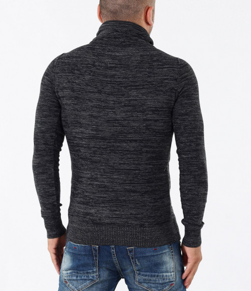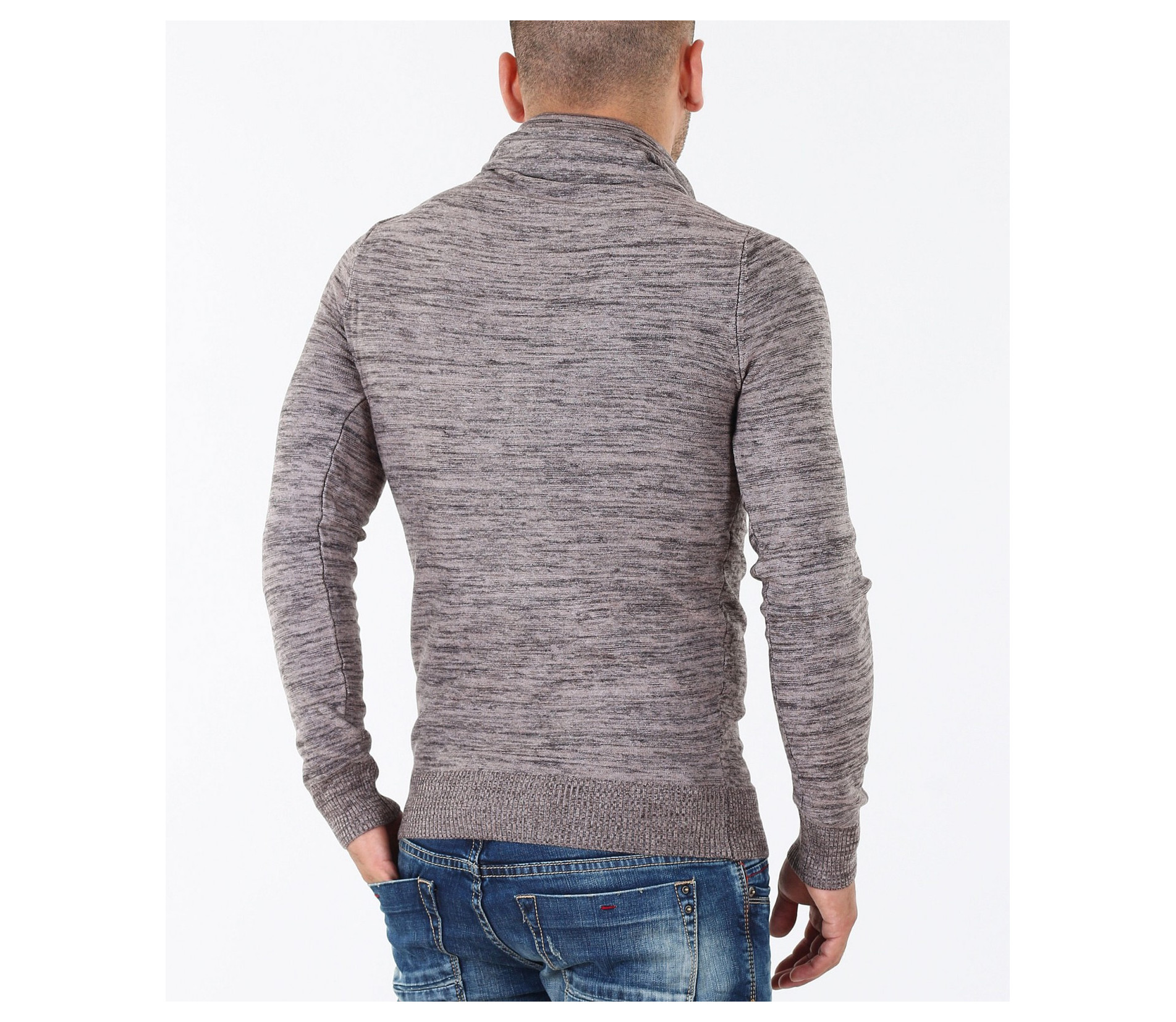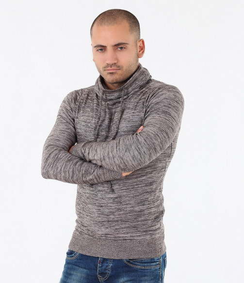 Описание на продукта: Супер стилен модел мъжки пуловер със силно акцентирана яка тип шал. Цветът му е преливащ от по-тъмни към по-светли нюанси, наподобяващи меланж. За допълнително акцентиране яката е декорирана с тънки връзки. Кройката на този модел е силно вталена със стандартна дължина. Изключително модерен, удобен и впечатляващ мъжки пуловер, който в съчетание със стилни дънки или спортен панталон, чифт кецове и вталено яке, получавате уникален есенно-зимен сет, съчетаващ в себе си комфорт и стил.