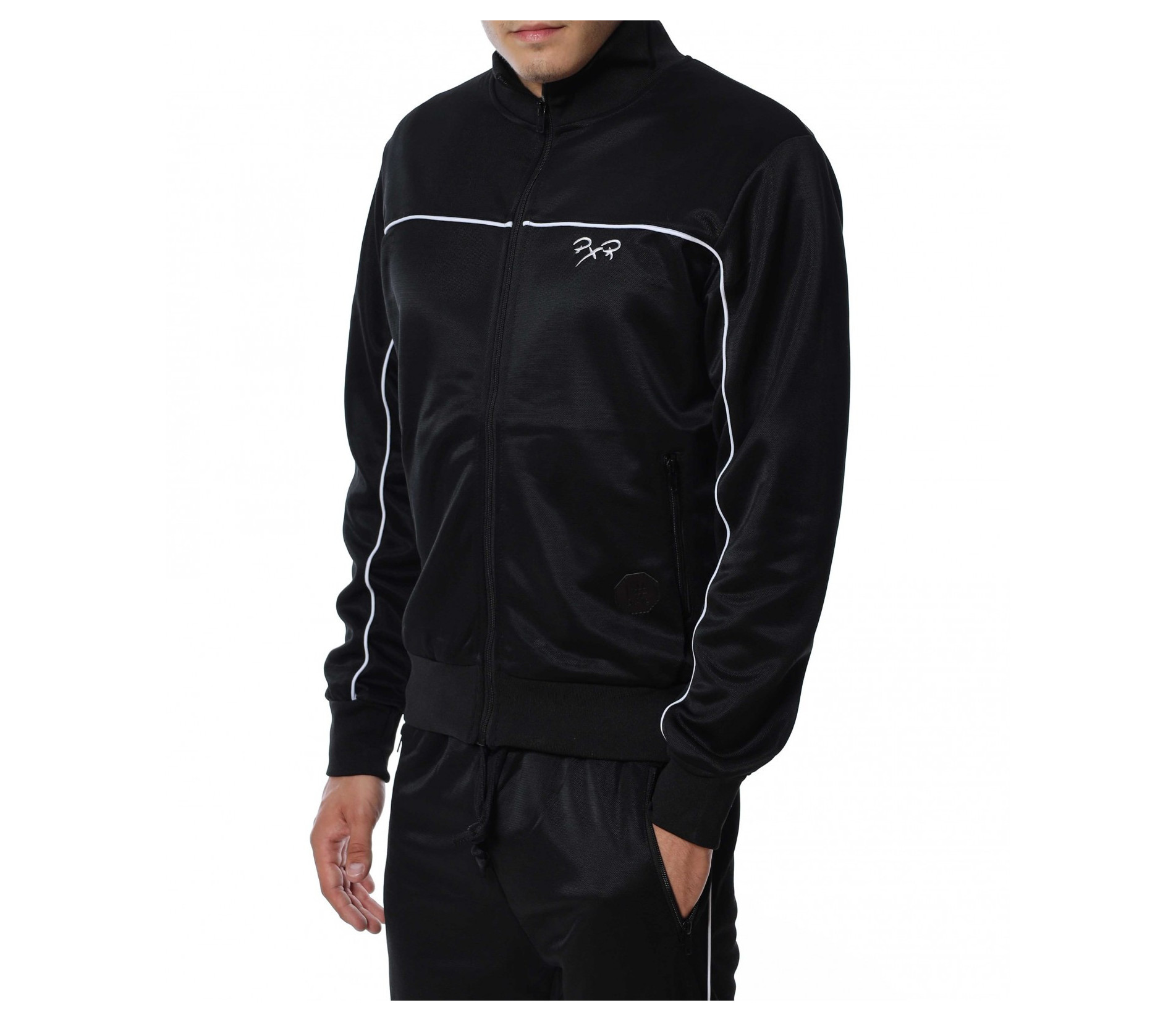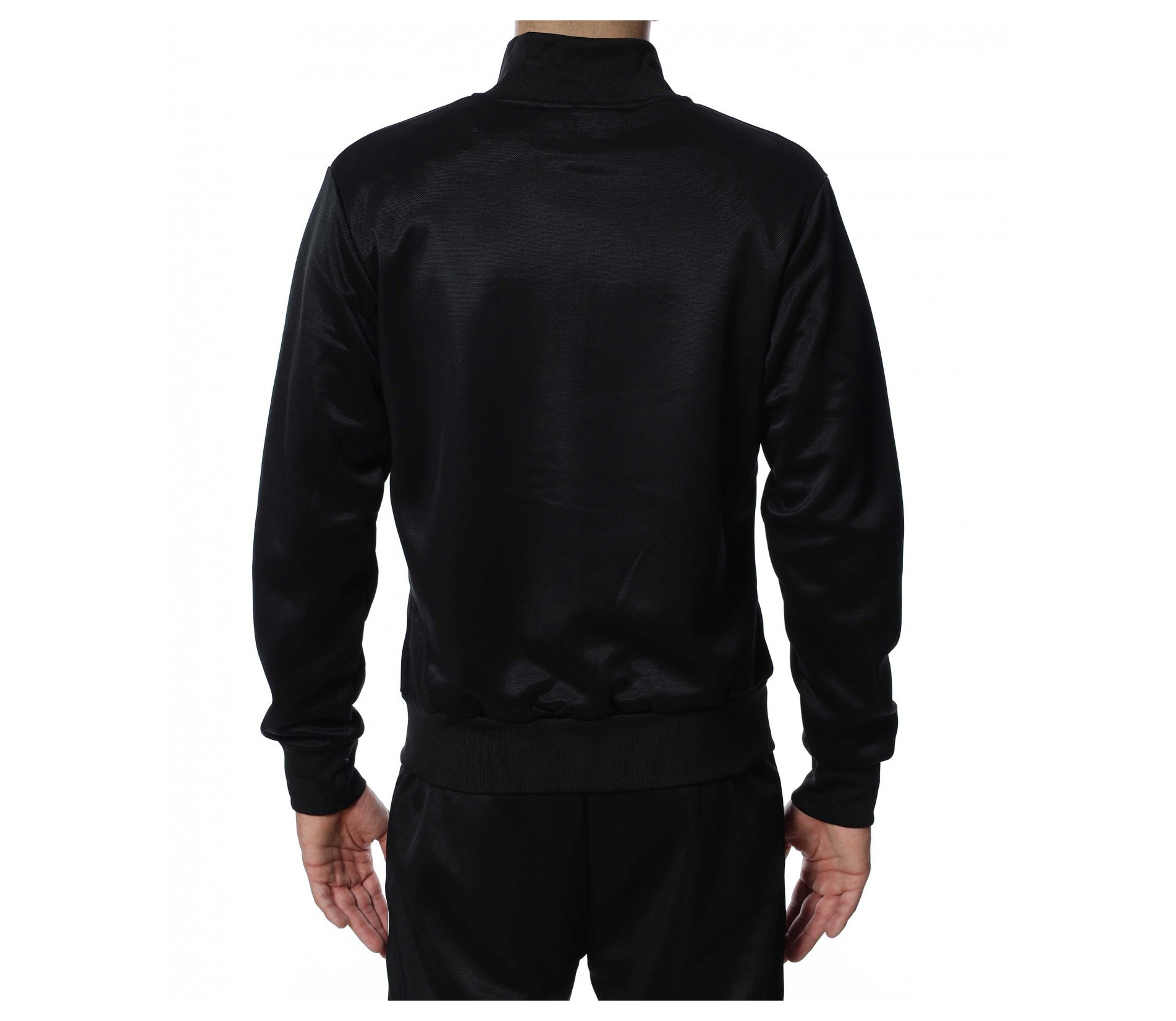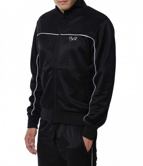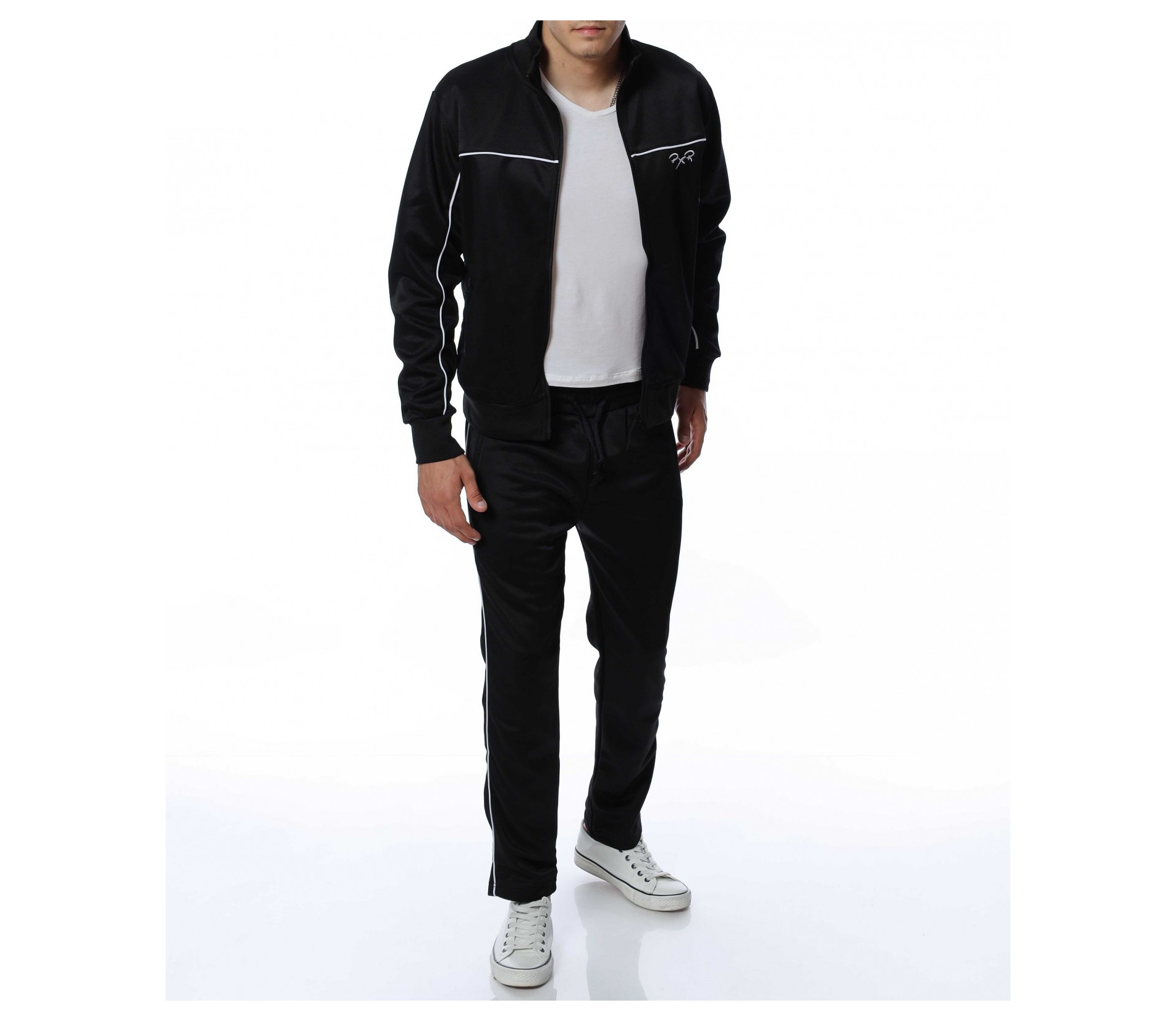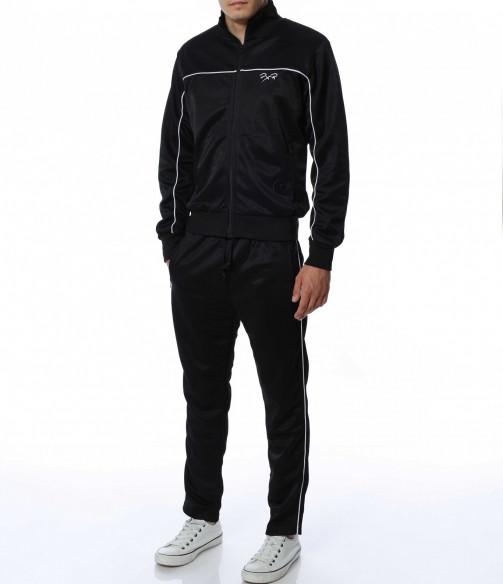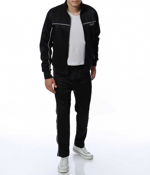 Мъжки, спортен екип от две части. Долнището е изчистено от декорации и разполага с връзки на талията. На горнището има малко лого, а закопчаването му е с цип. Подходящ и удобен за предстоящите месеци. За да завършите цялостната визия добавете маратонки или спортни обувки.