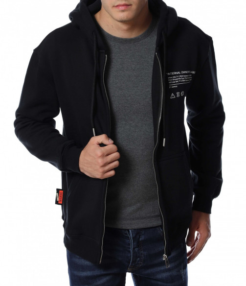 Едноцветен мъжки суичер. Моделът е в един цвят и дизайнът е изчистен от декорации, както в предната, така и в задната част. Закопчаването е с цип, а отстрани забелязваме отворени, дълбоки джобове. Добавена е и качулка с връзки за регулиране на ширината. Комбинирайте с блуза и дънки