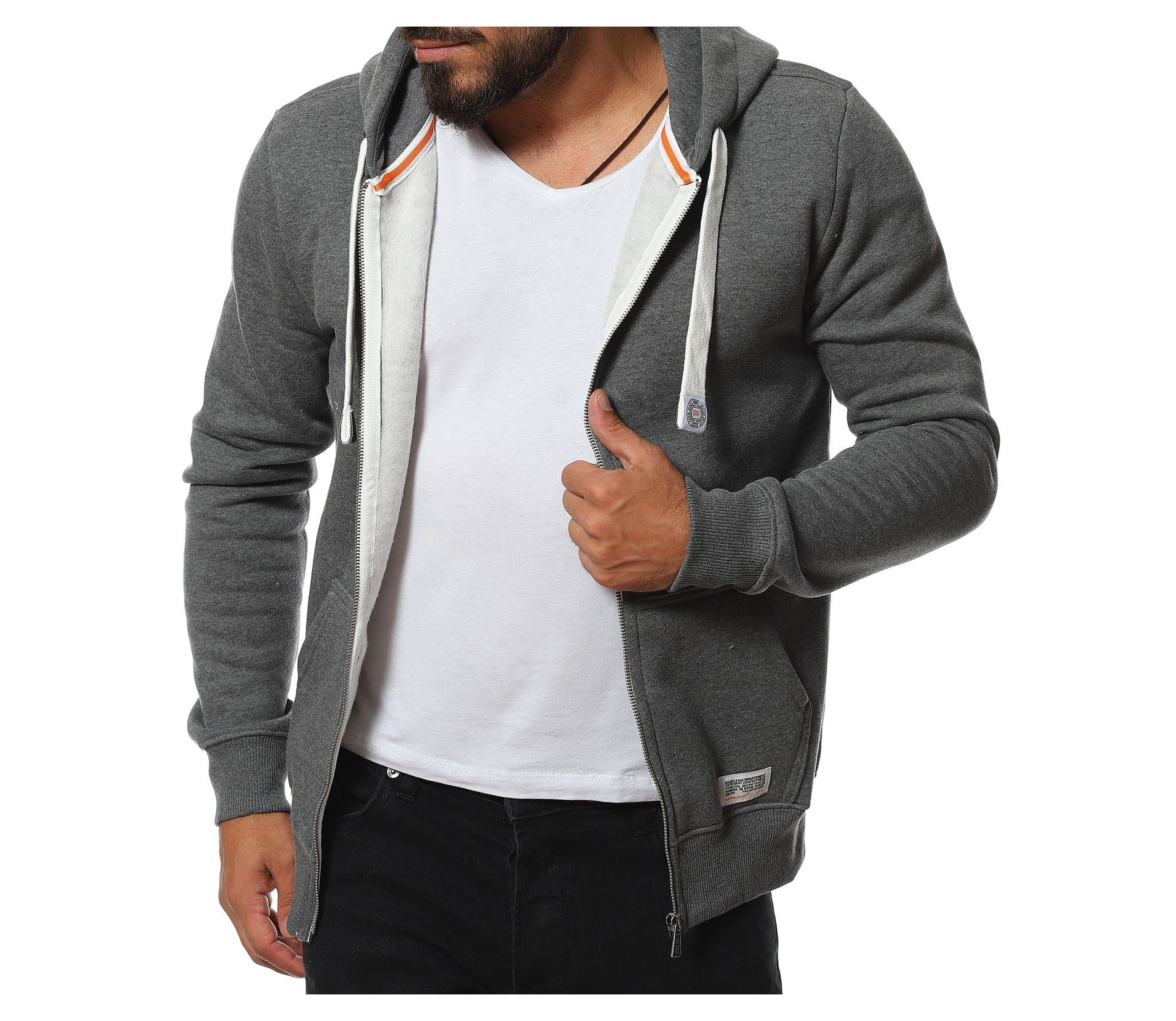 ОПИСАНИЕ НА ПРОДУКТА: Спортно-елегантен разноцветен суитчър. Той е изработена от мека памучна материя, осигуряваща Ви комфорт и топлина през студените есенно-зимни дни и вечери. В страничната част на горнището има два дълбоки джоба, а закопчаването е с цип. Тази комбинация се завършва с голяма и топла качулка, която може да се пристяга с дебела връзка в цвета на ципа. Кройката на суитчъра е вталена със стандартна дължина. Комбинирането на материи Ви позволява лесно да го съчетаете с широк диапазон от модели, стилове и цветове.