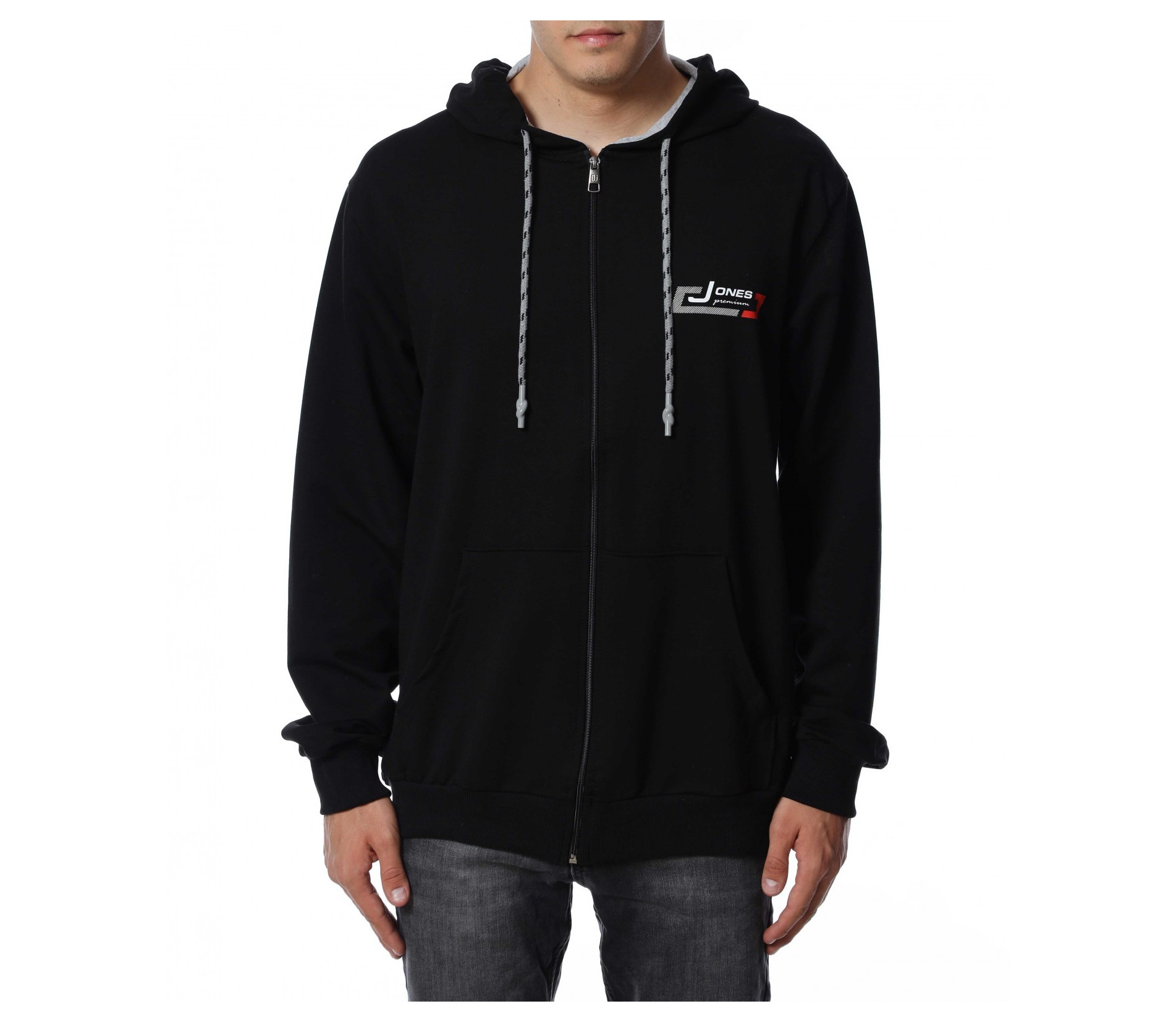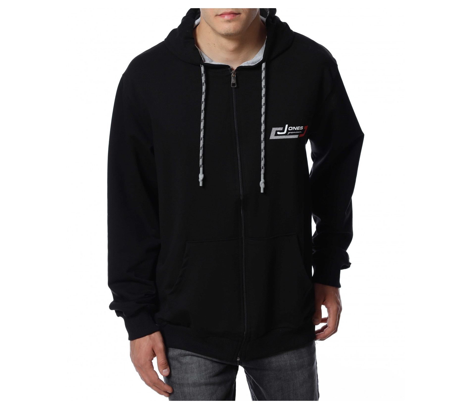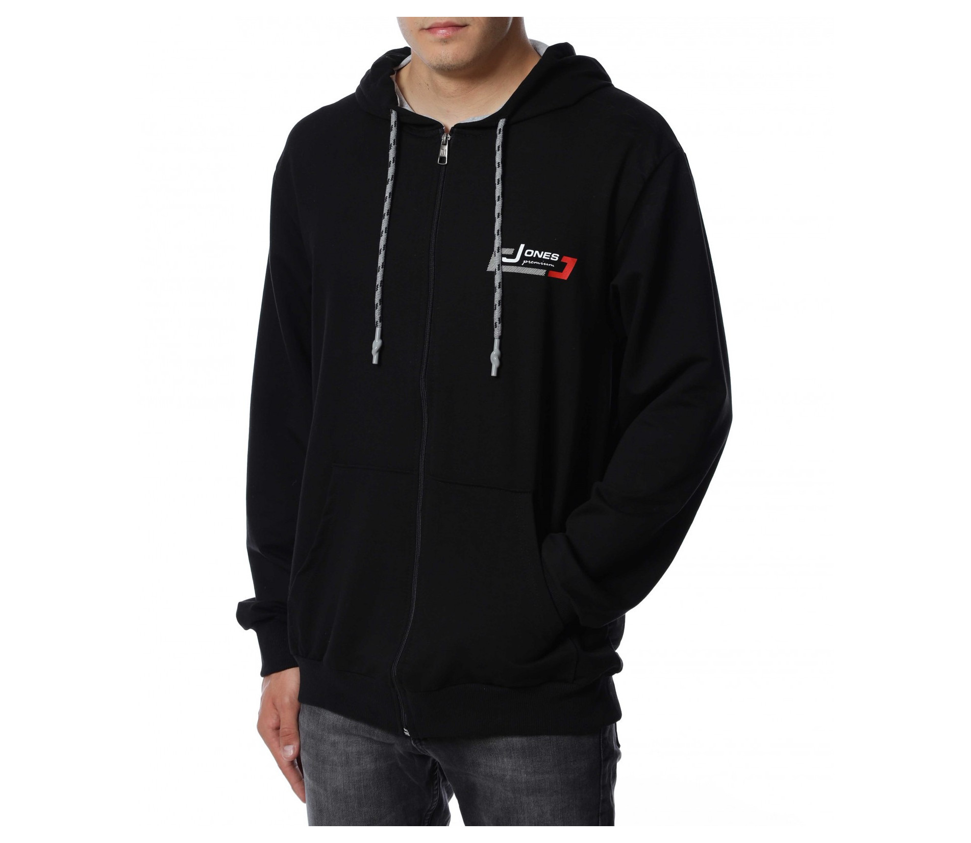 Мъжки, едноцветен суичер в големи размери. Моделът е едноцветен, а в предната част е добавена малка щампа. Гърбът е напълно изчистен от декорации. Закопчаването е с цип и е добавена качулка с връзки за по-лесно регулиране на ширината. За ваше удобство са разположени и два дълбоки джоба.