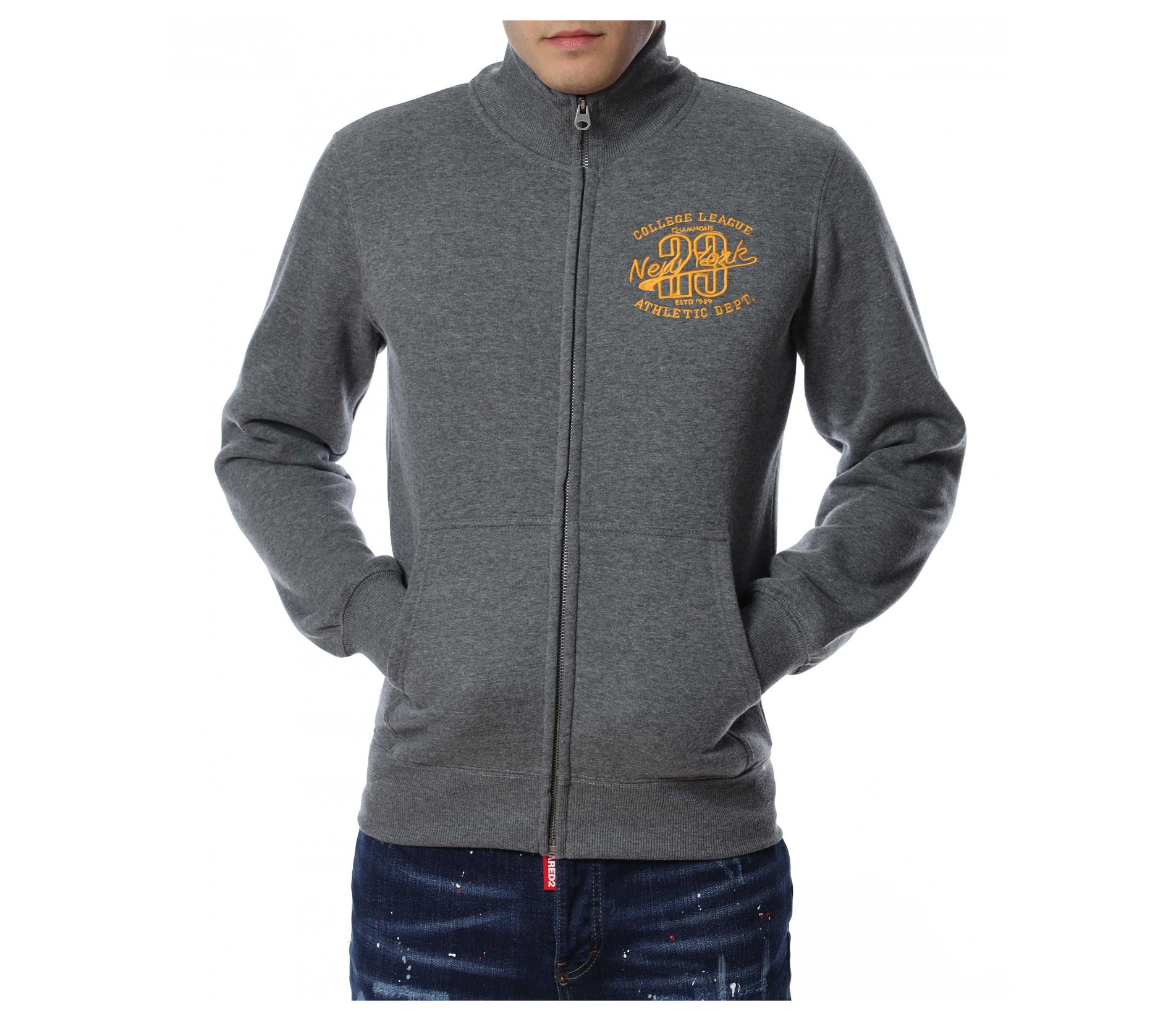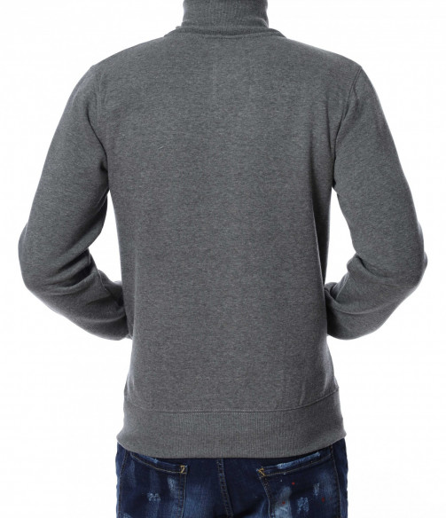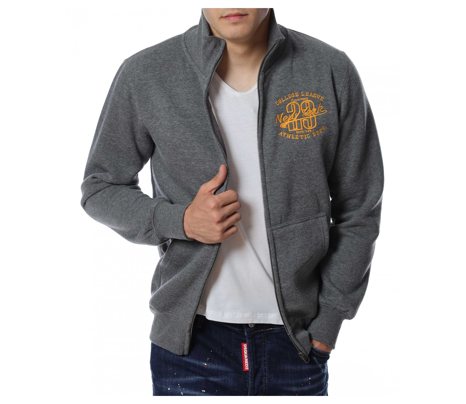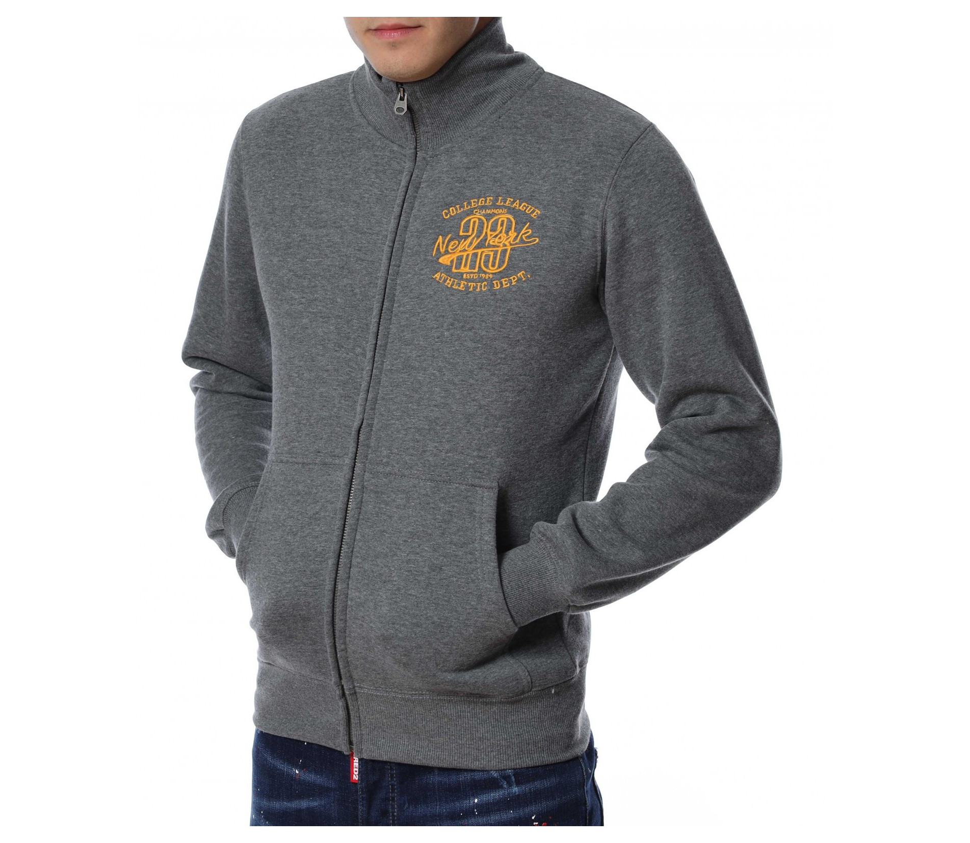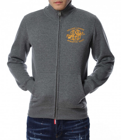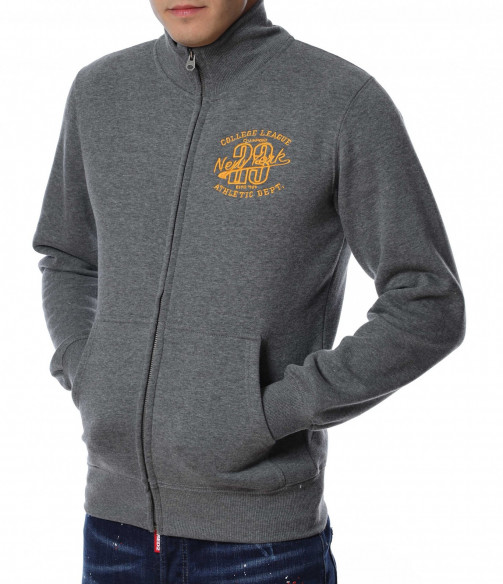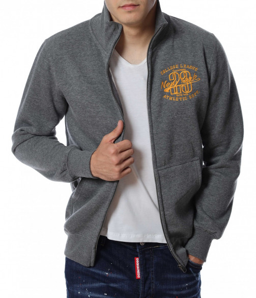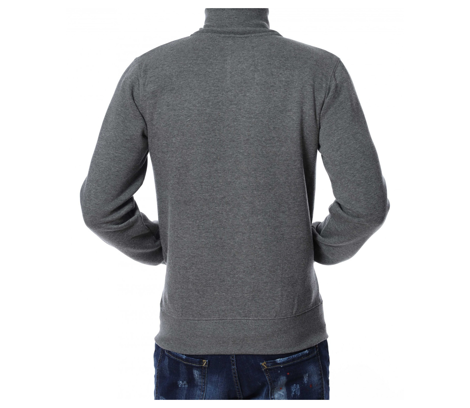Мъжки суичер без качулка. Моделът е в едноцветен вариант, а в предната част забелязваме интересна бродерия, която придава акцент на модела. Закопчаването се състои в метален цип, а отстрани са добавени отворени джобове. Дължината покрива колана, а материята е мека и удобна. Комбинирайте с блуза и дънки.