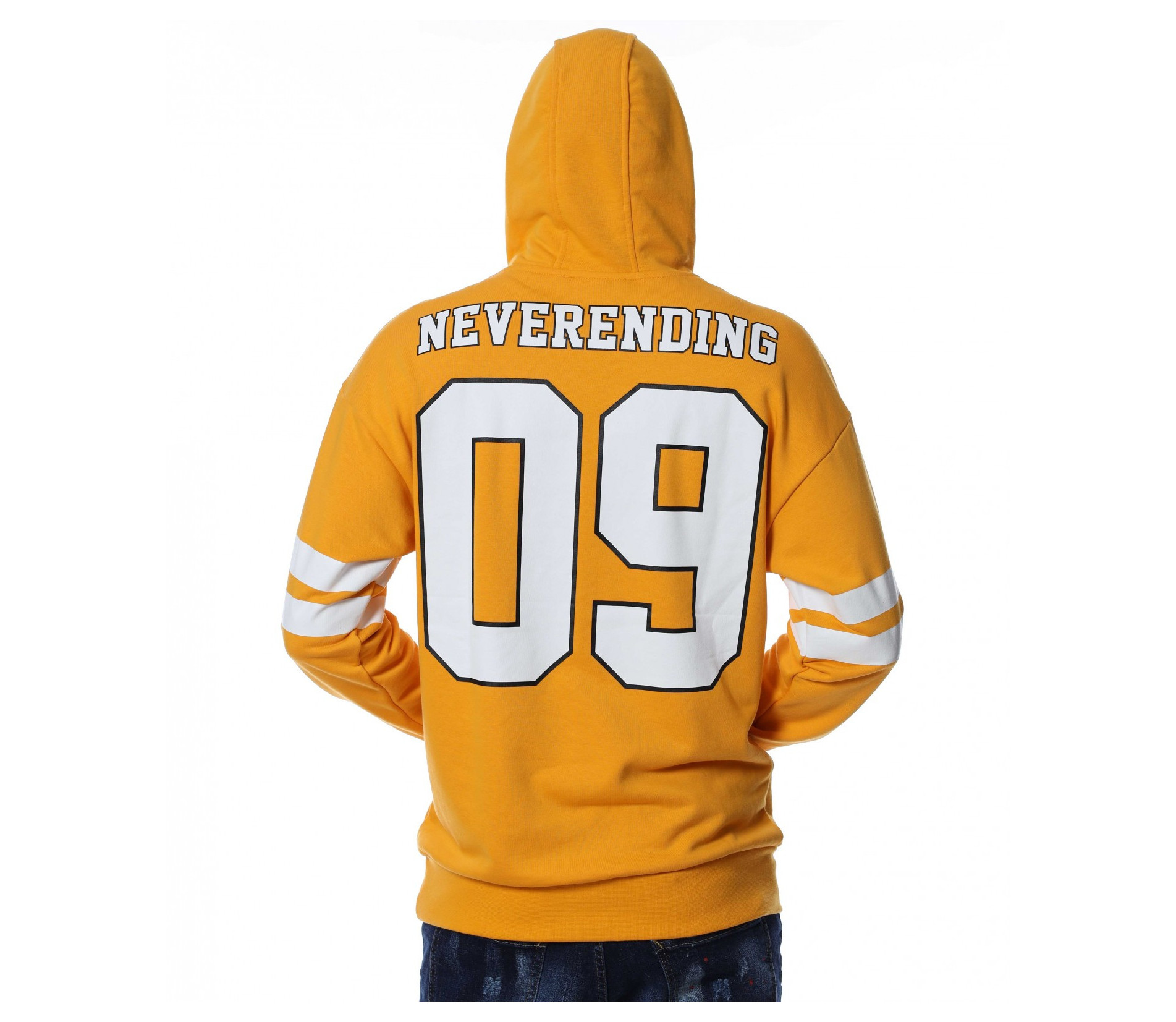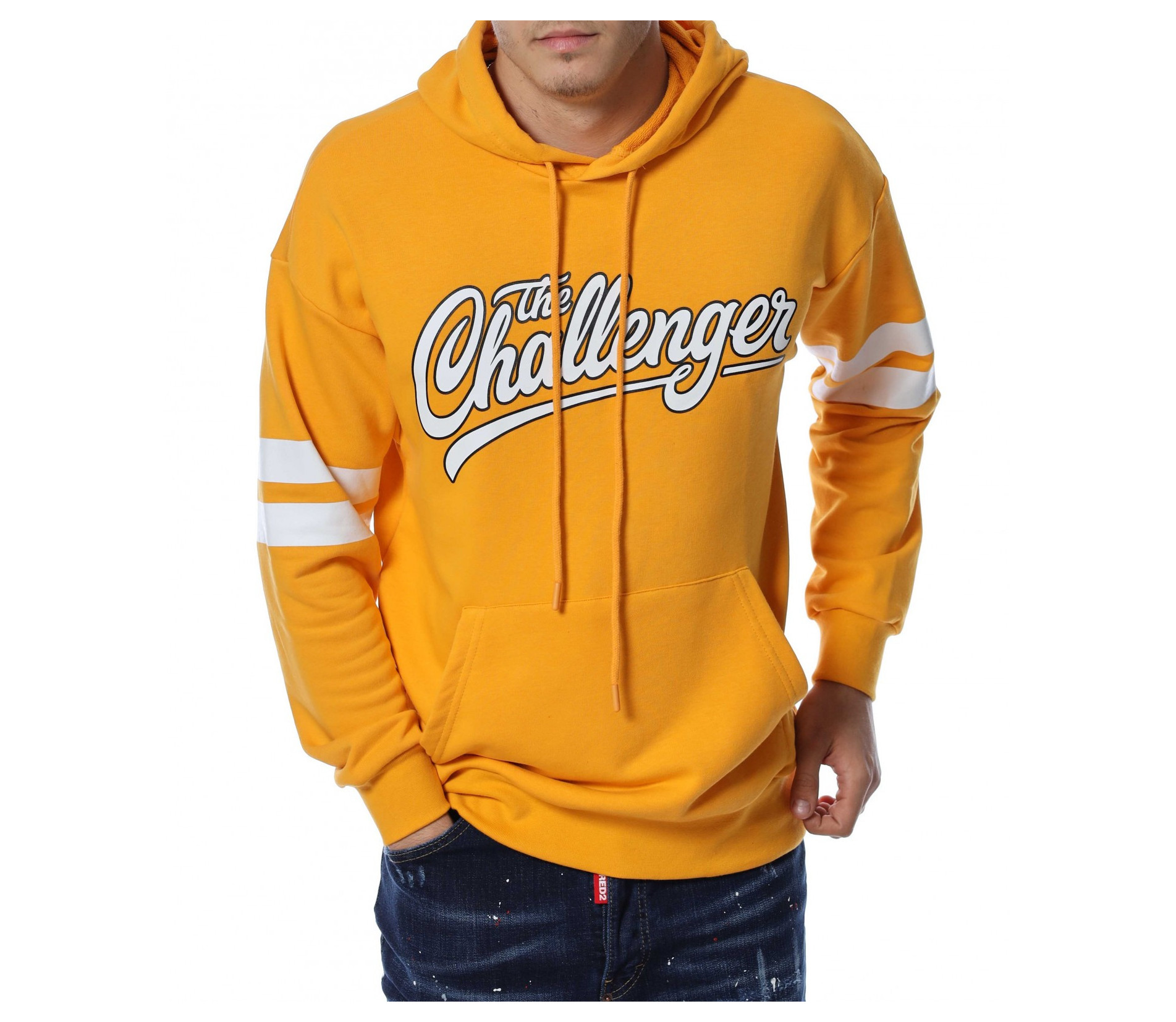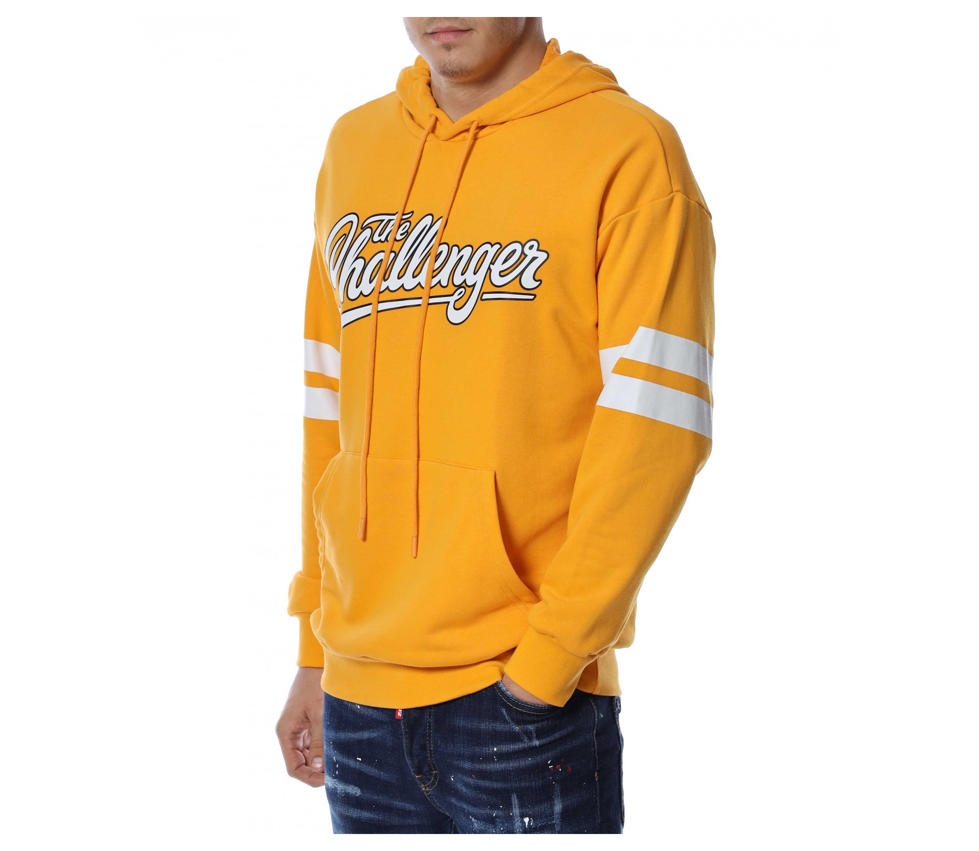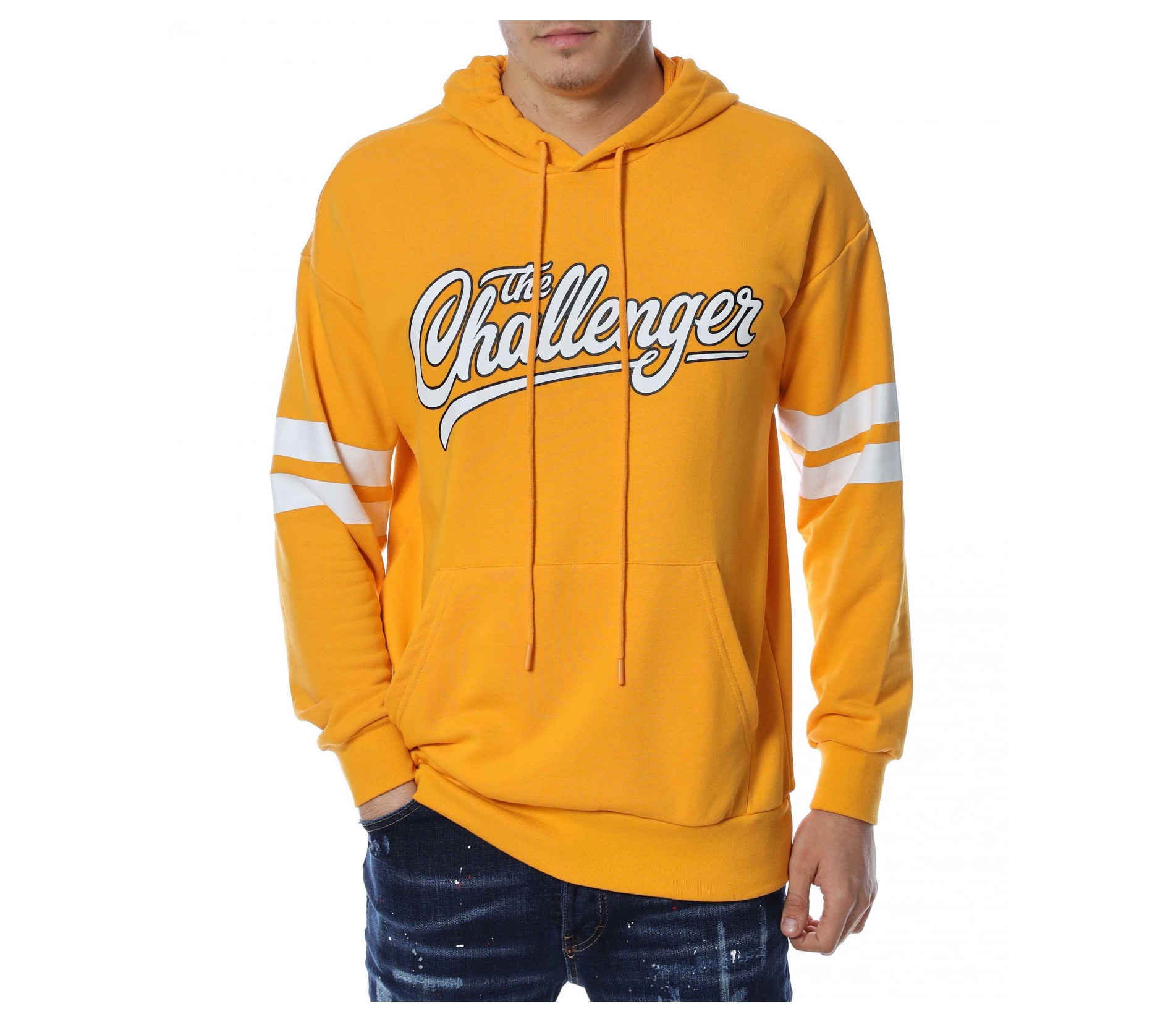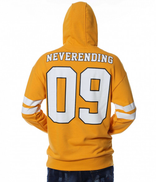 Мъжки, памучен анорак, тип Hoodie с дълъг ръкав и качулка. Основата на дрехата е едноцветна, а в предната част е разположен щампиран наадпис \"The challenger\". На ръкавите забелязваме две едноцветни, удебелени ленти, а при китките - ластични маншети, които прибират ръкавите. В задната част е позициониран едър надпис \"Neverending\" и цифрите 09, покриващи почти целият гръб. На качулката разполага с връзки за регулиране на ширината. Комбинирайте с дънки и кецове и завършете ежедневният си аутфит.