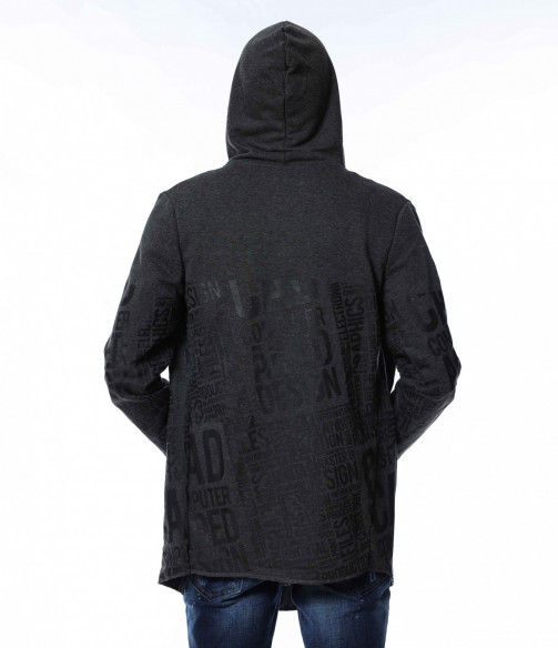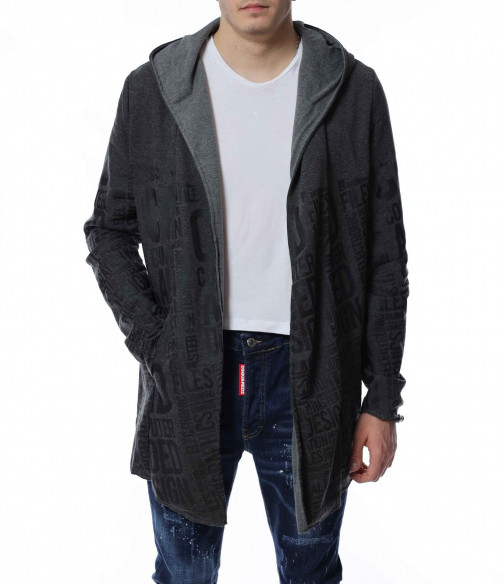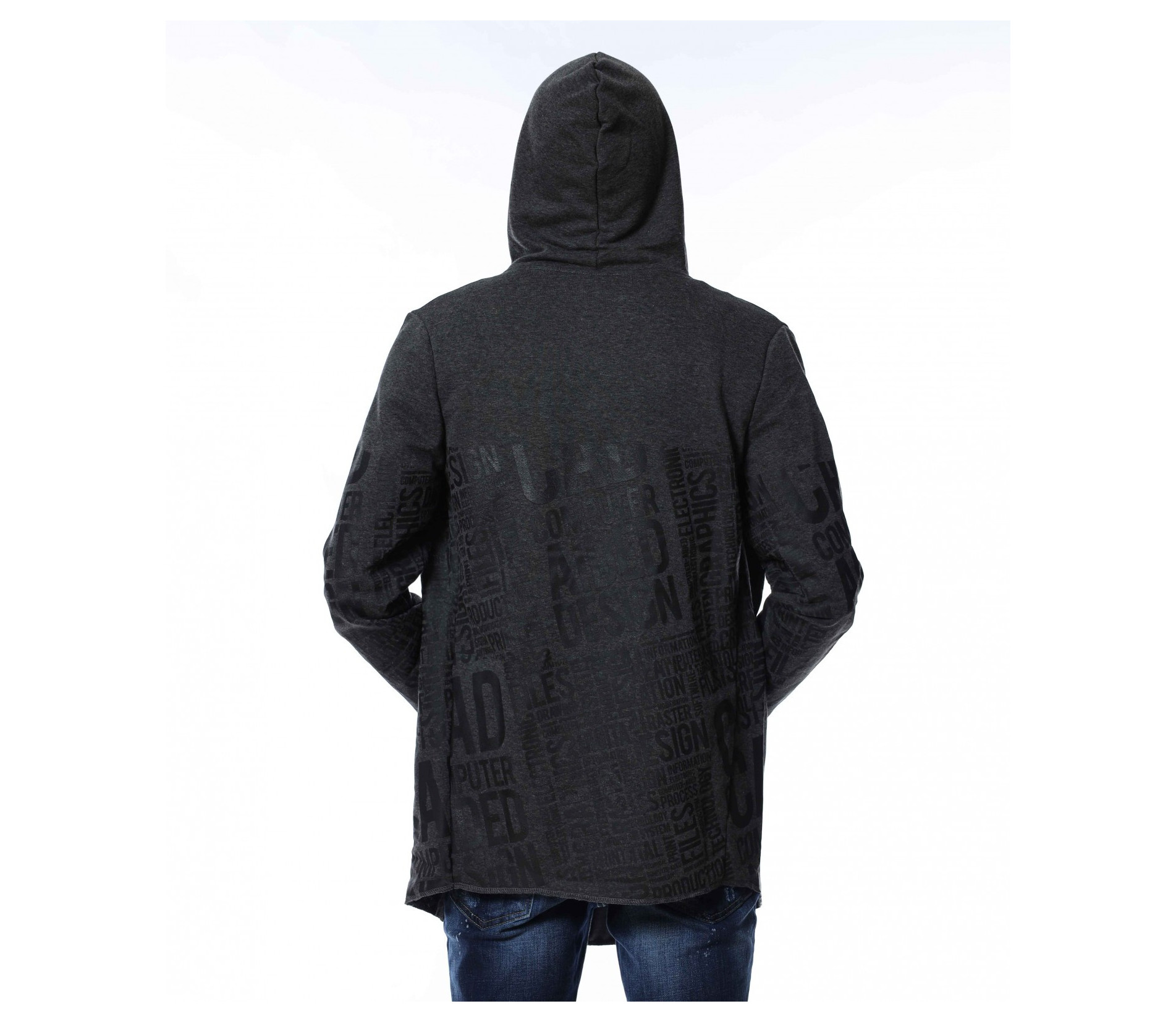 Мъжки спортен суичър с издължена кройка - тип жилетка. Заложи този сезон на модерния стайлинг, комбинирайки този уникален суитшърт с деним или пък спортна долница. Ако си фен на по-спортния външен вид грабни тази връхна дреха за своето ежедневие и се наслади едновременно на перфектен сет и гарантиран комфорт. Моделът е без закопчаване и изключително удобен.  Суичъра е снабден с голяма и топла качулка и мека подплата. Има два дълбоки джоба.  Бъди модерен и в крак с тенденциите с атрактивна връхна дреха.