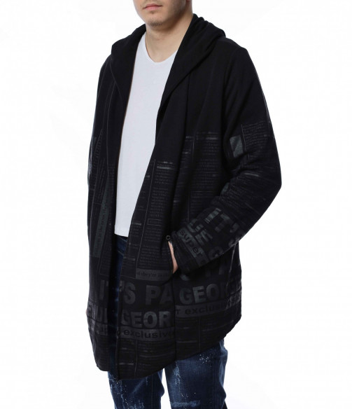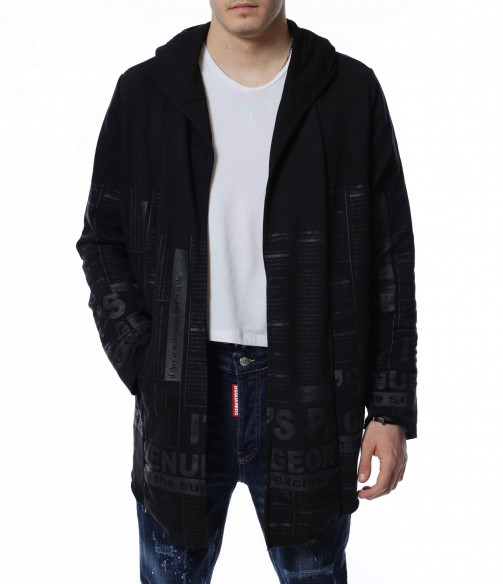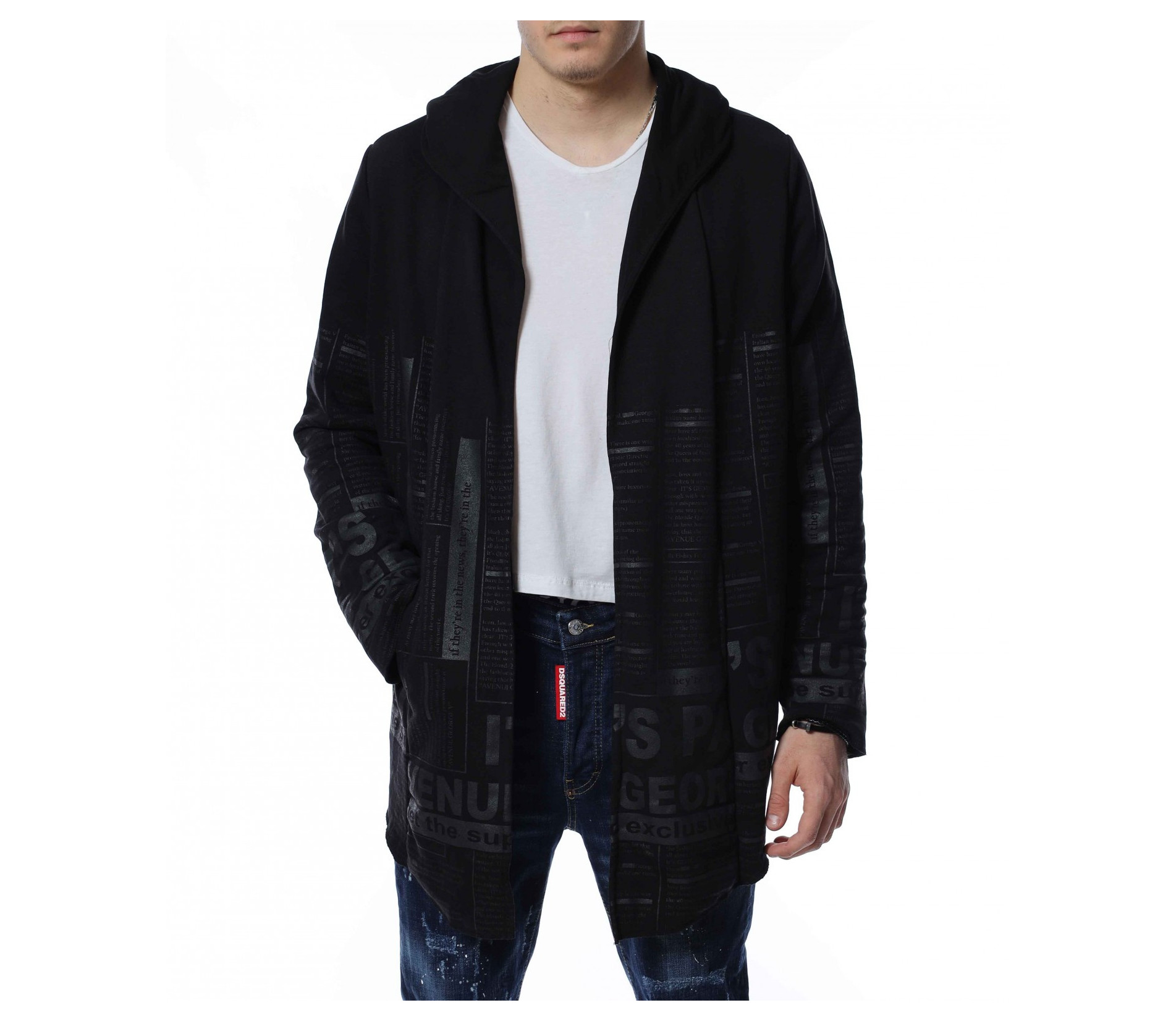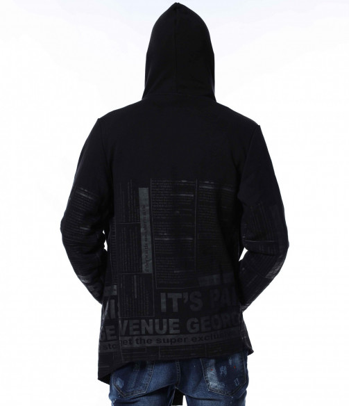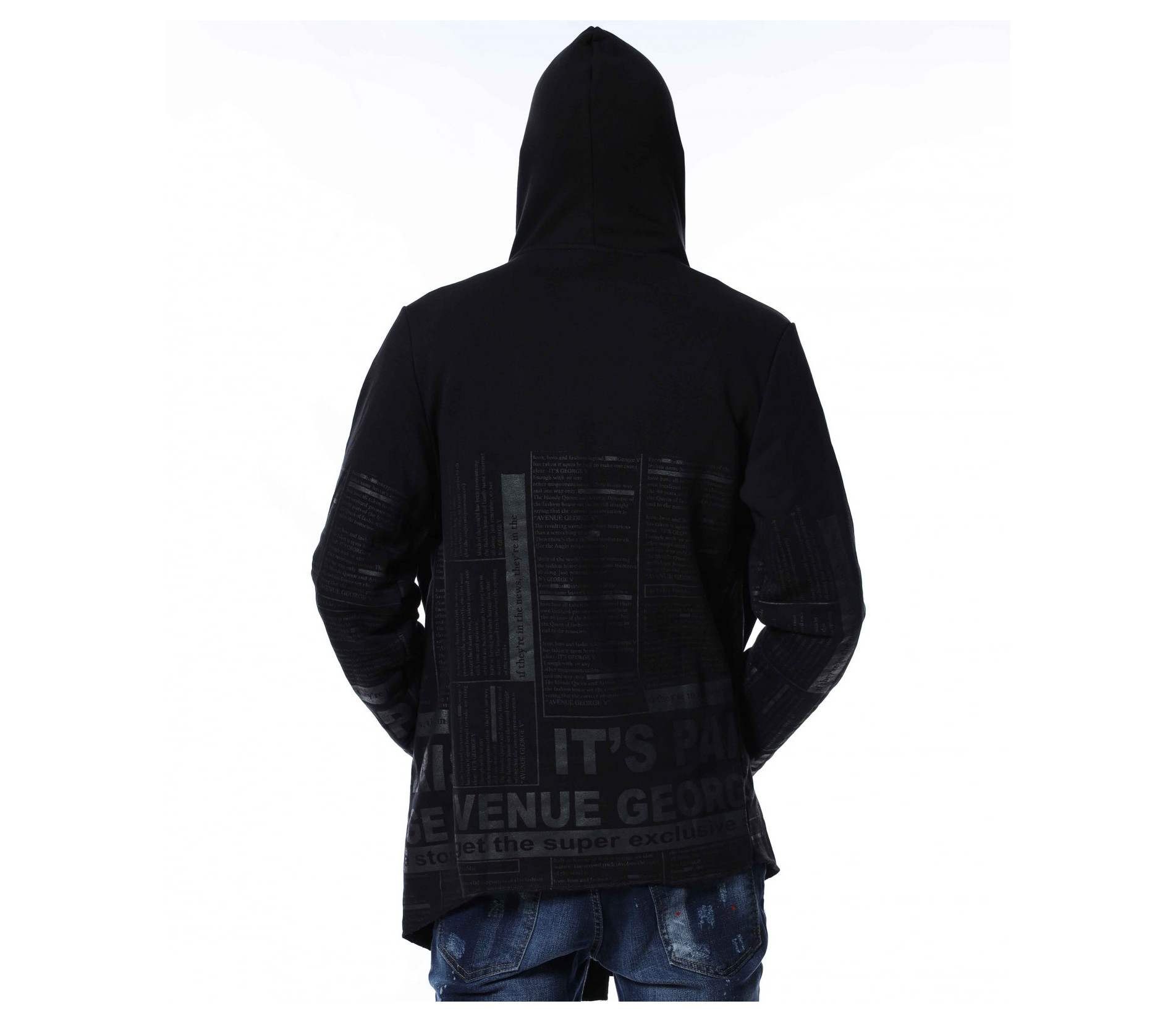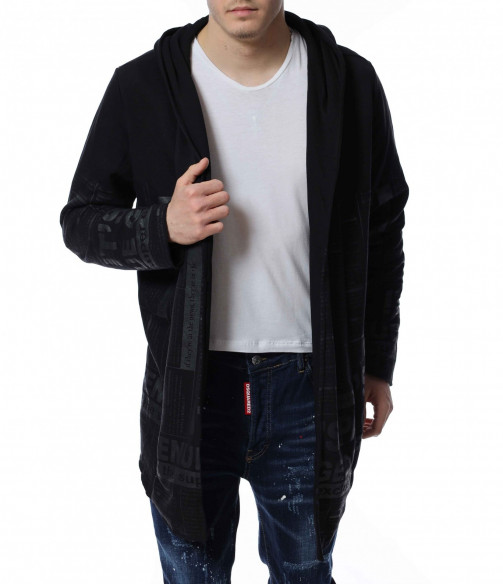 Мъжки спортен суичър с издължена кройка - тип жилетка. Заложи този сезон на модерния стайлинг, комбинирайки този уникален суитшърт с деним или пък спортна долница. Ако си фен на по-спортния външен вид грабни тази връхна дреха за своето ежедневие и се наслади едновременно на перфектен сет и гарантиран комфорт. Моделът е без закопчаване и изключително удобен. Суичъра е снабден с голяма и топла качулка и мека подплата. Има два дълбоки джоба. Бъди модерен и в крак с тенденциите с атрактивна връхна дреха.