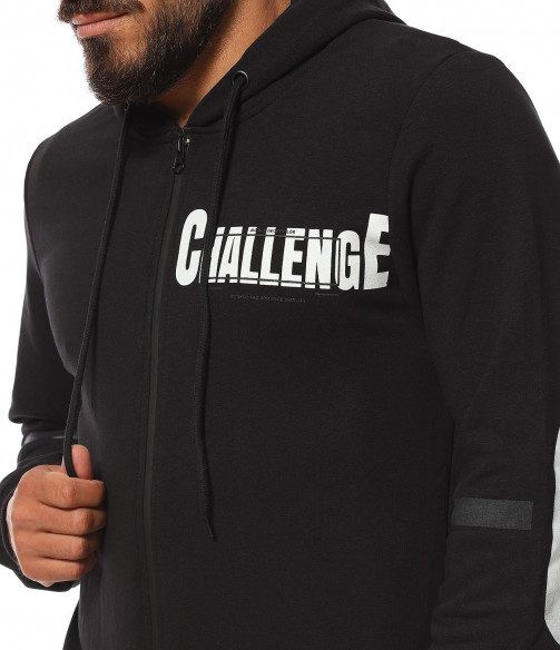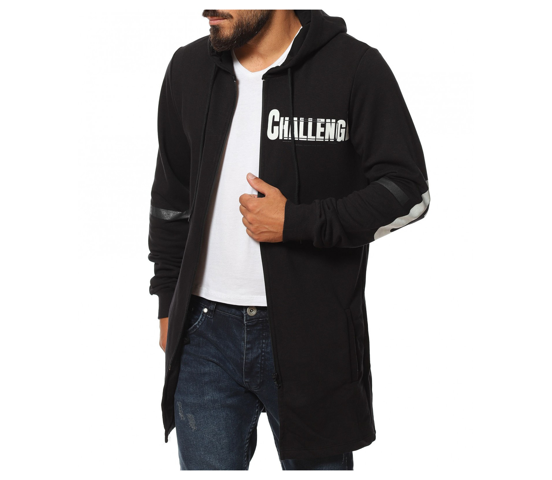 Описание на продукта: В последните години мужкия стайлин се измени до неузнаваемост. Преминавайки през различни метармофози, от силно стеснени и прлиепнали дрехи, до елегантни и стриктни сетове, достигна до златната среда, където може да изразите себе си чрез дрехите. На вниманието Ви е един модел мъжки суичер, който силно напдообява и притежава част от елементите на жилетка. Силно издължения силует предпоставяме една по-атрактивна и забележителна визия, която е подчертана от още няколко елемента. Под формата на надписи, в различна големина и разположение е изграден основният принт. На ръкавите са поставени два детайла, първият от който са ластици на китките, а вторият и декоративен такъв е светлоотразителната лента, в областта на лакътя. За финал Ви подчертаваме семплото закопчаване с цип и дискретната качулка, придаваща този типичен спортен привкус.