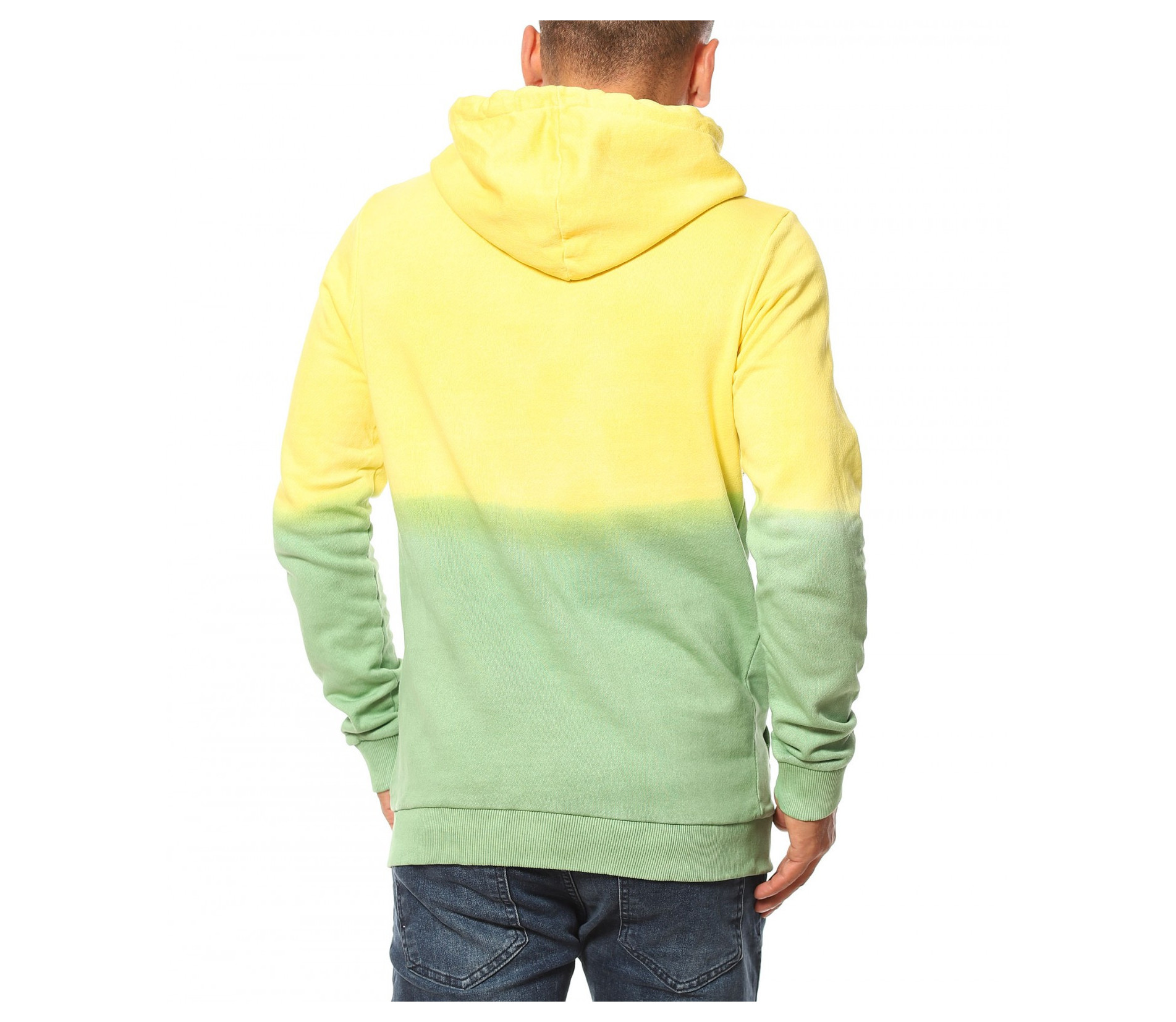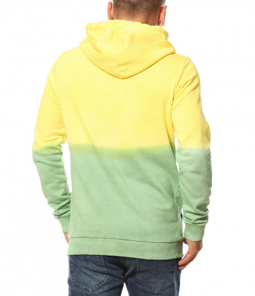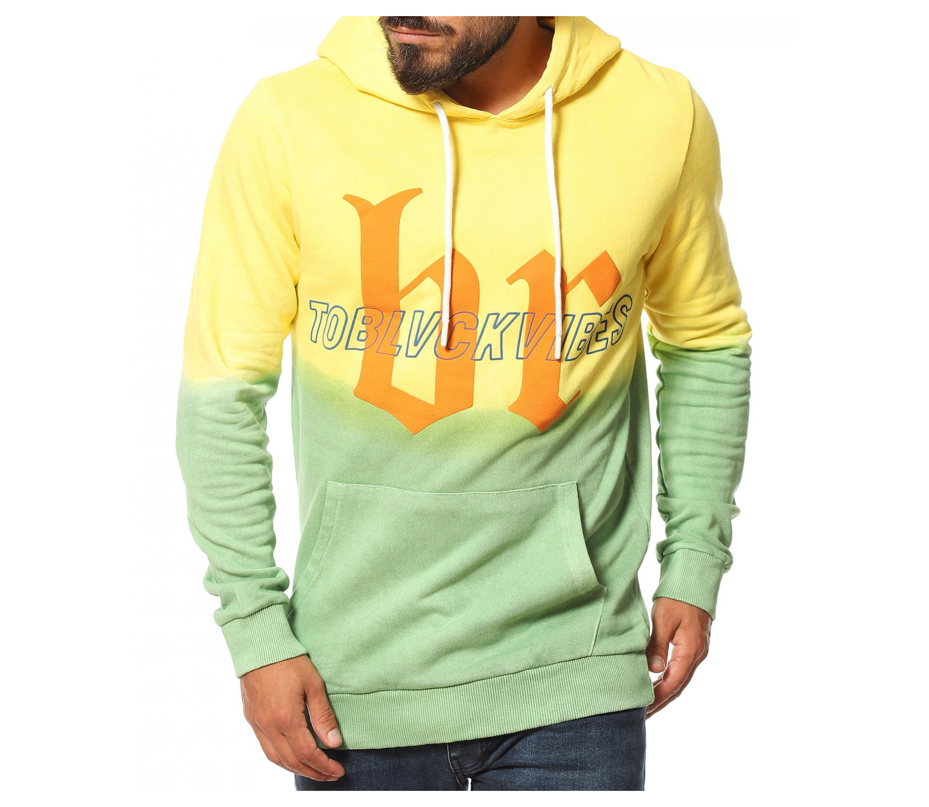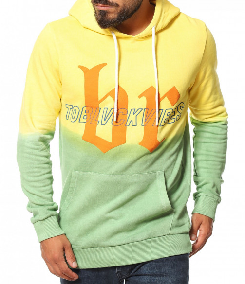 Описание на продукта: Представяме Ви един модел мъжки ежедневен суичер, тип анорак, който съчетава в себе си няколко мотива, взаимно допълващи се. В основния цветови диазаон се преплитат две багри, изьградени чрез преливащ мотив, като в долната част цветът е по-ярък и наситен. Като допълнение са разположени и надписи, които заемат голяма част от лицевата страна, придаващи запомнящ се вид на дрехата. Корйката на спортната блуза е свободна, като при талията и ръкавите са разположени широки ластици, които в прибират плата плътно по тялото. За финален щрих се явява качулката, която е подбрана в обемна форма, добавяща комфорт и топлина. Съчетавайте през ежедневните си разходки с подходяща спортна долница или карго панталон.