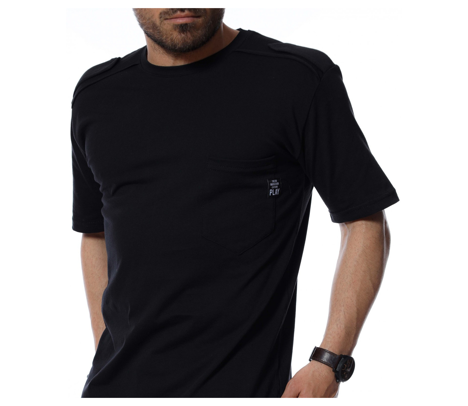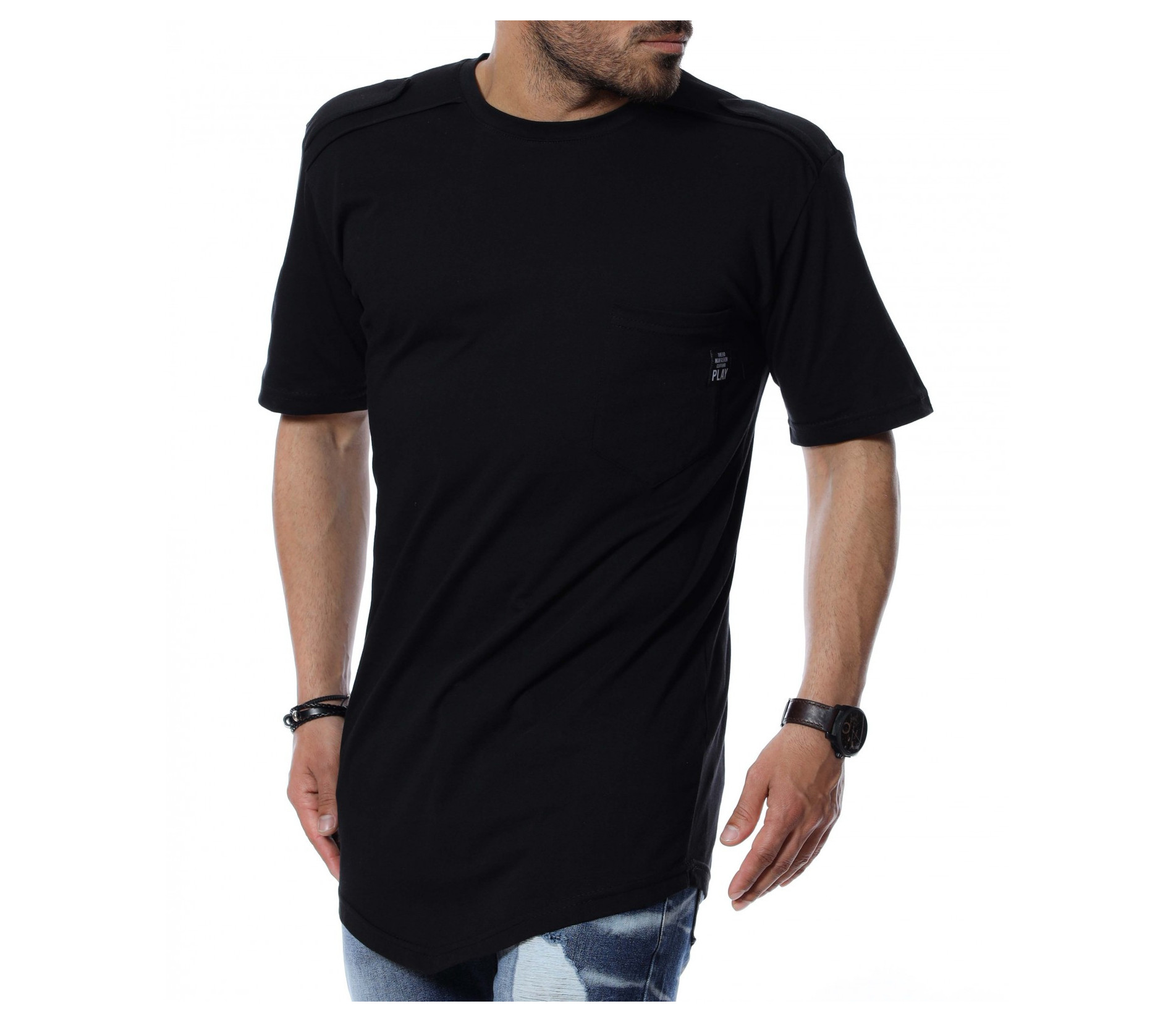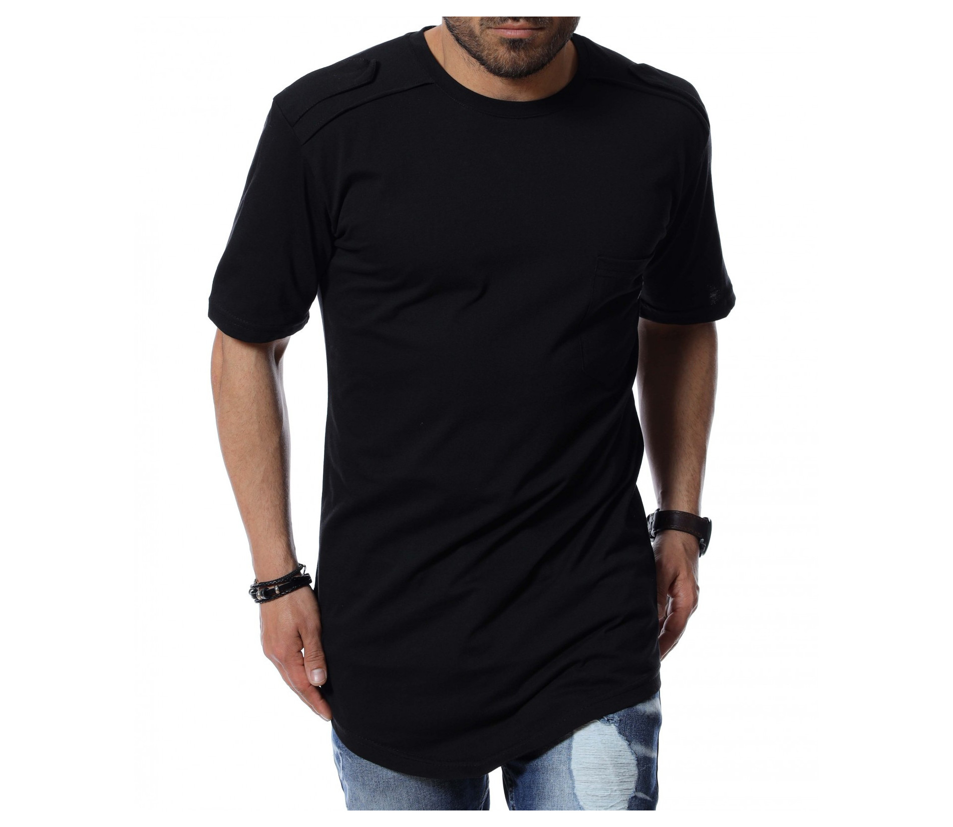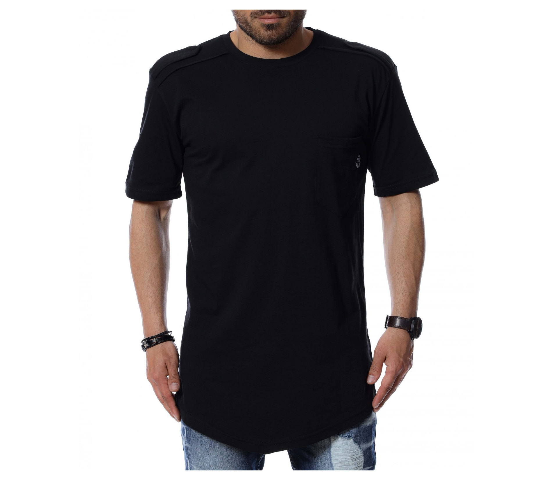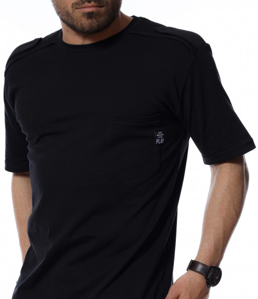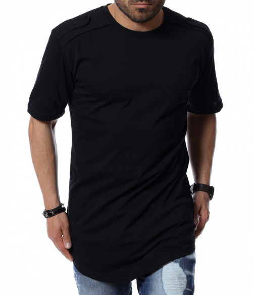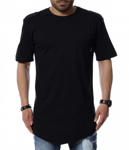 Подготвили сме ви издължен дизайн, тениска. На раменете откриваме декоративни елементи, а в предната част е акцентиран джоб с миниатюрна емблема. Основата е едноцветна и изчистена от допълнителни орнаменти. Кройката е, осигуряваща достатъчна собода и комфорт на тялото, благодарение на меката материя. Няма как да сбъркате, ако я използвате в ежедневието или за клубен стайлинг, съчетайте с любими кецове и дънки.