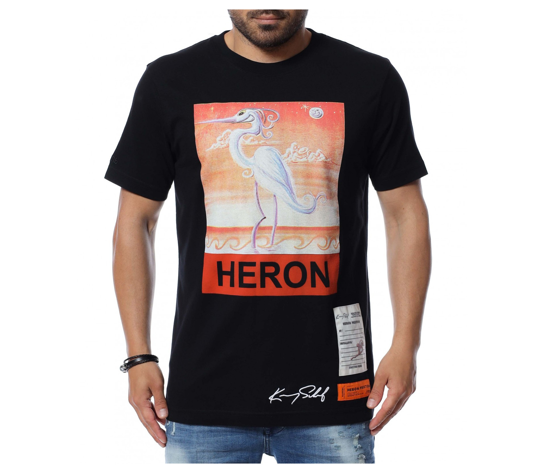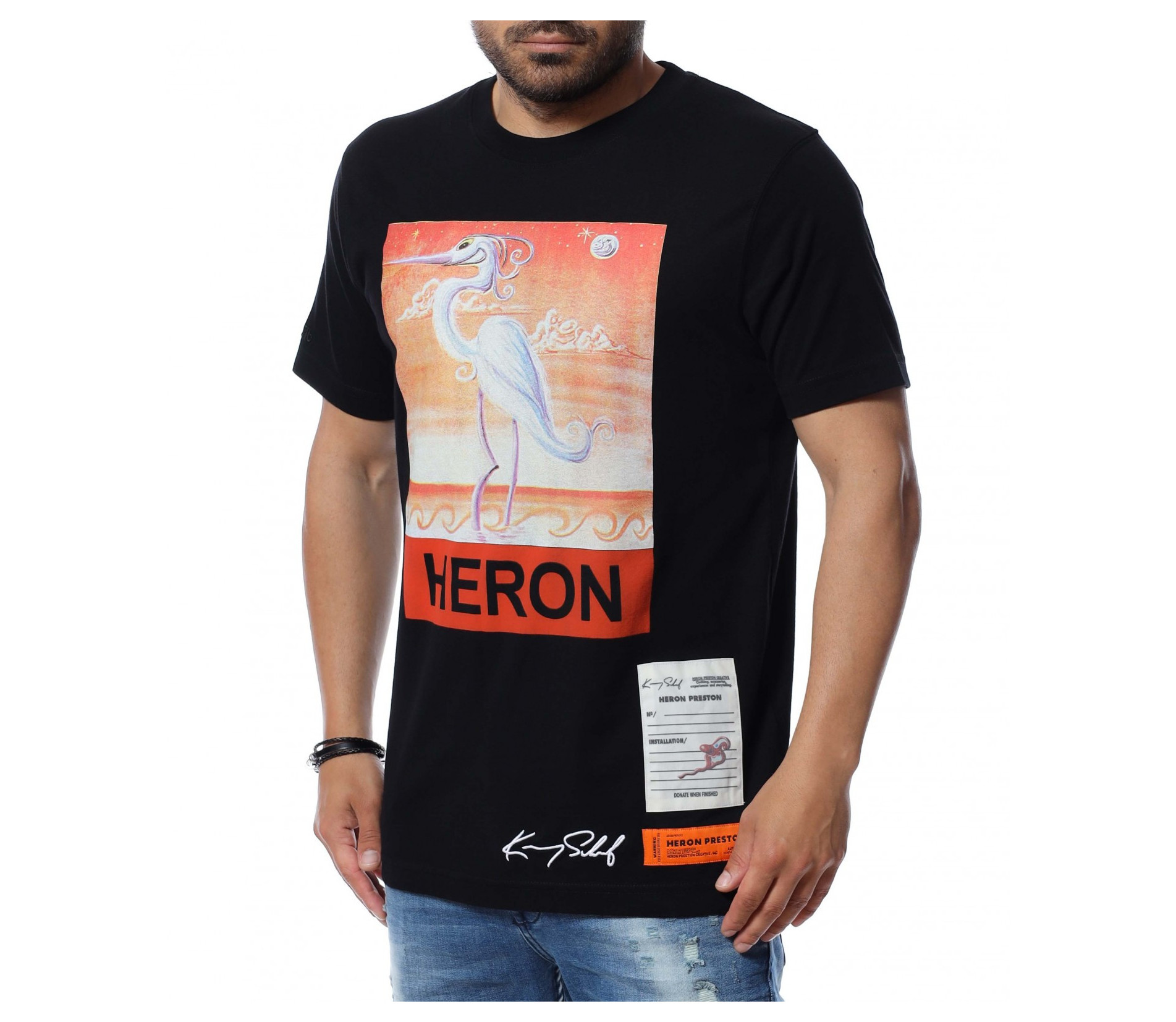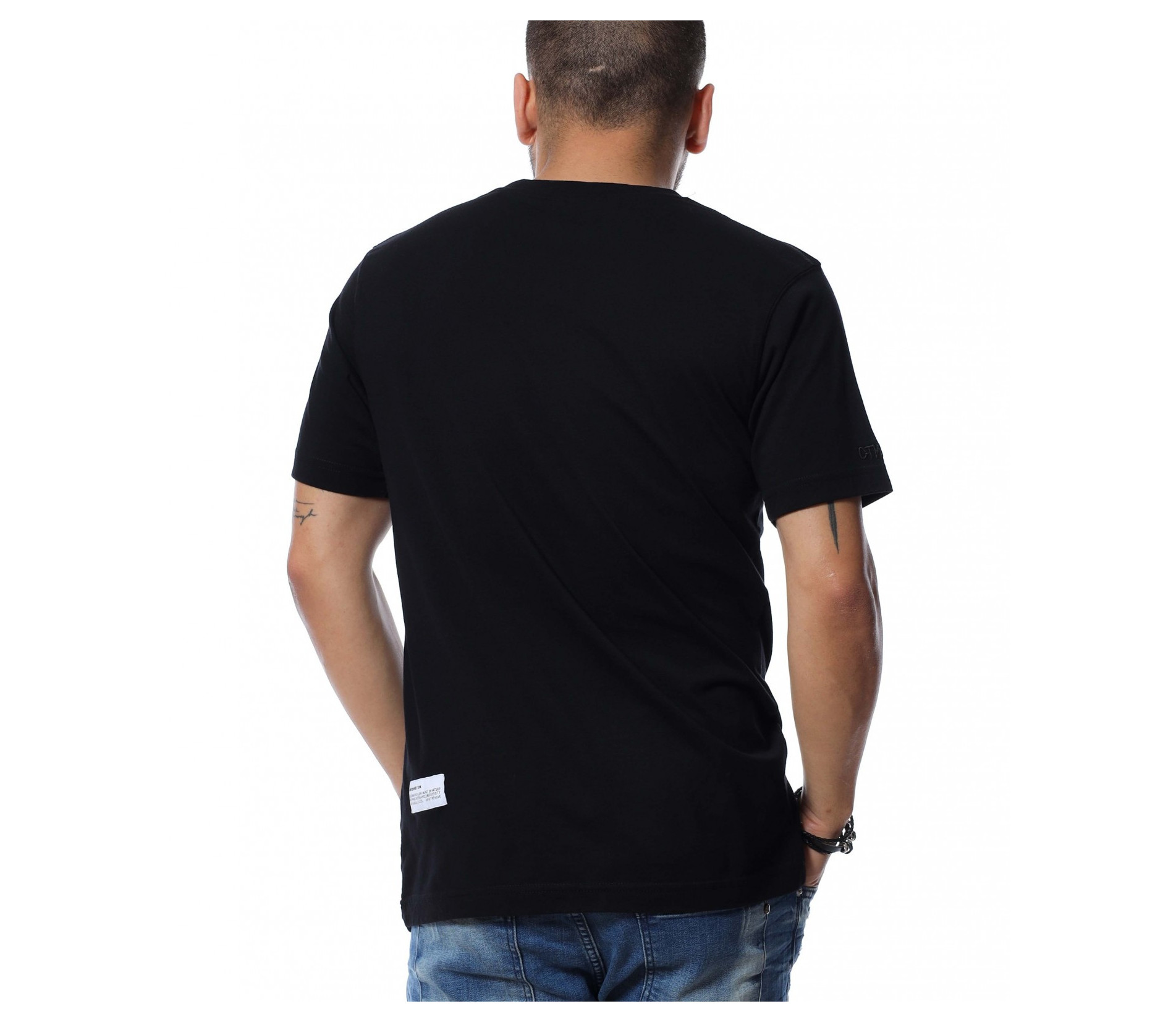Основата на тениската е едноцветна, а в предната част забелязваме голяма апликация с надпис.