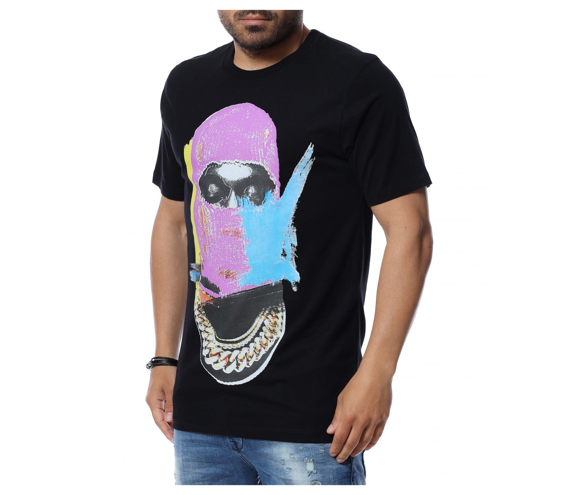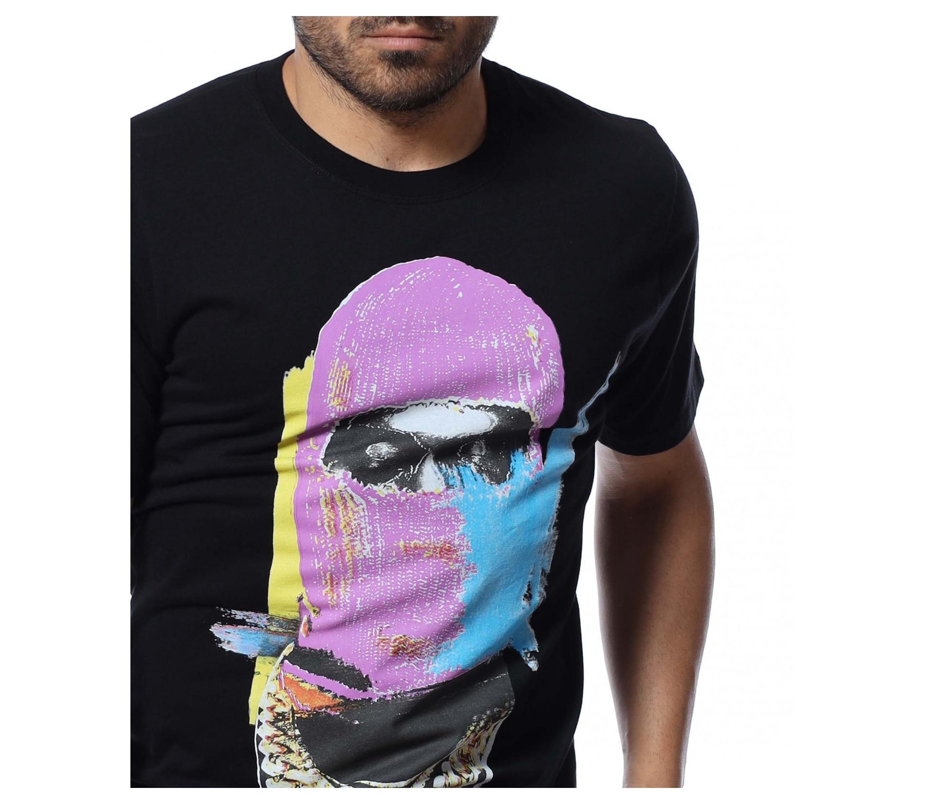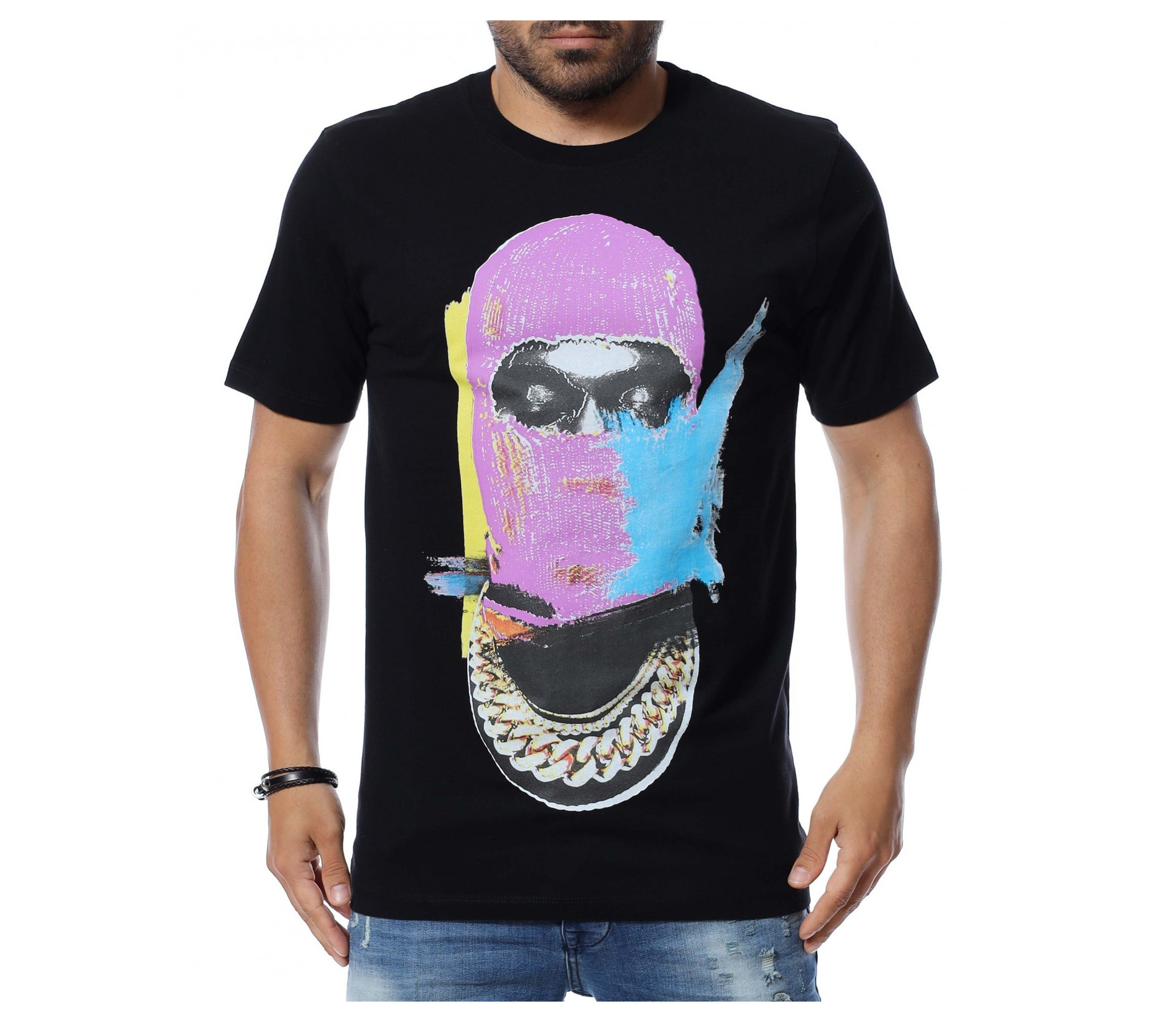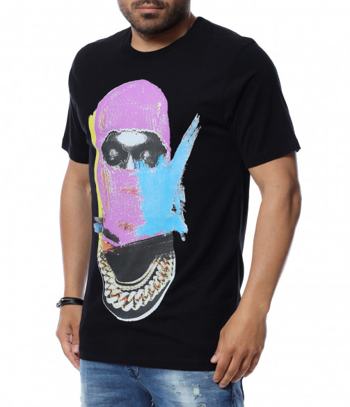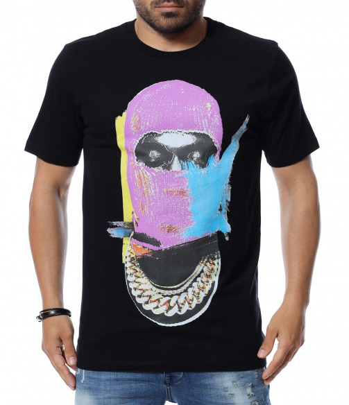 Основата на тениската е едноцветна, а в предната част забелязваме голяма, цветна апликация.
