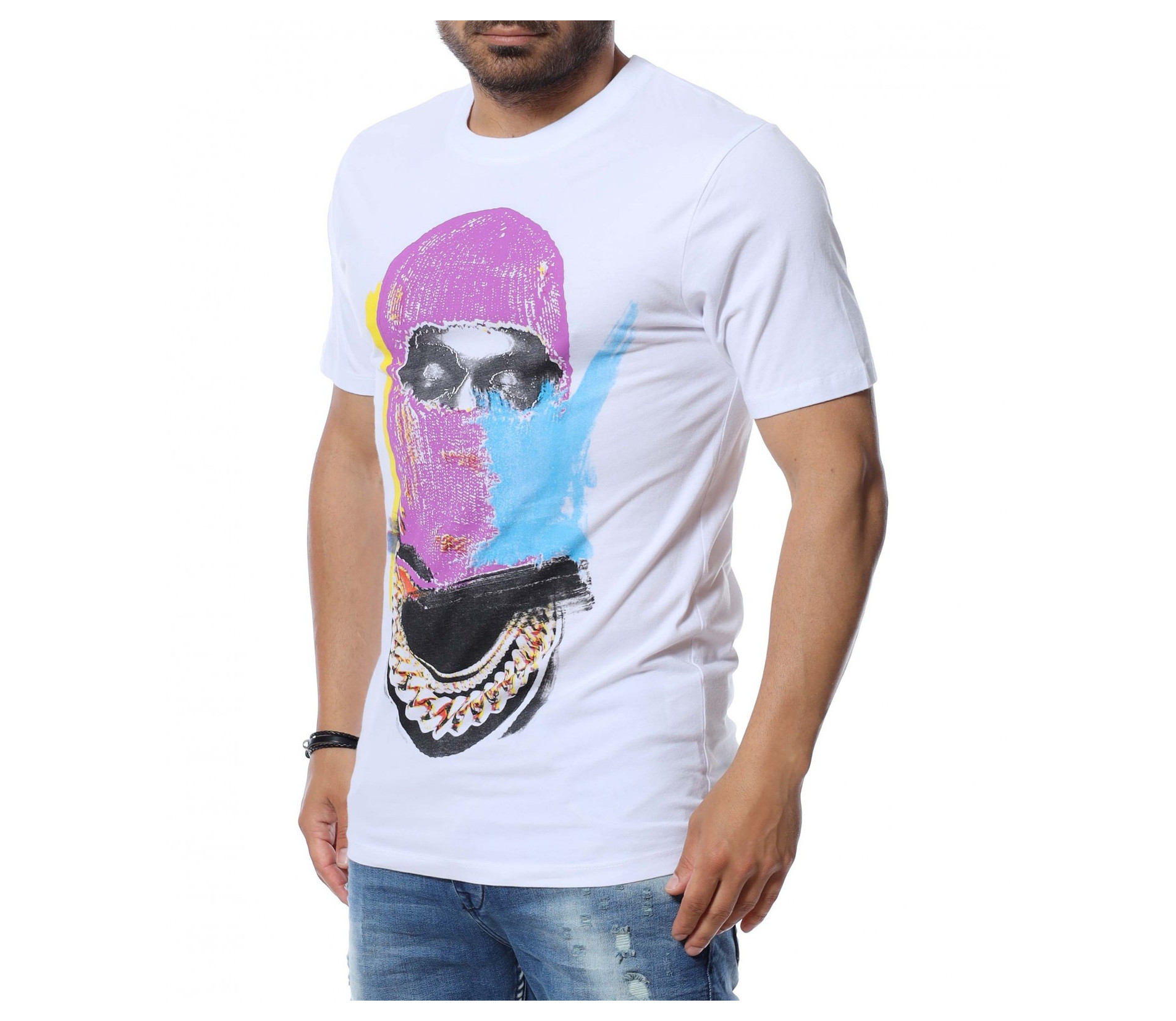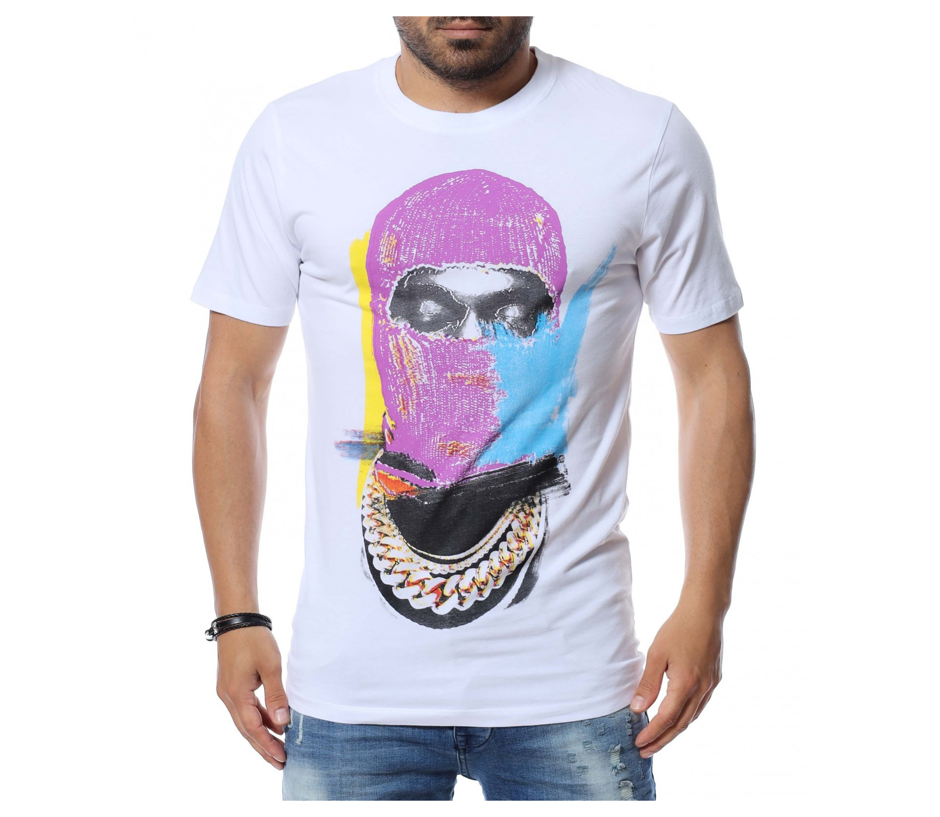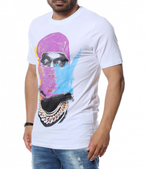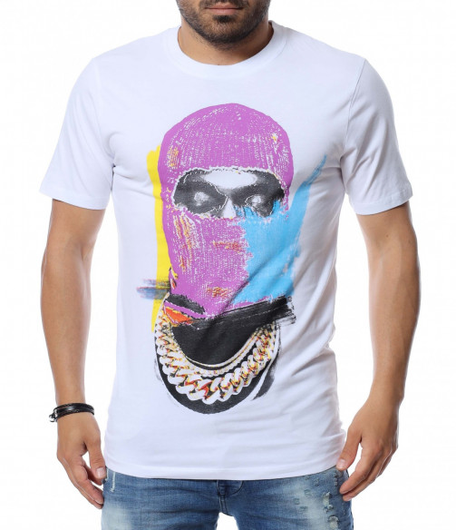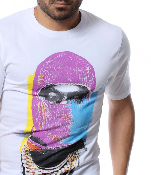 Основата на тениската е едноцветна, а в предната част забелязваме голяма, цветна апликация.